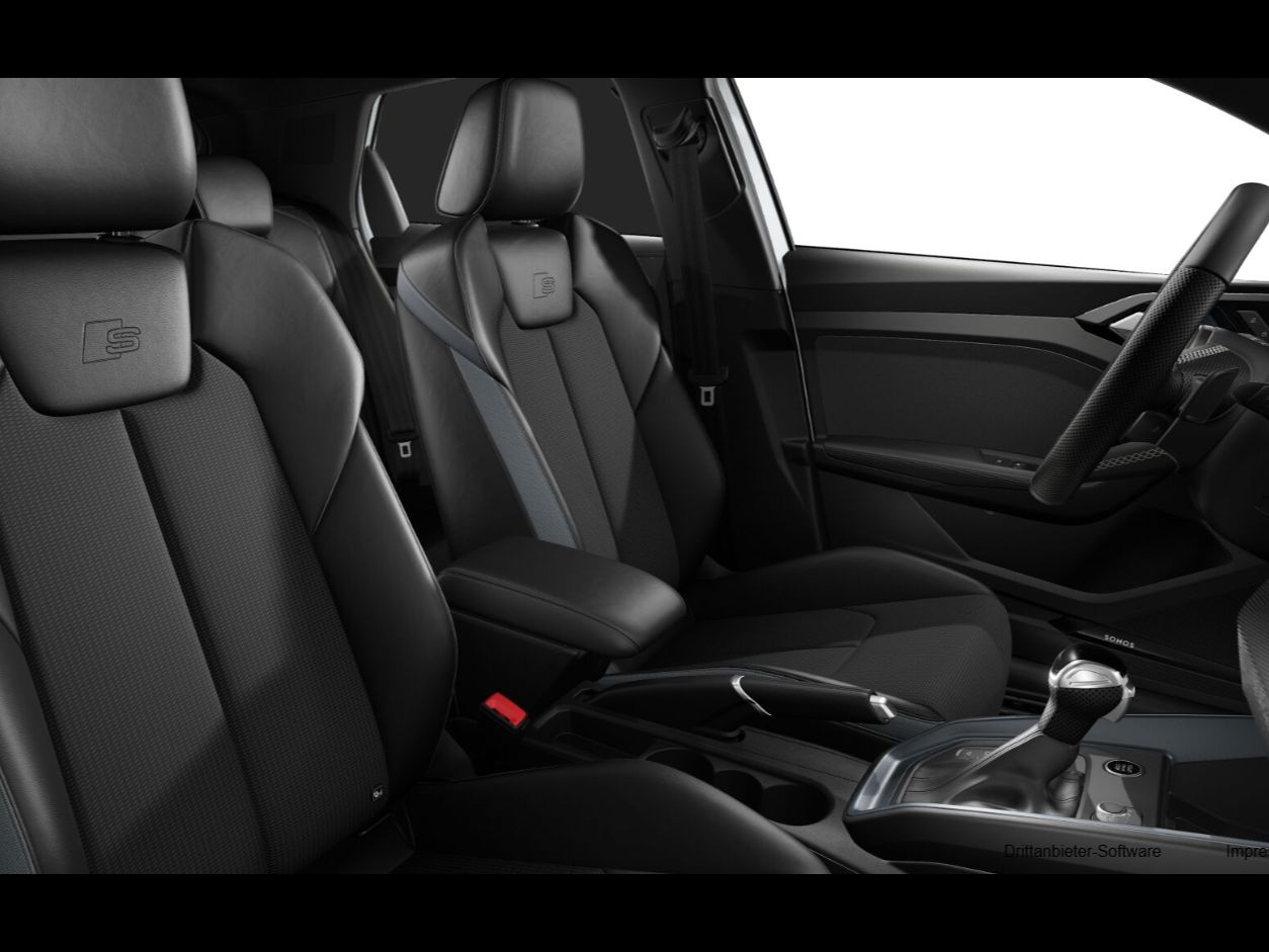 J4J Batterie 380A (59Ah) EFB+, 3A2 Kindersitzbefestigung i-Size-konform auf Beifahrerseite und äußeren Fondsitzen Top Tether für äußere Fondsitze, GB1 Mobilfunk-Signalverstärker Typ 1, DS9 4-Zyl. Ottomotor 1.5 L/110 KW TSI Grundmotor ist: TJ7/N09/T9F/T57/T0D, QK2 Mit Multifunktionskamera für NCAPAnforderungen, WDC Infotainmentpaket plus, 0EG Einbau Differenzierung für Getriebe DQ 200, N09 4 Zyl.Ottomotor 1.5L Aggr. 05E.D, 7P4 2-Wege-Lendenwirbelstütze für die Vordersitze, 8JT LED-Scheinwerfer abgedunkelt, 8VN Abgedunkelte LED-Heckleuchten plus, PFY Exterieur S line plus, F41 Räder Audi Sport 5-Y-Speichen schwarz metallic glanzgedreht abgedunkelt 7.5Jx18 Reifen 215/40 R18