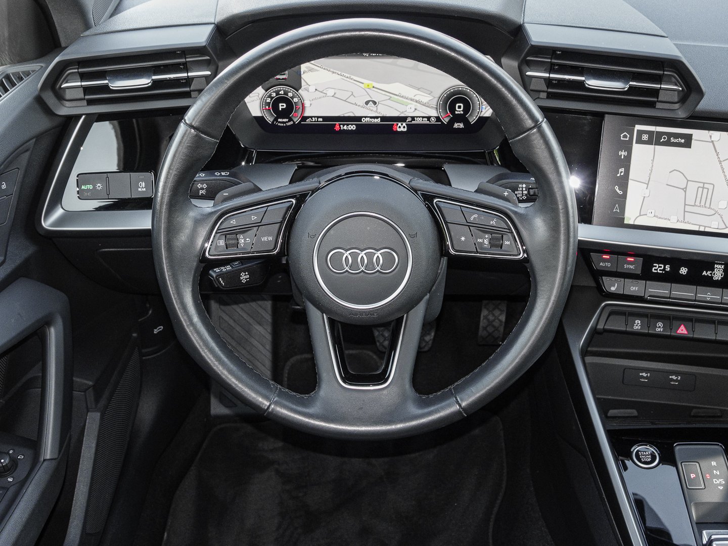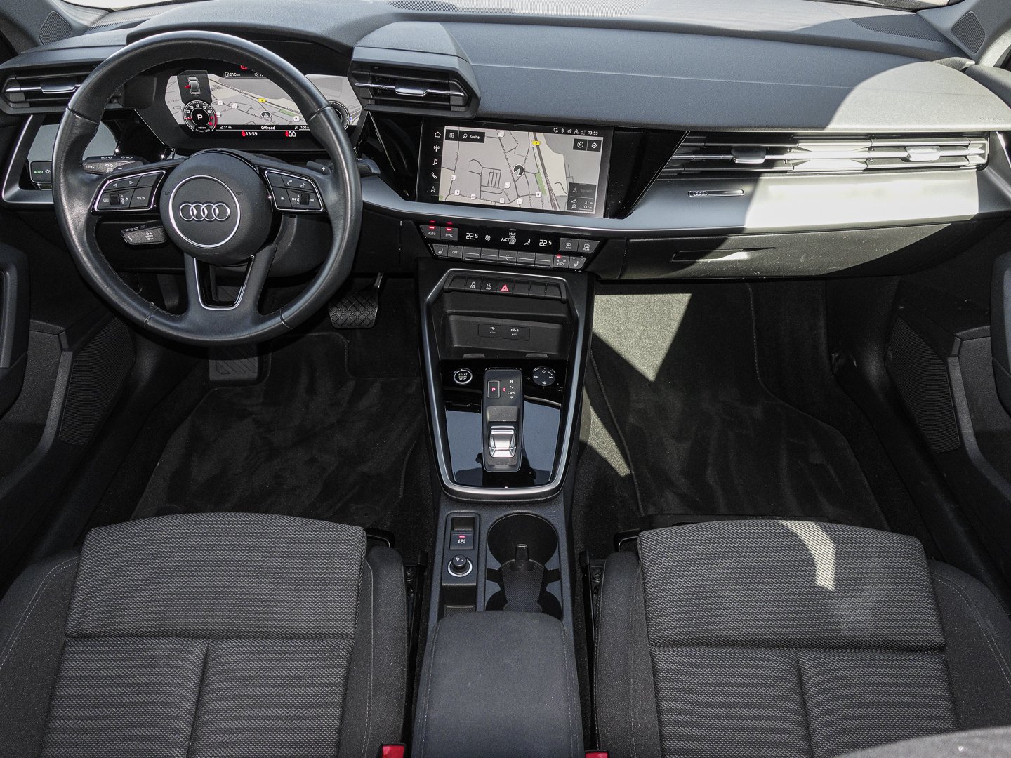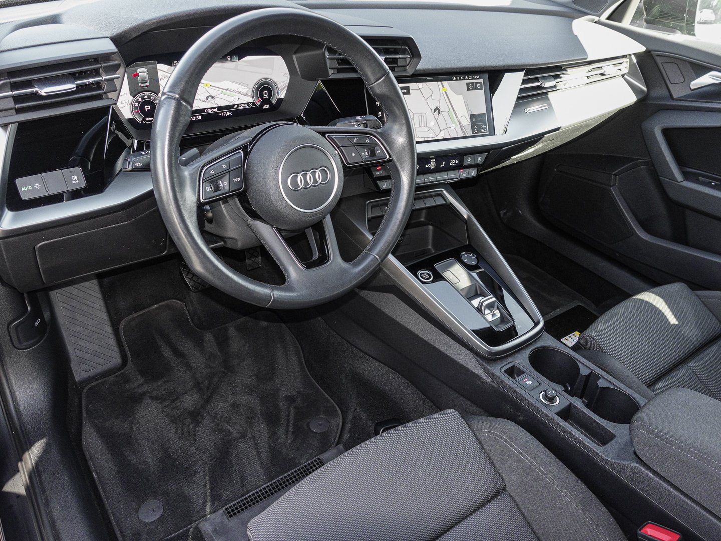 3L3 Vordersitze manuell einstellbar, 9AK 2-Zonen-Komfortklimaautomatik, 9S9 Audi virtual cockpit plus, Q1D Sportsitze vorn, L0L Linkslenker, 4L6 Innenspiegel automatisch abblendend, 3NZ Rücksitzlehne umklappbar, 6E3 Mittelarmlehne vorn, 4GF Frontscheibe in Wärmeschutzverglasung, N5B Stoff Routine, QL5 Privacy Verglasung (Scheiben abgedunkelt), 1XX Lederlenkrad im 3-Speichen-Design mit Multifunktion plus und Schaltwippen