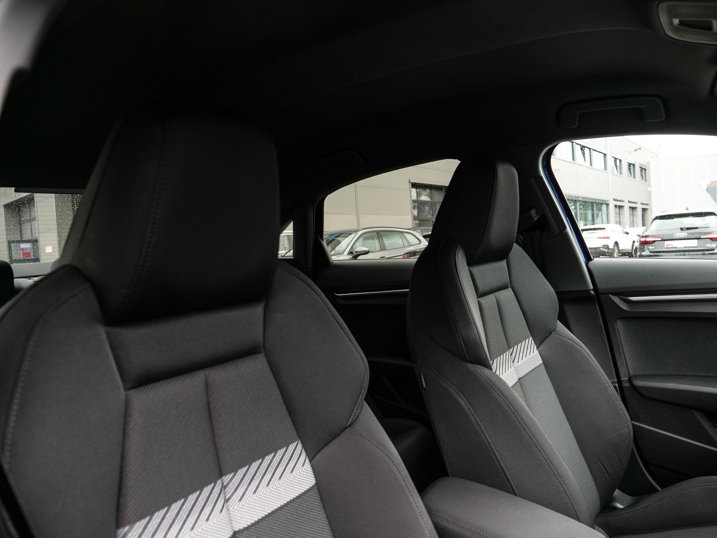 Stoff, L0L Linkslenker, 9S9 Audi virtual cockpit plus, 1XW Lederlenkrad 3-Speichen mit Multifunktion plus, 4UF Airbags vorn Beifahrerairbag deaktivierbar, Q1D Sportsitze vorn, 7P1 4-Wege-Lendenwirbelstütze für die Vordersitze, PX2 LED-Scheinwerfer und LED-Heckleuchten mit dynamischem Blinklicht Heck, QQ1 Ambiente-Lichtpaket, 8IT LED-Scheinwerfer, 3NZ Rücksitzlehne umklappbar, KH5 3-Zonen-Komfortklimaautomatik, 6E3 Mittelarmlehne vorn, 4GF Wärmeschutzverglasung Frontscheibe, 3PB Fahrersitz elektrisch einstellbar, N0M Stoff Routine