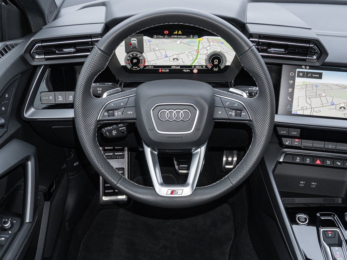 9S9 Audi virtual cockpit plus, Q1D Sportsitze vorn, 4UF Airbags vorn Beifahrerairbag deaktivierbar, 7P1 4-Wege-Lendenwirbelstütze für die Vordersitze, QJ1 Interieurapplikationen Aluminiumoptik, 4L6 Innenspiegel automatisch abblendend rahmenlos, IU4 Audi Application Store und Smartphone-Interface, 6E3 Mittelarmlehne vorn, 3L3 Vordersitze manuell einstellbar, KH5 3-Zonen-Komfortklimaautomatik, 3NT Rücksitzlehne geteilt umklappbar, 4GF Wärmeschutzverglasung Frontscheibe, 8IT LED-Scheinwerfer, 1XX Lederlenkrad 3-Speichen mit Multifunktion plus und Schaltwippen, PX2 LED-Scheinwerfer und LED-Heckleuchten mit dynamischem Blinklicht Heck