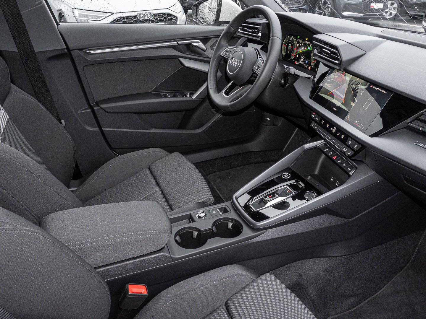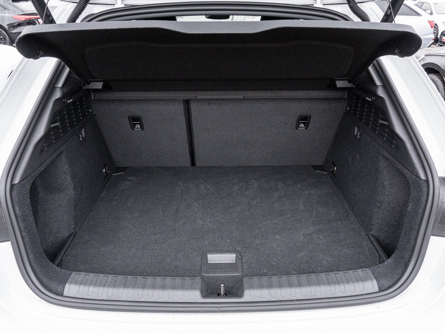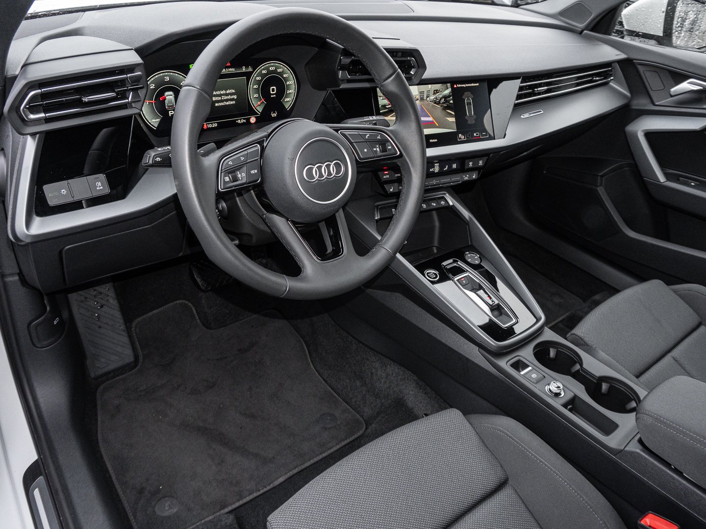 3L5 Vordersitze elektrisch einstellbar, 9S9 Audi virtual cockpit plus, Q1D Sportsitze vorn, 4UF Airbags vorn Beifahrerairbag deaktivierbar, 7P1 4-Wege-Lendenwirbelstütze für die Vordersitze, QJ1 Interieurapplikationen Aluminiumoptik, 3NZ Rücksitzlehne umklappbar, 4L6 Innenspiegel automatisch abblendend rahmenlos, IU4 Audi Application Store und Smartphone-Interface, 6E3 Mittelarmlehne vorn, KH5 3-Zonen-Komfortklimaautomatik, 4GF Wärmeschutzverglasung Frontscheibe, 1XX Lederlenkrad 3-Speichen mit Multifunktion plus und Schaltwippen, 6NJ Dachhimmel Stoff Farbe spezifisch, PWD Interieur mit Sportsitzen Stoff schwarz, QQ1 Ambiente-Lichtpaket, 5MR Dekoreinlage Feinlack vulkangrau, 99P Interieur mit Sportsitzen Stoff schwarz, N0M Stoff Routine