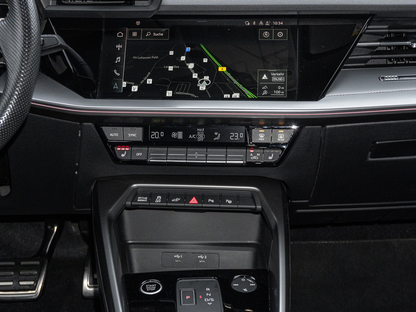 L0L Linkslenker, Q1D Sportsitze vorn, 4UF Airbags vorn Beifahrerairbag deaktivierbar, 7P1 4-Wege-Lendenwirbelstütze für die Vordersitze, QQ2 Ambiente-Lichtpaket plus, 4L6 Innenspiegel automatisch abblendend rahmenlos, 6E3 Mittelarmlehne vorn, 3NT Rücksitzlehne geteilt umklappbar, 3PB Fahrersitz elektrisch einstellbar, WQS Interieur S line, 9AK 2-Zonen-Komfortklimaautomatik, 4GF Frontscheibe in Wärmeschutzverglasung, G1A 6-Gang-Automatikgetriebe, 9S8 Audi virtual cockpit plus, 2PK Sportkontur-Lederlenkrad 3-Speichen unten abgeflacht mit Multifunktion plus und Schaltwippen, N2Y Stoff Puls/Kunstleder mono.pur 550-Kombination mit S-Prägung