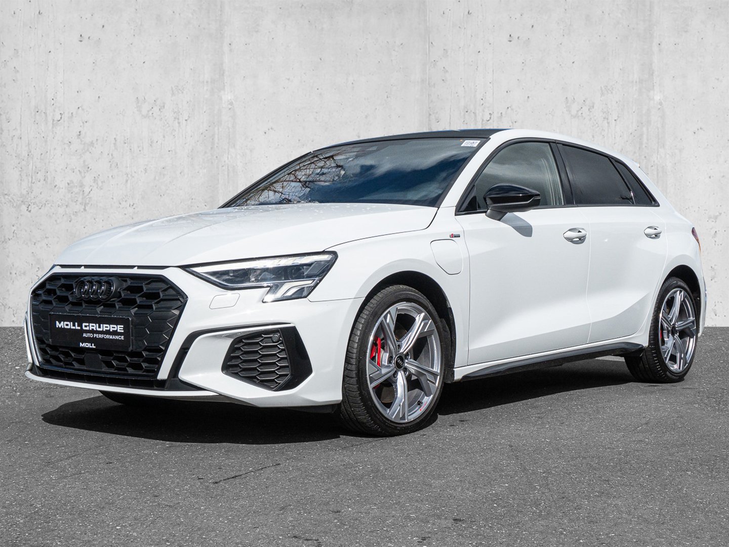 IU2 Vorbereitung für Smartphone-Interface, 3V6 Geschwindigkeitsregelanlage mit Vorbereitung adaptiver Geschwindigkeitsassistent, ML9 4-Zylinder-Ottomotor 1.4L/110 KW Hybrid TSI Systemleistung 180 KW Grundmotor ist: TH8/T9D, V98 Räder Audi Sport 5-Arm-Flag platingrau glanzgedreht 8.0Jx18 Reifen 225/40 R18
