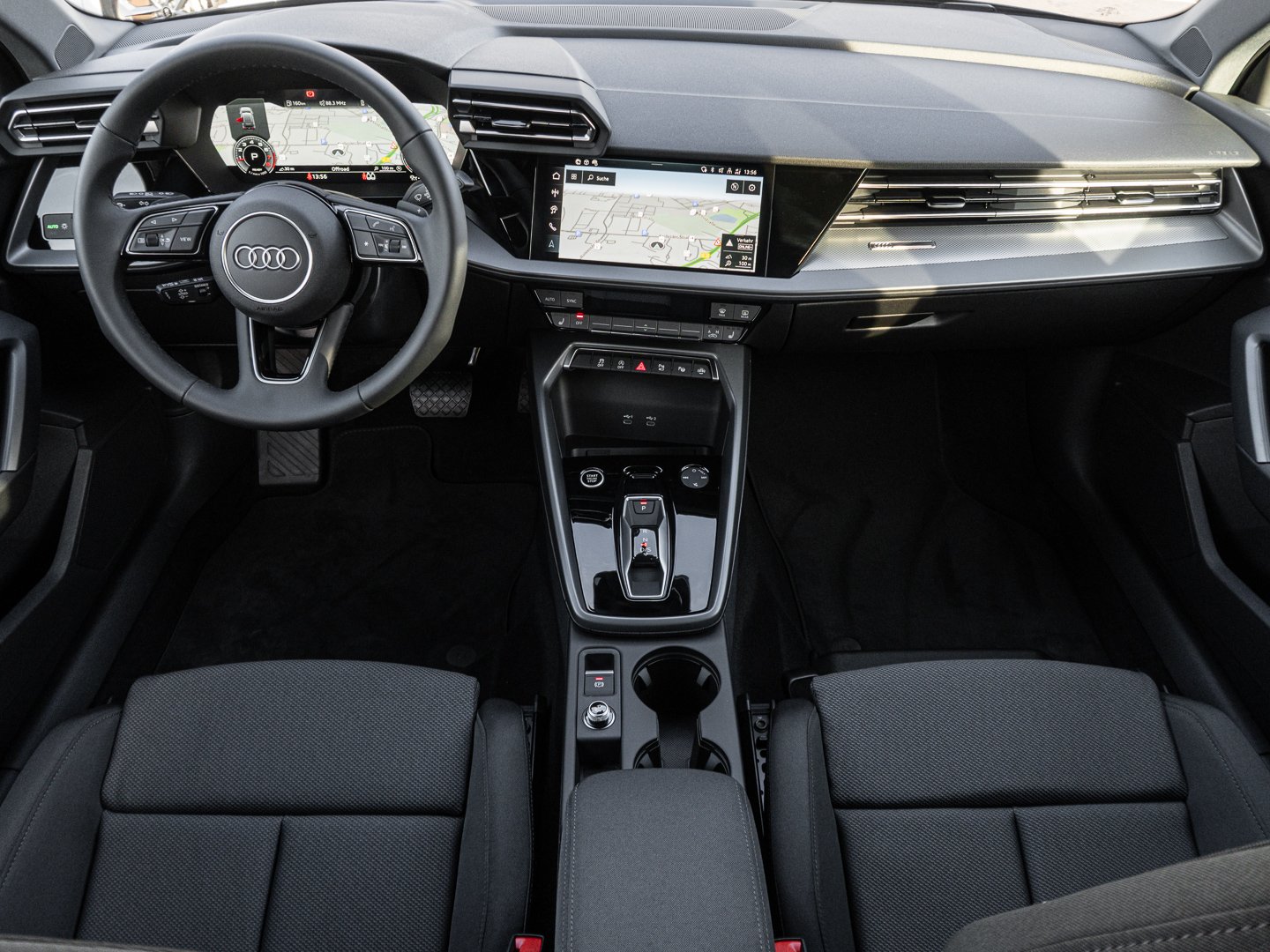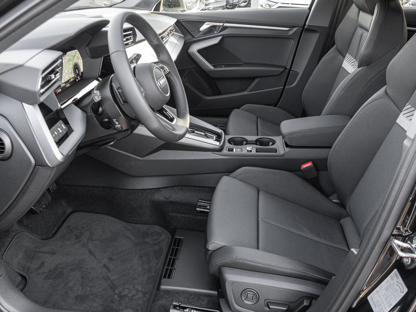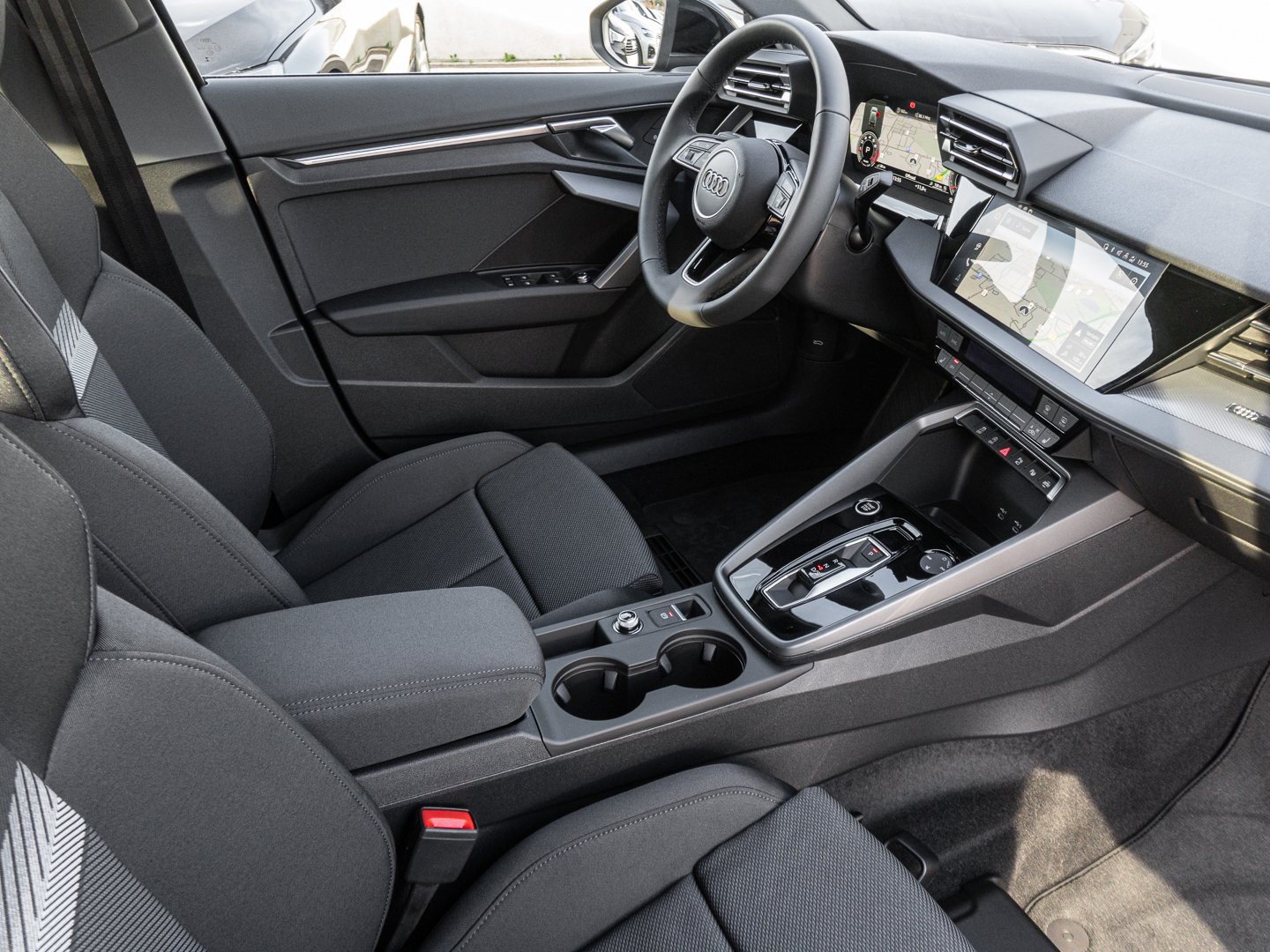 Stoff, L0L Linkslenker, 9S9 Audi virtual cockpit plus, Q1D Sportsitze vorn, 7P1 4-Wege-Lendenwirbelstütze für die Vordersitze, QJ1 Interieurapplikationen Aluminiumoptik, QQ2 Ambiente-Lichtpaket plus, 3NZ Rücksitzlehne umklappbar, IU4 Audi Application Store und Smartphone-Interface, 6E3 Mittelarmlehne vorn, KH5 3-Zonen-Komfortklimaautomatik, 4GF Wärmeschutzverglasung Frontscheibe, 3PB Fahrersitz elektrisch einstellbar, 8IT LED-Scheinwerfer, 1XX Lederlenkrad 3-Speichen mit Multifunktion plus und Schaltwippen, PX2 LED-Scheinwerfer und LED-Heckleuchten mit dynamischem Blinklicht Heck, N0M Stoff Routine