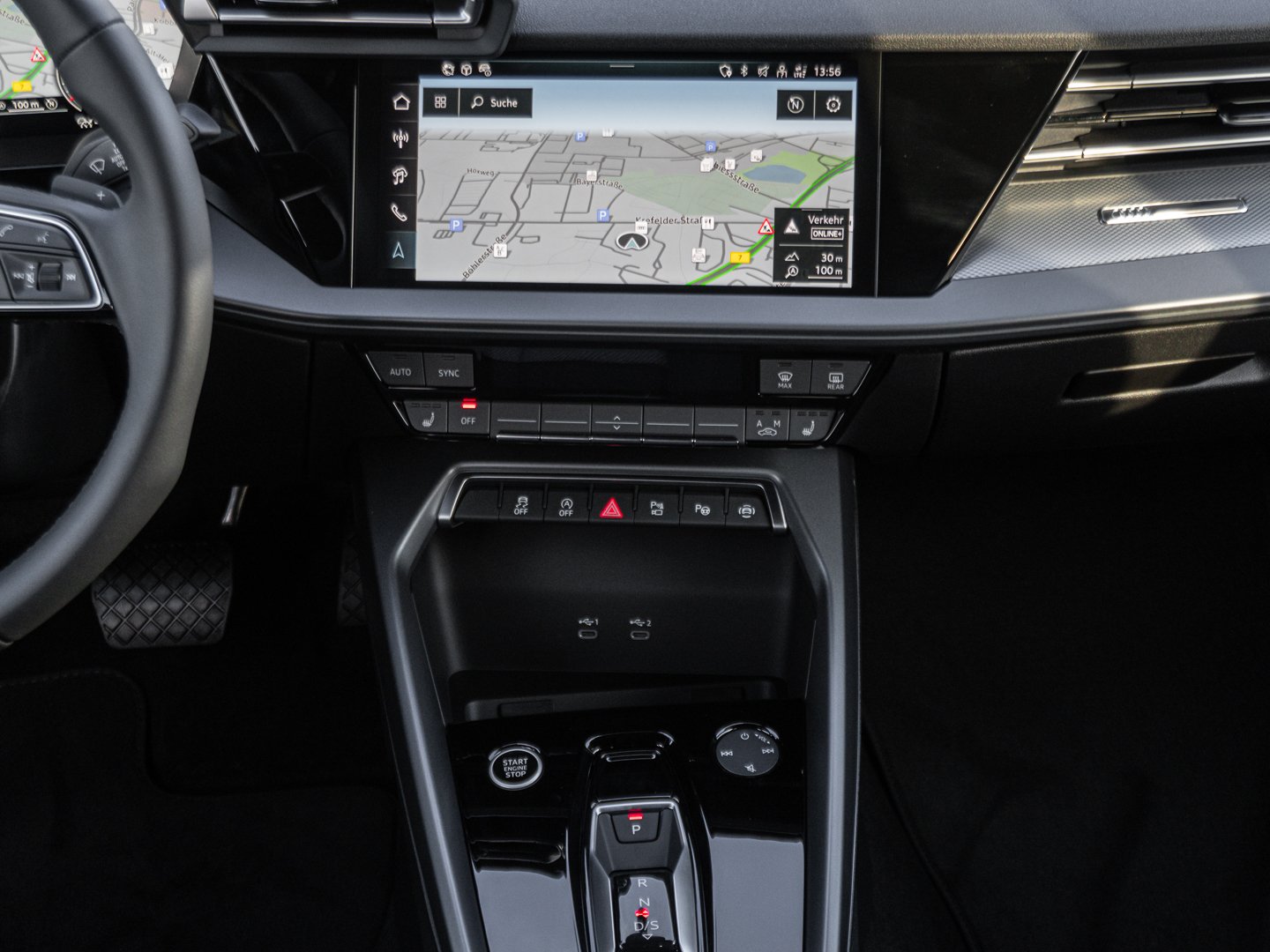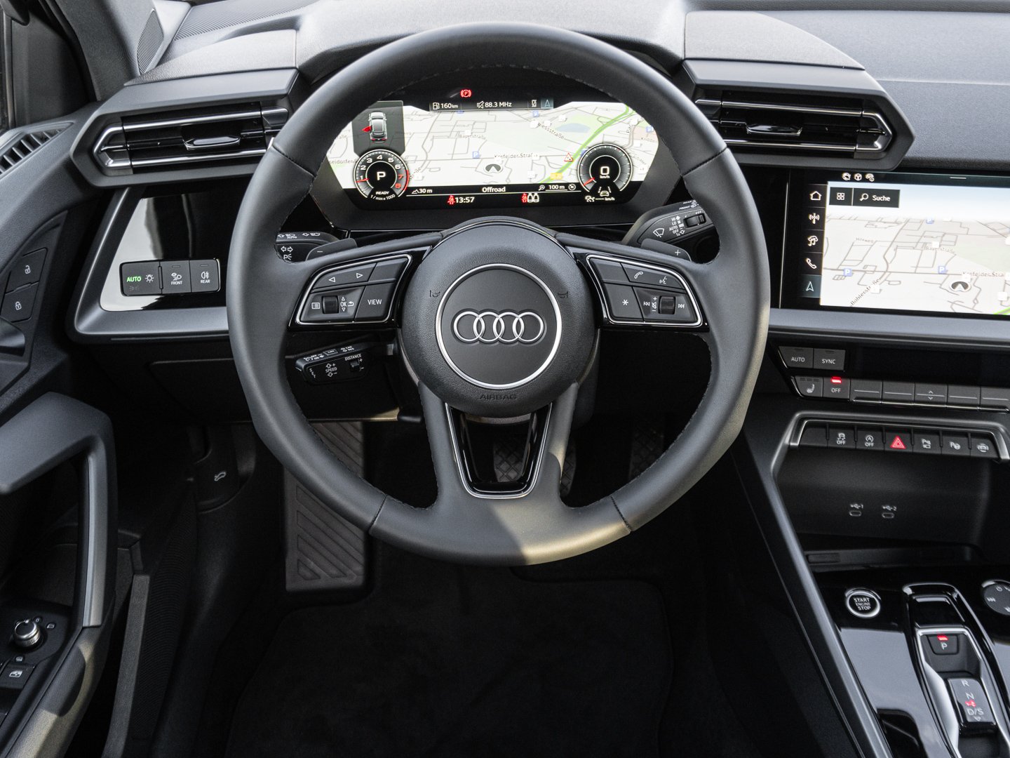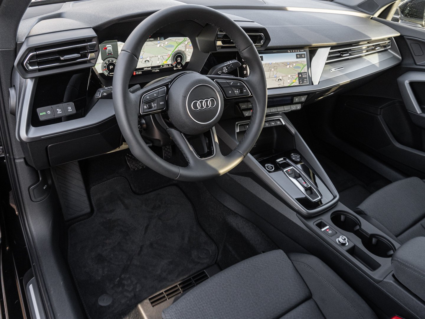 Stoff, L0L Linkslenker, 9S9 Audi virtual cockpit plus, Q1D Sportsitze vorn, 7P1 4-Wege-Lendenwirbelstütze für die Vordersitze, QJ1 Interieurapplikationen Aluminiumoptik, QQ2 Ambiente-Lichtpaket plus, 3NZ Rücksitzlehne umklappbar, IU4 Audi Application Store und Smartphone-Interface, 6E3 Mittelarmlehne vorn, KH5 3-Zonen-Komfortklimaautomatik, 4GF Wärmeschutzverglasung Frontscheibe, 3PB Fahrersitz elektrisch einstellbar, 8IT LED-Scheinwerfer, 1XX Lederlenkrad 3-Speichen mit Multifunktion plus und Schaltwippen, PX2 LED-Scheinwerfer und LED-Heckleuchten mit dynamischem Blinklicht Heck, N0M Stoff Routine