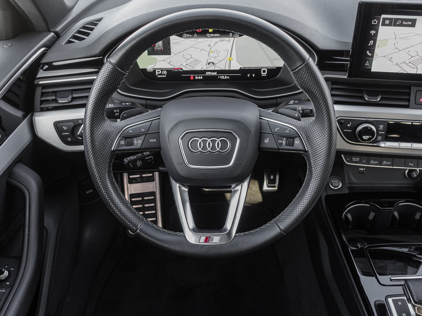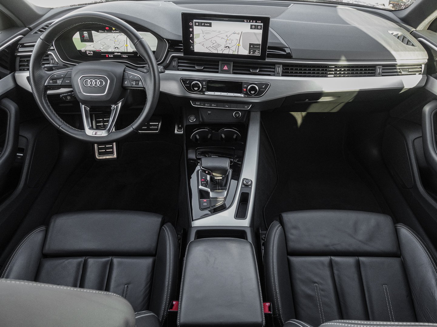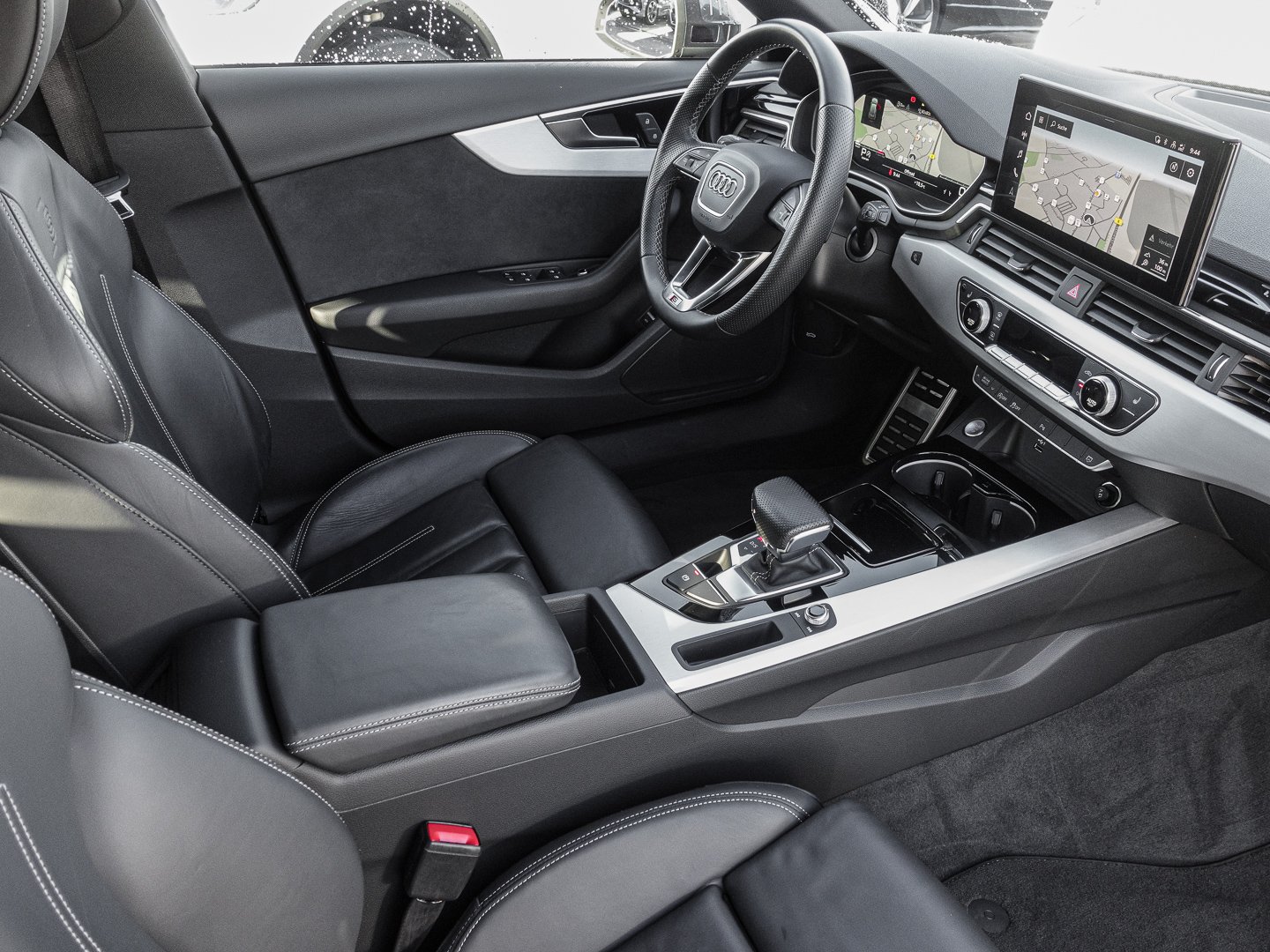 3L3 Vordersitze manuell einstellbar, 4GF Frontscheibe in Wärmeschutz- und Akustikverglasung, 9S9 Audi virtual cockpit plus, Q1D Sportsitze vorn, 6E3 Komfortmittelarmlehne vorn, L0L Linkslenker, QQ2 Ambiente-Lichtpaket plus, 4L6 Innenspiegel automatisch abblendend, 9AQ 3-Zonen-Komfortklimaautomatik, K8D Variant/Avant, VL1 Fußgängerschutzmaßnahmen erweitert, WQS Interieur S line, 8I6 Lendenwirbelstütze pneumatisch einstellbar mit Massagefunktion für die Vordersitze, 1XP Lederlenkrad im 3-Speichen-Design mit Multifunktion plus und Lenkradheizung, N3M Leder Feinnappa mit S-Prägung, 3NT Rücksitzlehne, geteilt umklappbar