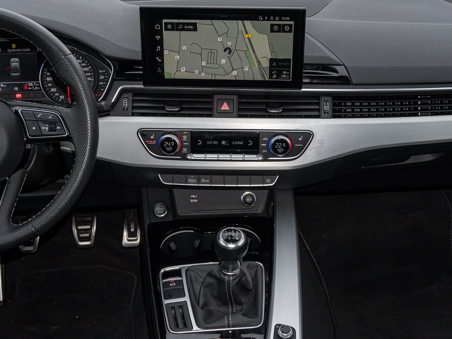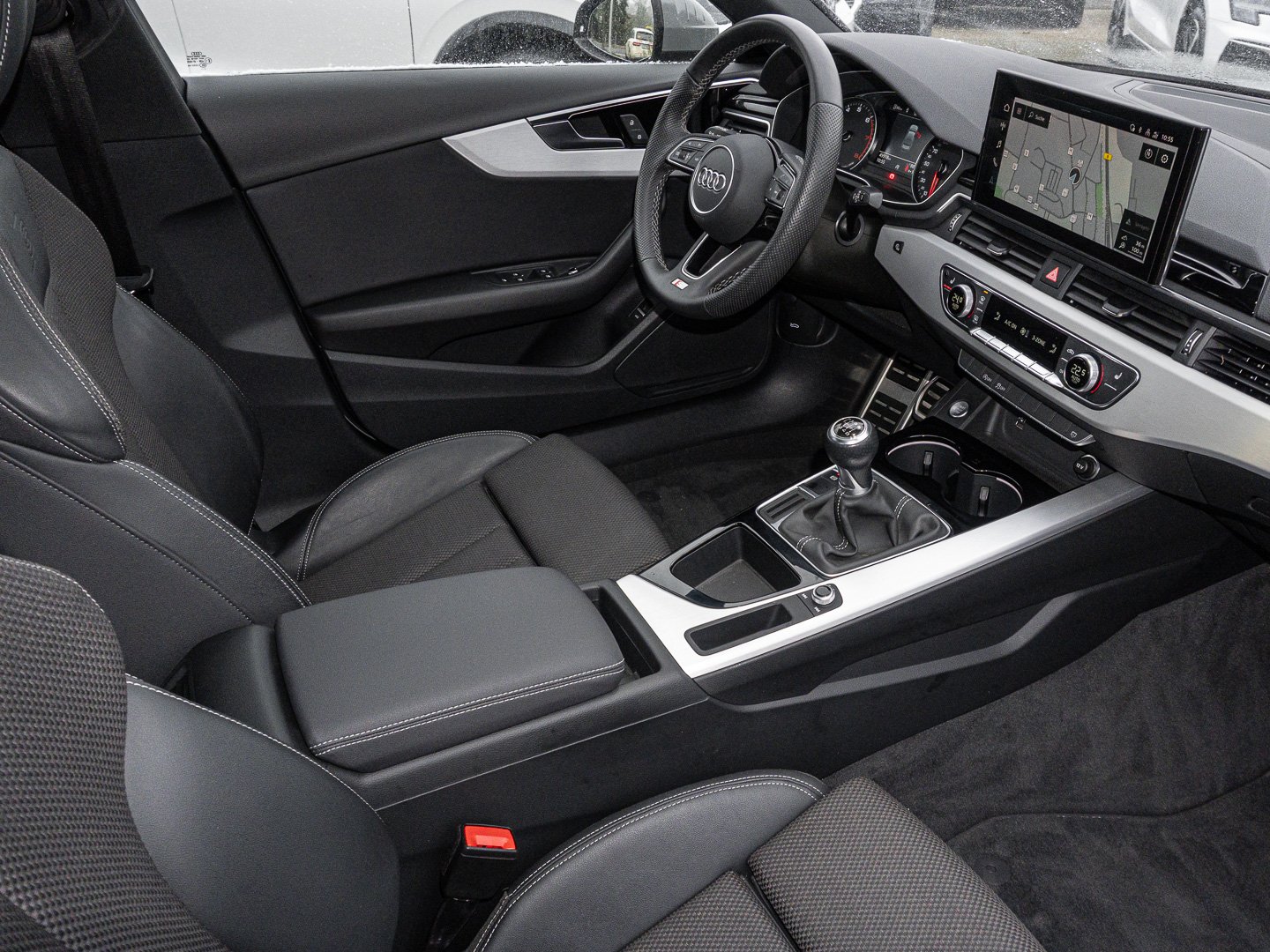 L0L Linkslenker, 9AQ 3-Zonen-Komfortklimaautomatik, Q1D Sportsitze vorn, 4UF Airbags vorn Beifahrerairbag deaktivierbar, 7P1 4-Wege-Lendenwirbelstütze für die Vordersitze, QQ2 Ambiente-Lichtpaket plus, VL1 Fußgängerschutzmaßnahmen erweitert, 1XW Lederlenkrad 3-Speichen mit Multifunktion plus, 4L6 Innenspiegel automatisch abblendend rahmenlos, 3L3 Vordersitze manuell einstellbar, 3NT Rücksitzlehne geteilt umklappbar, WQS Interieur S line, 4GF Frontscheibe in Wärmeschutz- und Akustikverglasung, 6E1 Mittelarmlehne vorn, 9S7 Fahrerinformationssystem mit Farbdisplay, N7V Stoff Sequenz/Leder-Kombination