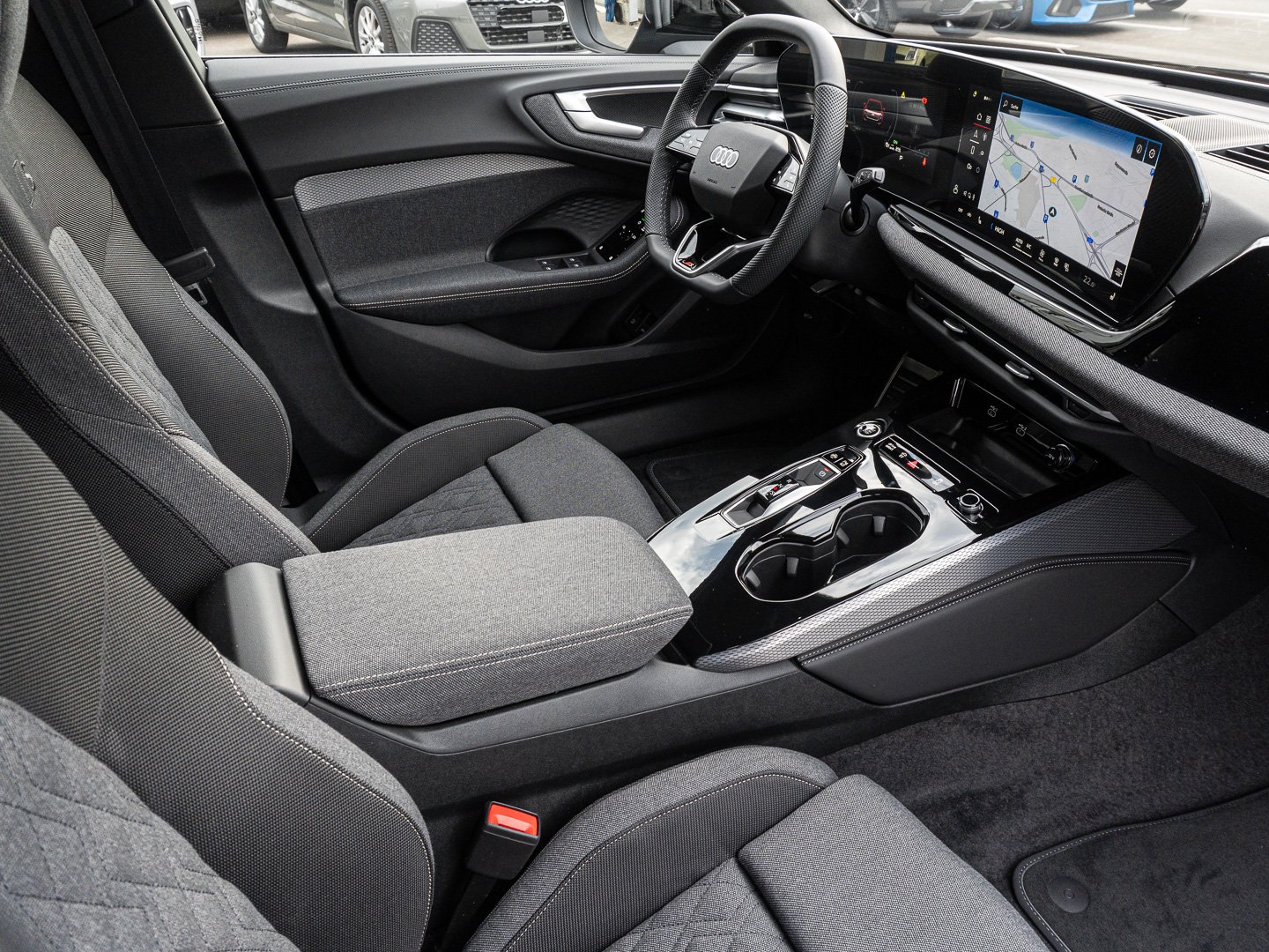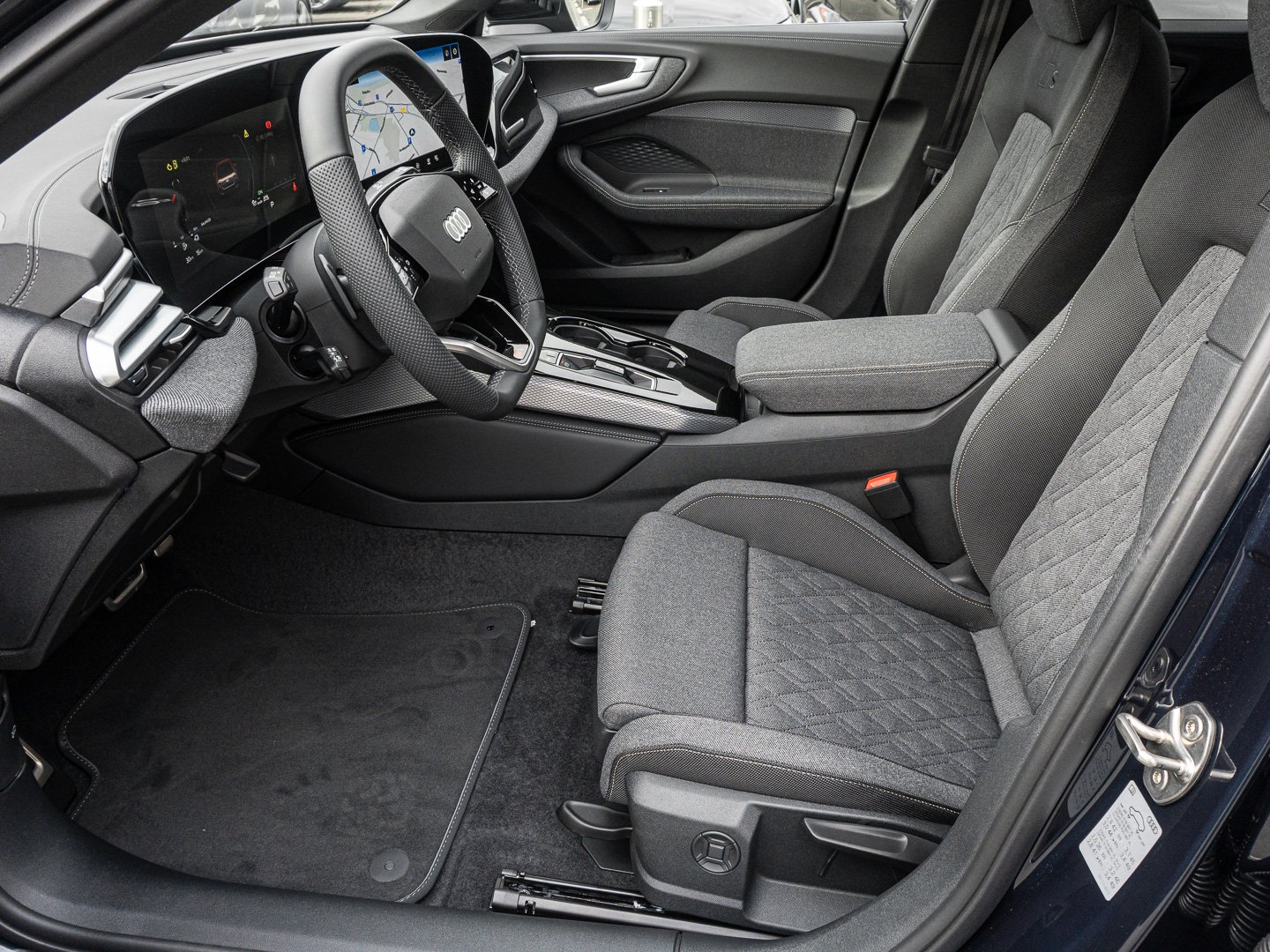 Stoff, L0L Linkslenker, 3CX Netztrennwand, 98G Klimatisierungspaket, 9AQ 3-Zonen-Komfortklimaautomatik, 9S9 Audi virtual cockpit plus, Q1D Sportsitze vorn, 4UF Airbags vorn Beifahrerairbag deaktivierbar, 6E3 Komfortmittelarmlehne vorn, 7P1 4-Wege-Lendenwirbelstütze für die Vordersitze, IU6 Audi Application Store und Smartphone-Interface, QJ1 Interieurapplikationen Aluminiumoptik, 3L3 Vordersitze manuell einstellbar, K8D Variant/Avant