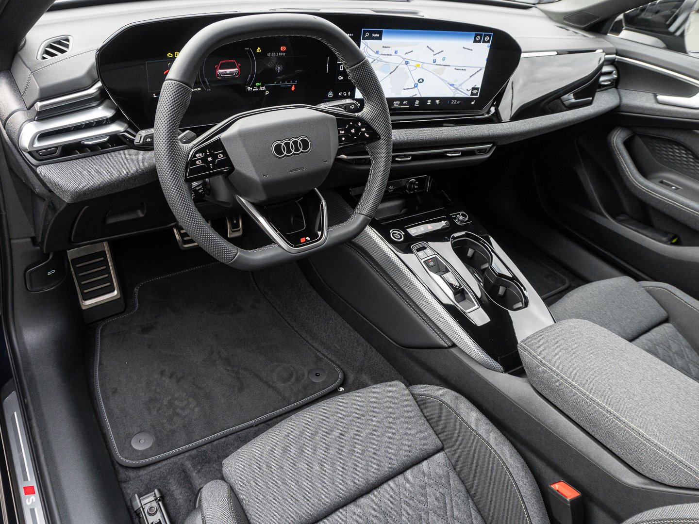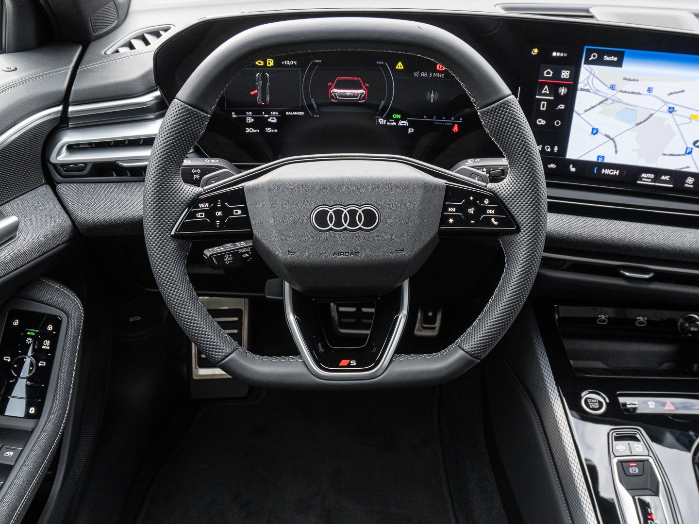 1A2 Kraftstoffsystem Otto-Direkteinspritzung (FSI), 1XY Sportlederlenkrad 3-Speichen oben und unten abgeflacht mit Multifunktion und Schaltwippen, 2C5 Lenkradeinstellung manuell, 4G3 Ausweichassistent und Abbiegeassistent vorn, 4GQ Wärmeschutz- und Akustikverglasung Frontscheibe, 5IQ Fahrzeugklassen-Differenzierung-8WH/8WK, 5JJ Außenspiegel Fahrerseite asphärisch Beifahrerseite asphärisch, 5MV Dekoreinlagen Aluminium matt gebürstet mit Linearprägung anthrazit, 5P1 Fond-Hinweis, 6F7 Lenkradapplikation Chromoptik S-Emblem Lenkradgriffe perforiertes Leder und Kontrastnaht, 7HB Interieurelemente oben und unten mit Kontrastnaht, 98K Funktionspaket Basis ( Nur für Audi ), 99B Assistenzpaket Fahren und Parken, 9X0 Einparkhilfe plus mit Distanzanzeige, 9ZE Telefonablage mit induktiver Ladefunktion und Mobilfunk-Koppelantenne, EM2 Aufmerksamkeits- und Müdigkeitserkennung, FP1 FOD Funktionen online verfügbar, GS5 Akzentflächen und Bedientasten schwarz glänzend, JX1 Querverkehrassistent vorn, LT2 Verkehrszeichenbasierter Geschwindigkeitsbegrenzer, PY2 Exterieur S line, UE8 USB-Anschlüsse mit Ladefunktion in erster und zweiter Sitzreihe, GA2 Komfort-Standklimatisierung, 0JK Gewichtsklasse Vorderachse Gewichtsbereich 10, 0P9 Endrohrblenden verchromt dunkel, 4ZP Fensterzierleisten und Anbauteile dunkel, QQ4 Ambiente-Lichtpaket pro, 99S Interieurausstattung 9, N2Y Stoff Kaskade mit Rautensteppung und S-Emblem, PWK Interieur S line mit Sportsitzen Stoff schwarz, Q8C Interieurelemente umlaufend Stoff Kaskade, PAH Exterieurpaket schwarz, 8G9 Vorbereitung für weitere Lichtfunktionen, T4E 4 Zyl.Ottomotor 20L Aggr. 06R.B, CE1 Räder Audi Sport 5-Doppelspeichen schwarz 85Jx19 Reifen 245/40 R19, AKT AKTION NX25, 84B Reifen 245/40 R19 98Y xl Performance, D6B 4-Zylinder-Ottomotor 20 L/185 KW Hybrid Turbo FSI Systemleistung 220 KW Grundmotor ist: T4E