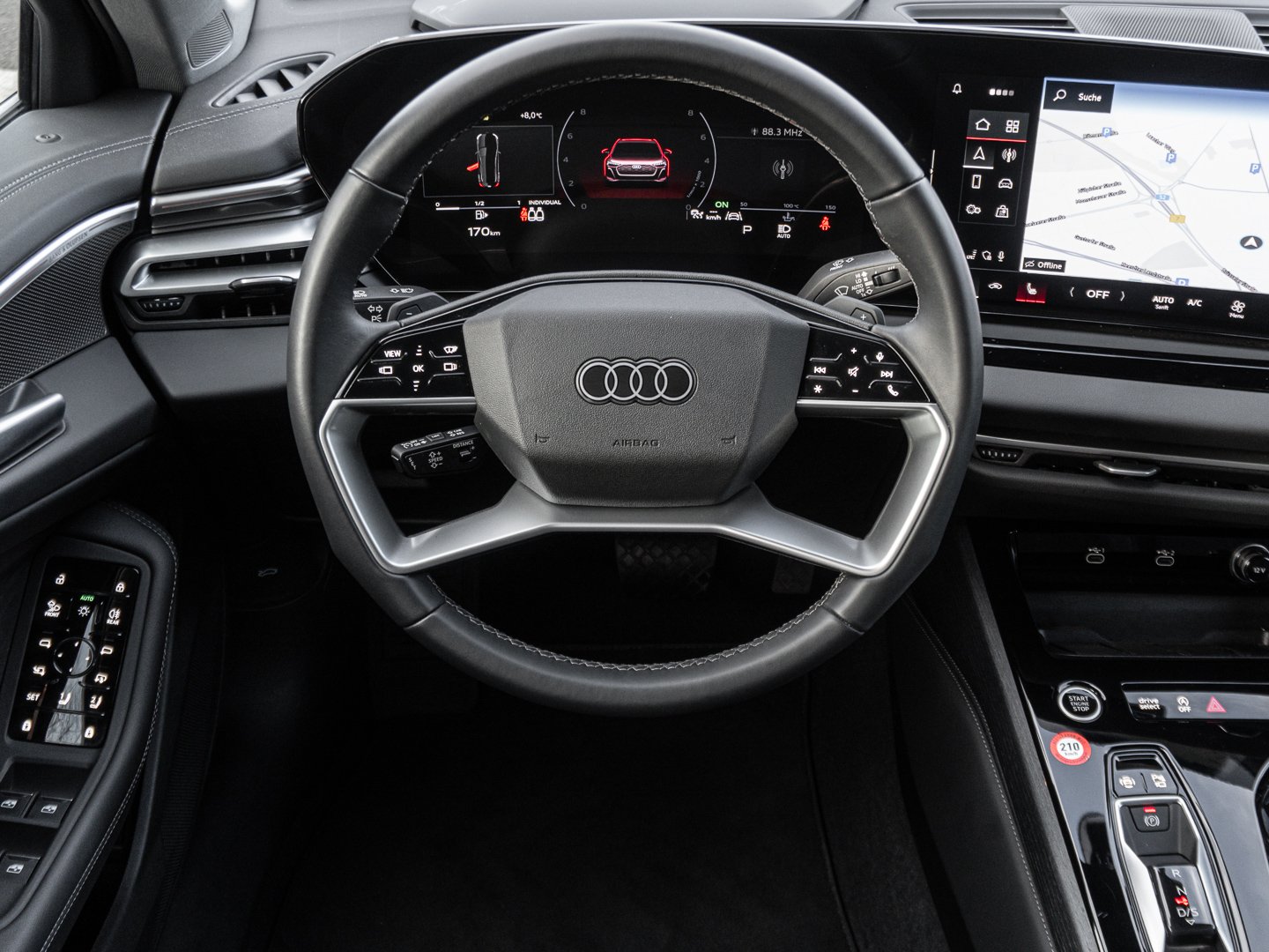 1J2 Projektionsleuchte in den Außenspiegeln, 2C5 Lenkradeinstellung manuell, 4G3 Ausweichassistent und Abbiegeassistent vorn, 4GQ Wärmeschutz- und Akustikverglasung Frontscheibe, 4WH Abgaskonzept EU6 EA Lambda=1 WLTP3 M1 N1-I, 5JJ Außenspiegel Fahrerseite asphärisch Beifahrerseite asphärisch, 7HB Interieurelemente oben und unten mit Kontrastnaht, 8VP LED-Heckleuchten pro, 99B Assistenzpaket Fahren und Parken, 9X0 Einparkhilfe plus mit Distanzanzeige, 9ZE Telefonablage mit induktiver Ladefunktion und Mobilfunk-Koppelantenne, EM2 Aufmerksamkeits- und Müdigkeitserkennung, FP1 FOD Funktionen online verfügbar, GS5 Akzentflächen und Bedientasten schwarz glänzend, JX1 Querverkehrassistent vorn, LT2 Verkehrszeichenbasierter Geschwindigkeitsbegrenzer, PY2 Exterieur S line, 7W7 Proaktiver Insassenschutz Front Seite und Heck, 99I Assistenzpaket Schutz- und Warnsysteme plus, 2F1 Digitaler Schlüssel, 5P2 Insassenerkennung im Fond, 79H Spurwechsel- und Ausstiegswarnung Querverkehrassistent hinten und Abbiegeassistent hinten, 8G4 Matrix-Funktion, AI1 Memory-Funktion für den Fahrersitz und die Außenspiegel, JH1 MMI Beifahrerdisplay, PQB Tech plus, 4ZP Fensterzierleisten und Anbauteile dunkel, PYH MMI experience pro, U9E USB-Schnittstellen mit erhöhter Ladeleistung, 5MC Dekoreinlagen Holz Edelkastanie grau naturell, C1I Räder 5-Arm-Aero schwarz glanzgedreht 80Jx19 Reifen 245/40 R19, E2D edition one mit Akzenten magnesiumgrau, PWE Interieur mit Sportsitzen Leder/Kunstleder-Kombination schwarz, T4X 4 Zyl.Ottomotor 20L Aggr. 06R.A