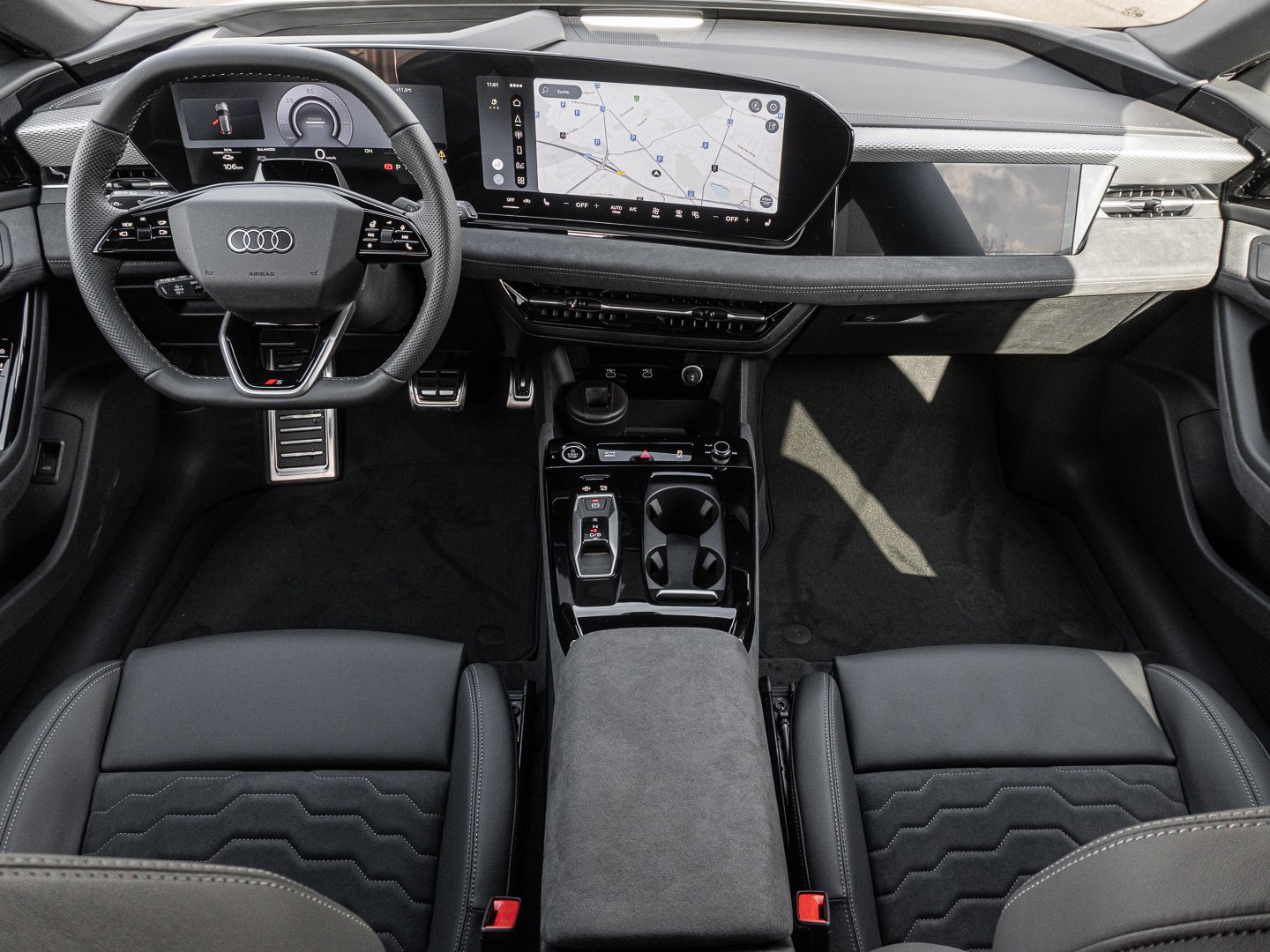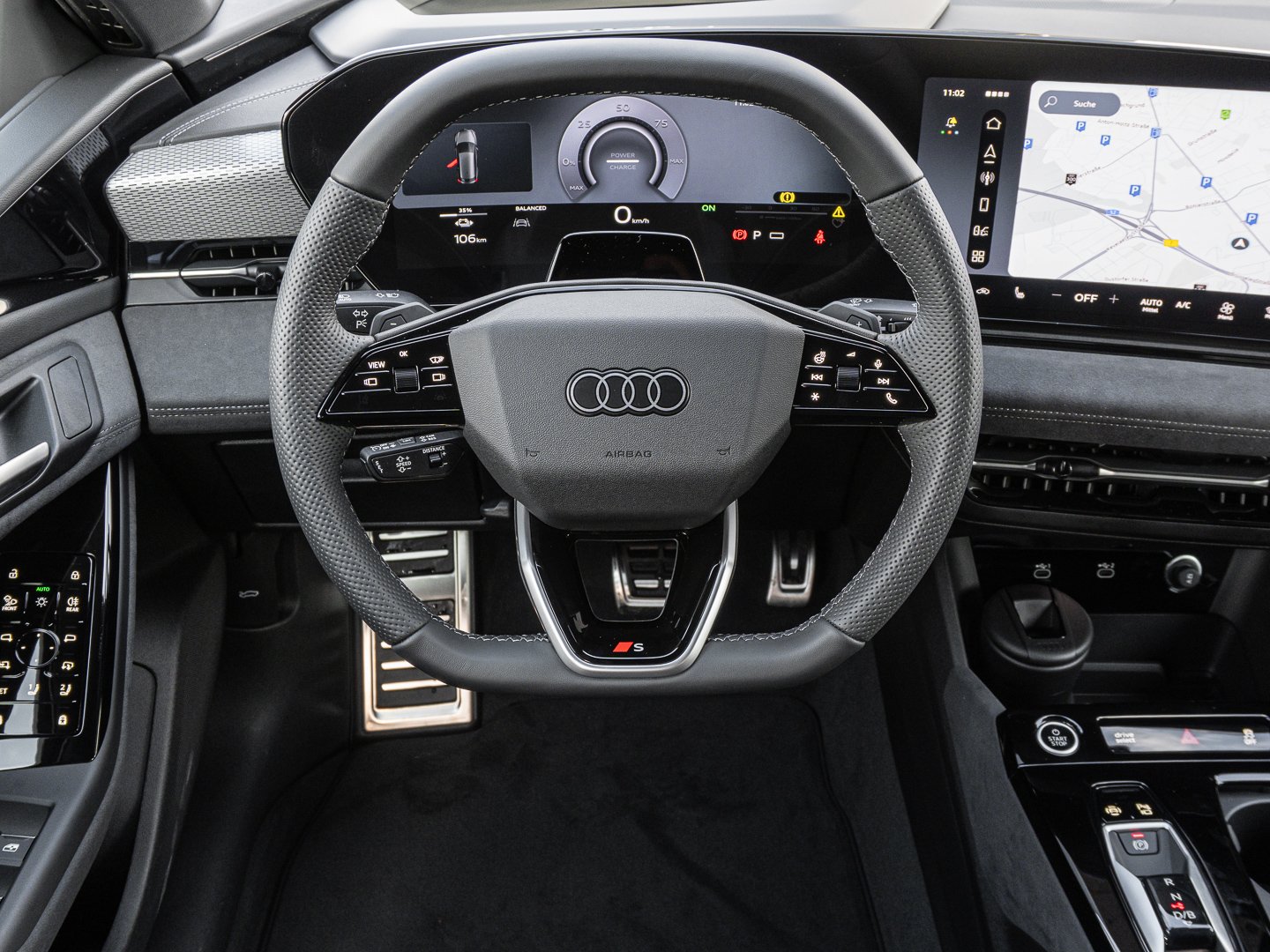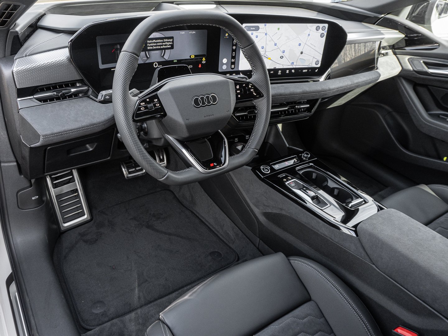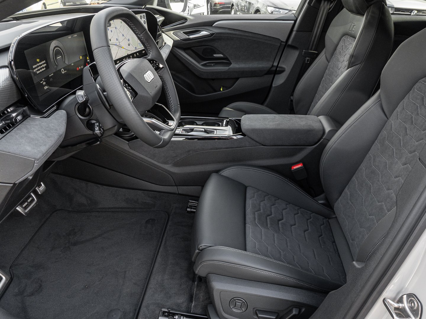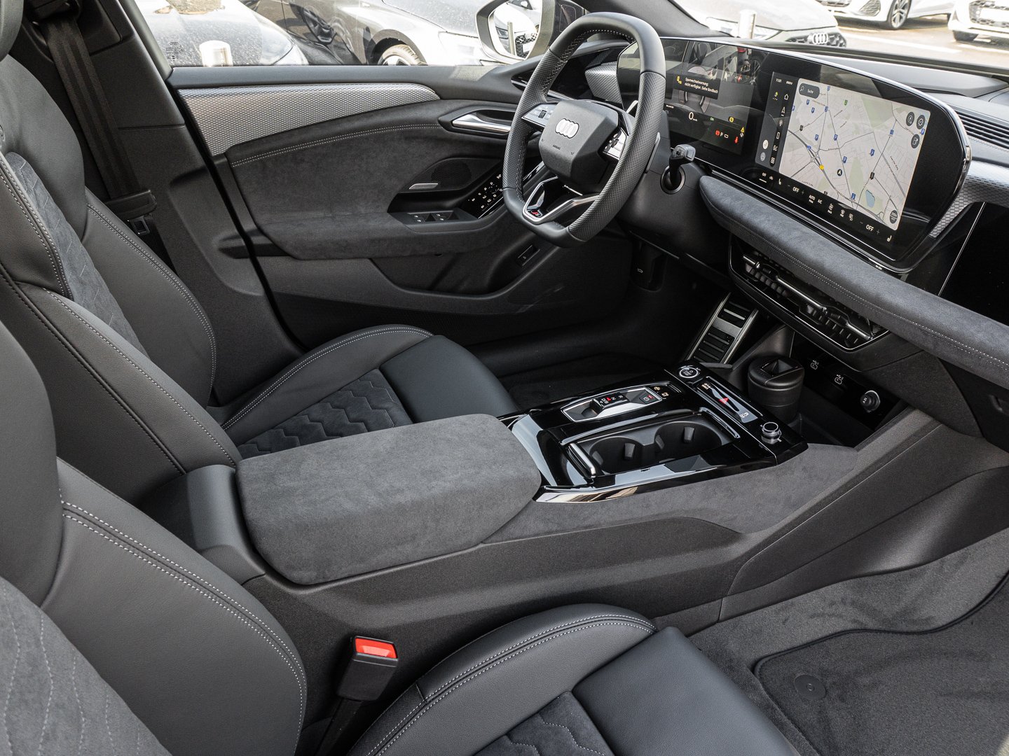 1J2 Projektionsleuchte in den Außenspiegeln, 1XY Sportlederlenkrad 3-Speichen oben und unten abgeflacht mit Multifunktion und Schaltwippen, 2C5 Lenkradeinstellung manuell, 4GQ Wärmeschutz- und Akustikverglasung Frontscheibe, 5JJ Außenspiegel Fahrerseite asphärisch Beifahrerseite asphärisch, 5MV Dekoreinlagen Aluminium matt gebürstet mit Linearprägung anthrazit, 5P1 Fond-Hinweis, 8VP LED-Heckleuchten pro, 9X0 Einparkhilfe plus mit Distanzanzeige, 9ZE Telefonablage mit induktiver Ladefunktion und Mobilfunk-Koppelantenne, FP1 FOD Funktionen online verfügbar, GS5 Akzentflächen und Bedientasten schwarz glänzend, JX1 Querverkehrassistent vorn, LT2 Verkehrszeichenbasierter Geschwindigkeitsbegrenzer, PY2 Exterieur S line, 7W7 Proaktiver Insassenschutz Front Seite und Heck, 99I Assistenzpaket Schutz- und Warnsysteme plus, GA2 Komfort-Standklimatisierung, 2F1 Digitaler Schlüssel, 79H Spurwechsel- und Ausstiegswarnung Querverkehrassistent hinten und Abbiegeassistent hinten, 8G4 Matrix-Funktion, JH1 MMI Beifahrerdisplay, PQB Tech plus, 4ZP Fensterzierleisten und Anbauteile dunkel, 7HB Instrumententafel-Oberseite schwarz mit Kontrastnaht, 8IY LED-Scheinwerfer plus, LW1 Digitale Lichtsignaturen, U9E USB-Schnittstellen mit erhöhter Ladeleistung, 3A2 Kindersitzbefestigung i-Size-konform auf Beifahrerseite und äußeren Fondsitzen Top Tether für äußere Fondsitze, 98B Steuerungsnummer Komfortpaket, GB1 Mobilfunk-Signalverstärker Typ 1, VT5 Einstiegsleisten mit Aluminiumeinlegern vorn beleuchtet S-Emblem, 99W Interieurausstattung 13, PWN Interieur S mit Sportsitzen Mikrofaser Dinamica/Leder-Kombination schwarz, GZ0 Manuelle Türbetätigung, 76H Ladekabel Mode 3 für öffentliches Laden bis zu 22 kW (AC), PAH Exterieurpaket schwarz, Q8D Interieurelemente oben und unten Mikrofaser Dinamica, A1Z Ländercluster Sonstige Genehmigungen, 04C Tech plus, EM3 Aufmerksamkeits- und Müdigkeitserkennung mit Fahrerbeobachtung, UD7 Leuchtende Audi Ringe hinten, 2W9 Ladeklappe elektrisch, 98G Klimatisierungspaket Winter, 98V Ladepaket Basis ( Nur für Audi ), J9G Hochvolt-Batterie 100 kWh (brutto), LH3 Maximal mögliche Ladeleistung (DC), Q11 Reifen 245/40 R21 100Y XL vorn Reifen 275/35 R21 103Y XL hinten, 275/35 R21, VS1 Vorbereitung intelligente Ladefunktion, T39 Elektro-Motor Aggr.0EL.D, Y4U Sondersteuerung VP, 2DI Fahrzeugklassen-Differenzierung-F5A/F5F, PYE Klimatisierungspaket Winter, 6F7 Lenkradapplikation Chromoptik und S-Emblem, 98S MMI experience plus mit Bang & Olufsen Premium Soundsystem, C2A Räder Audi Sport 5-Arm-Dynamik schwarz metallic 8.5J, 9.5 J x 21 Reifen 245/40, GJ7 Adaptiver Fahrassistent plus, N2S Mikrofaser Dinamica/Leder-Kombination mit Wasserfallsteppung und S-Emblem, PYH MMI experience plus mit Bang & Olufsen Premium Soundsystem, M21 Elektro-Motor: Höchste konsolidierte Nutzleistung/Nutzleistung 270 KW Grundmotor ist: T39