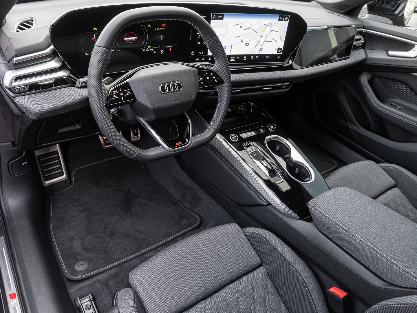 Stoff, L0L Linkslenker, 3CX Netztrennwand, 4L6 Innenspiegel automatisch abblendend, 9S9 Audi virtual cockpit plus, Q1D Sportsitze vorn, 4UF Airbags vorn Beifahrerairbag deaktivierbar, 6E3 Komfortmittelarmlehne vorn, 7P1 4-Wege-Lendenwirbelstütze für die Vordersitze, IU6 Audi Application Store und Smartphone-Interface, QJ1 Interieurapplikationen Aluminiumoptik, QQ2 Ambiente-Lichtpaket plus, K8D Variant/Avant, 9AQ 4-Zonen-Komfortklimaautomatik