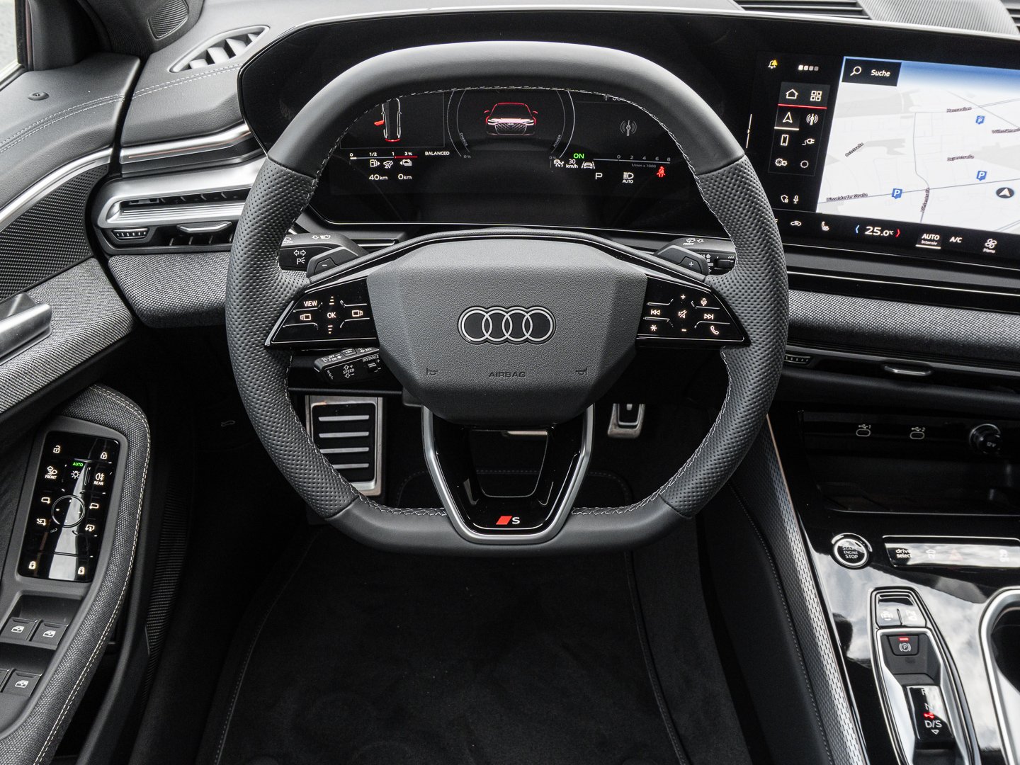1A2 Kraftstoffsystem Otto-Direkteinspritzung (FSI), 1J2 Projektionsleuchte in den Außenspiegeln, 1XY Sportlederlenkrad 3-Speichen oben und unten abgeflacht mit Multifunktion und Schaltwippen, 2C5 Lenkradeinstellung manuell, 4GQ Wärmeschutz- und Akustikverglasung Frontscheibe, 5MV Dekoreinlagen Aluminium matt gebürstet mit Linearprägung anthrazit, 5P1 Fond-Hinweis, 6F7 Lenkradapplikation Chromoptik S-Emblem Lenkradgriffe perforiertes Leder und Kontrastnaht, 7HB Interieurelemente oben und unten mit Kontrastnaht, 8VP LED-Heckleuchten pro, 98K Funktionspaket Basis ( Nur für Audi ), 9X0 Einparkhilfe plus mit Distanzanzeige, 9ZE Telefonablage mit induktiver Ladefunktion und Mobilfunk-Koppelantenne, EM2 Aufmerksamkeits- und Müdigkeitserkennung, FP1 FOD Funktionen online verfügbar, JX1 Querverkehrassistent vorn, LT2 Verkehrszeichenbasierter Geschwindigkeitsbegrenzer, PY2 Exterieur S line, UE8 USB-Anschlüsse mit Ladefunktion in erster und zweiter Sitzreihe, 0JL Gewichtsklasse Vorderachse Gewichtsbereich 11, 7W7 Proaktiver Insassenschutz Front Seite und Heck, 99I Assistenzpaket Schutz- und Warnsysteme plus, GA2 Komfort-Standklimatisierung, 2F1 Digitaler Schlüssel, 79H Spurwechsel- und Ausstiegswarnung Querverkehrassistent hinten und Abbiegeassistent hinten, 8G4 Matrix-Funktion, JH1 MMI Beifahrerdisplay, 0P9 Endrohrblenden verchromt dunkel, 4ZP Fensterzierleisten und Anbauteile dunkel, 8IY LED-Scheinwerfer plus, GJ6 Adaptiver Fahrassistent plus, 3A2 Kindersitzbefestigung i-Size-konform auf Beifahrerseite und äußeren Fondsitzen Top Tether für äußere Fondsitze, 5IY Fahrzeugklassen-Differenzierung-4P0/4PA, 98B Steuerungsnummer Komfortpaket, 99S Interieurausstattung 9, GB1 Mobilfunk-Signalverstärker Typ 1, N2Y Stoff Kaskade mit Rautensteppung und S-Emblem, Q8C Interieurelemente umlaufend Stoff Kaskade, VT5 Einstiegsleisten mit Aluminiumeinlegern vorn beleuchtet S-Emblem, GZ0 Manuelle Türbetätigung, PQ2 Tech plus, 76H Ladekabel Mode 3 für öffentliches Laden bis zu 22 kW (AC), PAH Exterieurpaket schwarz, 04C Tech plus, T4E 4 Zyl.Ottomotor 20L Aggr. 06R.B, D6B 4-Zylinder-Ottomotor 20 L/185 KW Hybrid Turbo FSI Systemleistung 220 KW Grundmotor ist: T4E, AKT AKTION NY25, C6Z Räder Audi Sport 5-Arm-Peak schwarz metallic glanzgedreht 85Jx20 Reifen 255/40 R20, PWK Interieur S mit Sportsitzen Stoff schwarz-grau