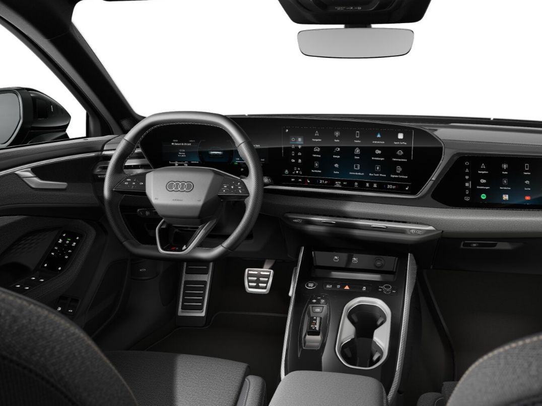 Stoff, L0L Linkslenker, 3CX Netztrennwand, 4L6 Innenspiegel automatisch abblendend, 9S9 Audi virtual cockpit plus, Q1D Sportsitze vorn, 4UF Airbags vorn Beifahrerairbag deaktivierbar, 6E3 Komfortmittelarmlehne vorn, 7P1 4-Wege-Lendenwirbelstütze für die Vordersitze, IU6 Audi Application Store und Smartphone-Interface, QJ1 Interieurapplikationen Aluminiumoptik, QQ2 Ambiente-Lichtpaket plus, K8D Variant/Avant, 9AQ 4-Zonen-Komfortklimaautomatik