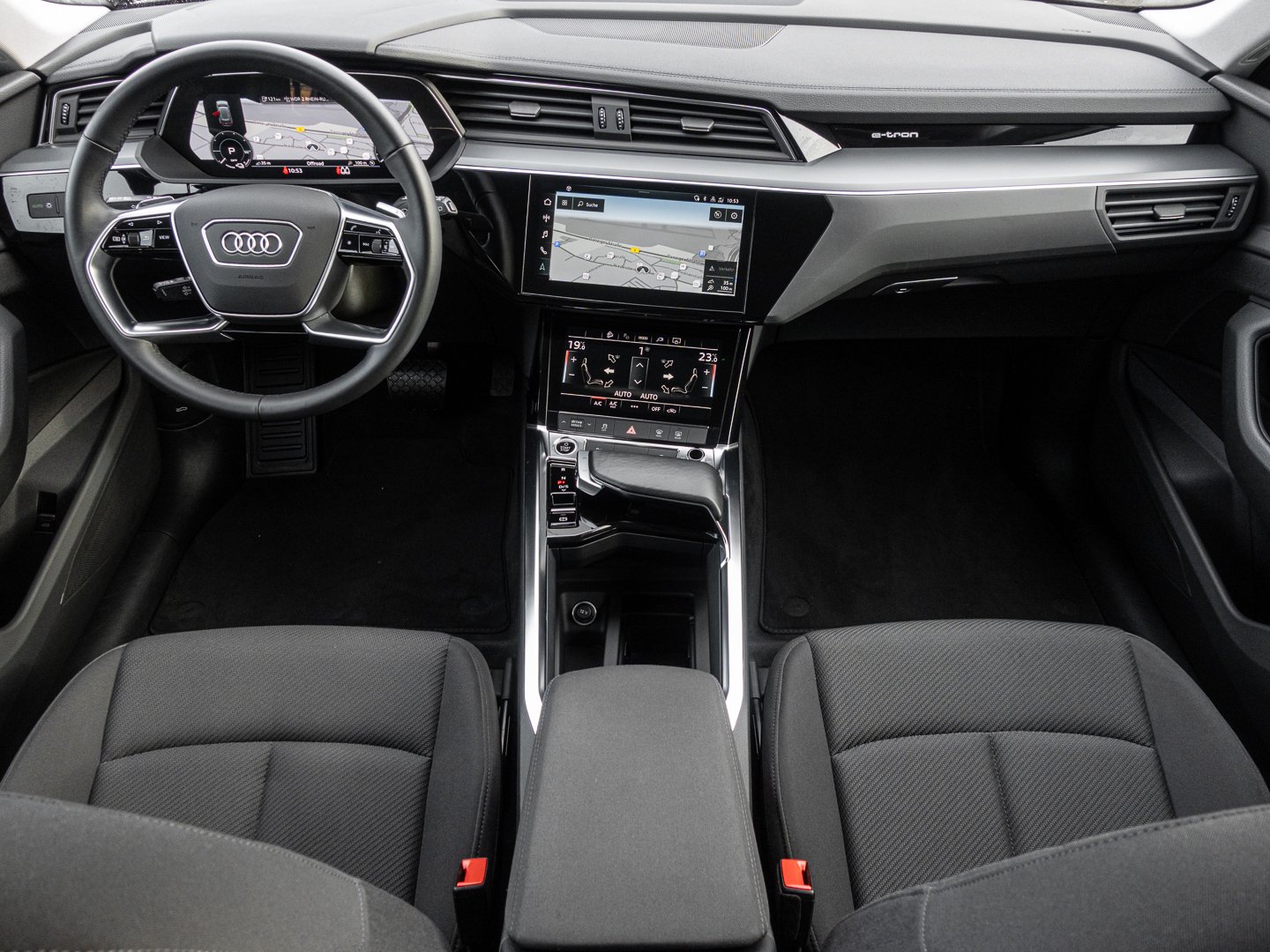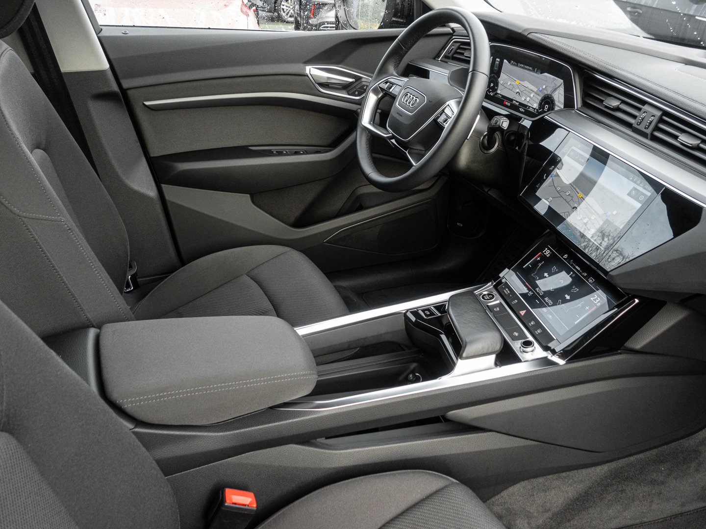 5XC Sonnenblenden vorn, IU2 Vorbereitung für Smartphone-Interface, T4K Elektro-Motor Aggr.0EF.A und 0EF.B, 5RU Außenspiegel rechts (großes Sichtfeld), 400V, lang undgerade für das e-tron Ladesystem, 8G9 LED-Scheinwerfer mit Vorbereitung für weitere Lichtfunktionen, M2R Elektro-Motor Systemleistung 230 KW Grundmotor ist: T4K/T1A/T4A, 8.5 Jx19, 5-Arm-Aero mit Grafikdruck, Reifen 255/55 R19