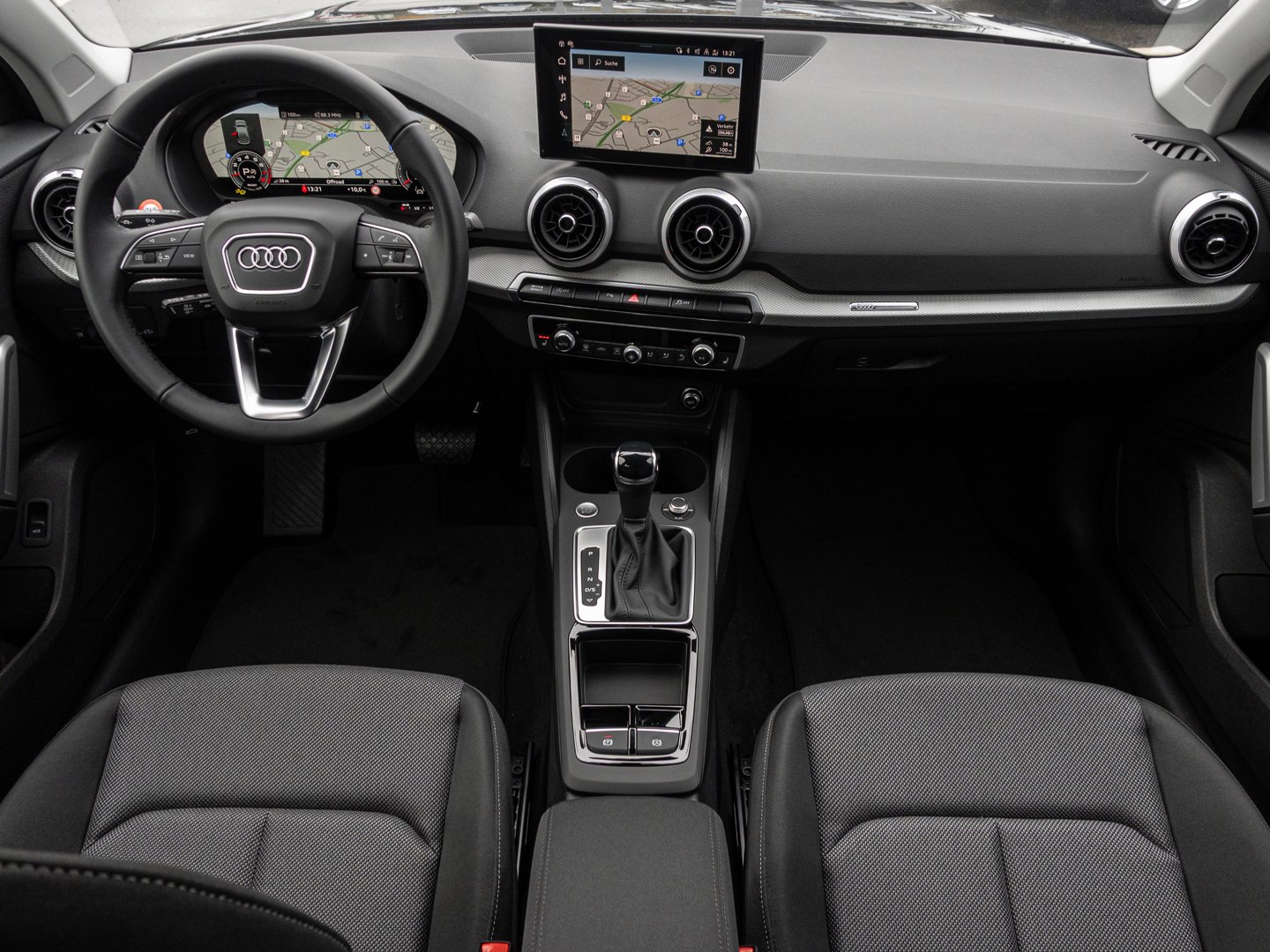 Stoff, L0L Linkslenker, 4L6 Innenspiegel automatisch abblendend, 9S9 Audi virtual cockpit plus, 6E3 Komfortmittelarmlehne vorn, 7P1 4-Wege-Lendenwirbelstütze für die Vordersitze, QJ1 Interieurapplikationen Aluminiumoptik, 9AK Komfortklimaautomatik, Q4H Sportsitze vorn, 1XW Lederlenkrad 3-Speichen mit Multifunktion plus, 3NT Rücksitzlehne geteilt umklappbar, QQ1 Ambiente-Lichtpaket, PWB Interieur mit Sportsitzen in Stoff schwarz, 8EX LED-Scheinwerfer