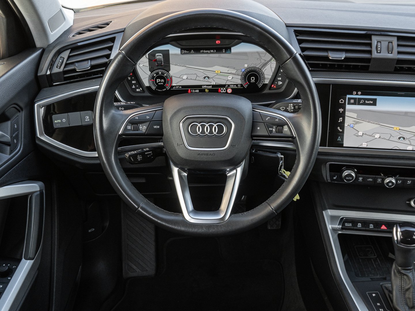 L0L Linkslenker, 9S9 Audi virtual cockpit plus, 7P1 4-Wege-Lendenwirbelstütze für die Vordersitze, 4L6 Innenspiegel automatisch abblendend rahmenlos, 6E3 Mittelarmlehne vorn, 3L3 Vordersitze manuell einstellbar, 5KR Rücksitzbank plus mit Mittelarmlehne und Cupholder, 4GF Frontscheibe in Wärmeschutz- und Akustikverglasung, 9AK 2-Zonen-Komfortklimaautomatik, QQ1 Ambiente-Lichtpaket, QL5 Privacy-Verglasung (Scheiben abgedunkelt), 1XW Lederlenkrad 3-Speichen-Design mit Multifunktion plus