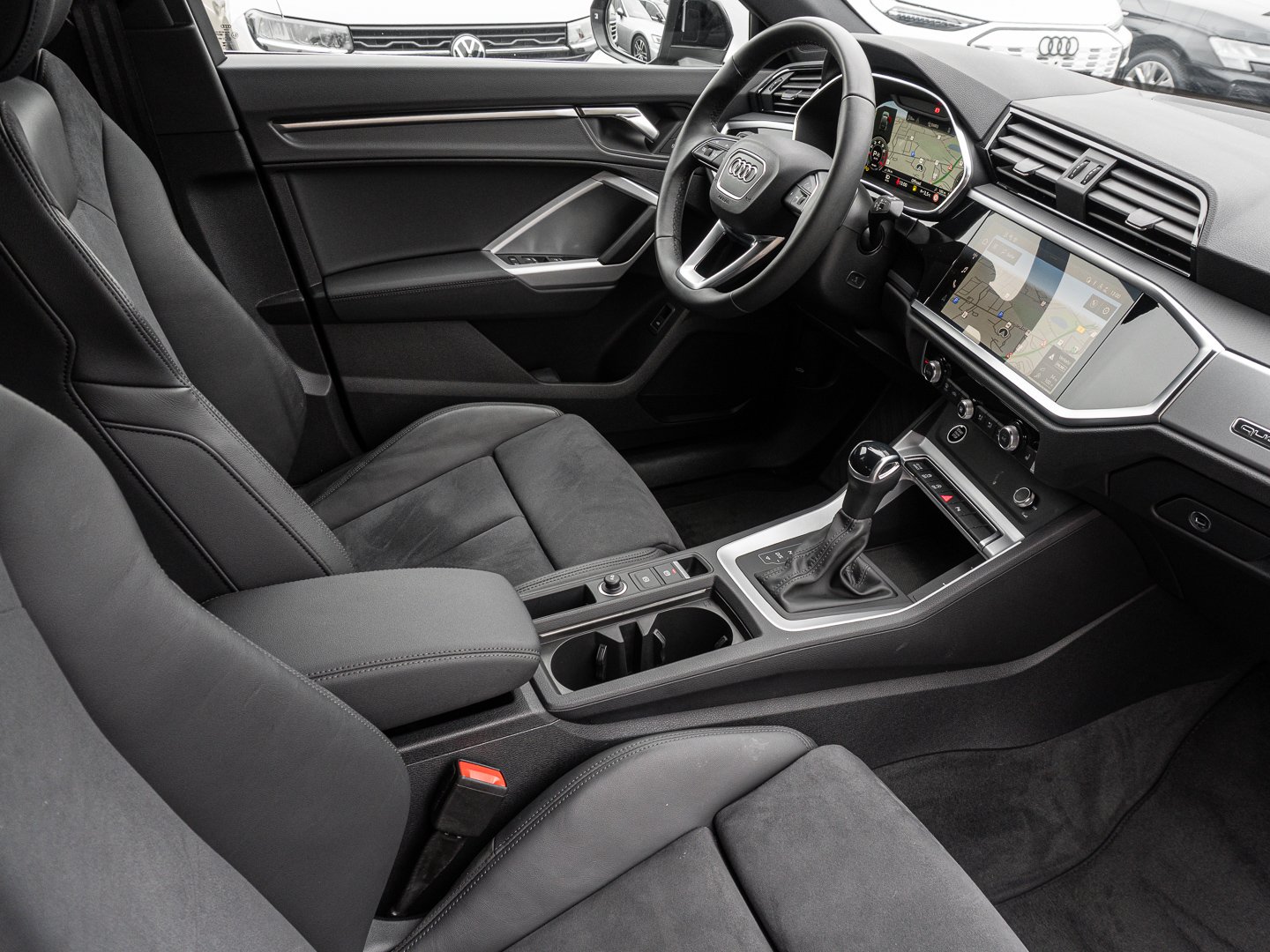 9S9 Audi virtual cockpit plus, 4UF Airbags vorn Beifahrerairbag deaktivierbar, 6E3 Komfortmittelarmlehne vorn, 7P1 4-Wege-Lendenwirbelstütze für die Vordersitze, QJ1 Interieurapplikationen Aluminiumoptik, Q4H Sportsitze vorn, 4L6 Innenspiegel automatisch abblendend rahmenlos, KH5 3-Zonen-Komfortklimaautomatik, 4GF Wärmeschutzverglasung Frontscheibe, 3PB Fahrersitz elektrisch einstellbar, 5KR Rücksitzbank plus mit Mittelarmlehne und Cupholder, 8IT LED-Scheinwerfer, 1XX Lederlenkrad 3-Speichen mit Multifunktion plus und Schaltwippen, QQ1 Ambiente-Lichtpaket, N5J Mikrofaser Dinamica/Kunstleder mono.pur 550-Kombination