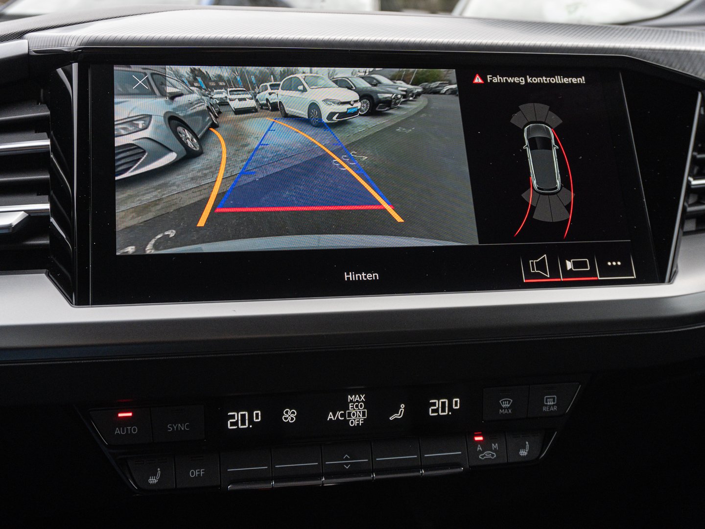 Klimaautomatik, EM1 Müdigkeitserkennung, 6I3 Spurverlassenswarnung, KA2 Rückfahrkamera, 7K1 Reifendruck-Kontrollanzeige, QR9 Kamerabasierte Verkehrszeichenerkennung, 7X2 Einparkhilfe plus, 79H Spurwechselwarnung mit Ausstiegswarnung und Querverkehrassistent hinten, 8T8 Adaptiver Geschwindigkeitsassistent mit Geschwindigkeitsbegrenzer, 99D Assistenzpaket plus, PYL Assistenzpaket plus, 7W1 Audi pre sense basic und pre sense rear