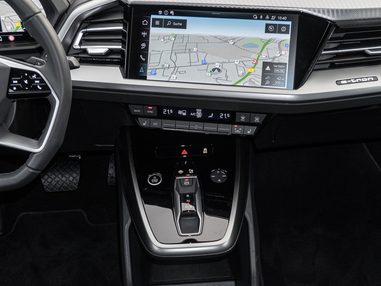 T65 Elektro-Motor Aggr.0EJ.D und 0ET.A, 1J2 Projektionsleuchte in den Außenspiegeln, FP1 FOD Funktionen online verfügbar, LT2 Verkehrszeichenbasierter Geschwindigkeitsbegrenzer, 9I5 Tagfahrlichtschaltung, EV3 Ladesystem mit Haushaltsstecker Typ E/F, GA2 Komfort-Standklimatisierung, beheiz- und anklappbar beidseitig automatisch abblendend, 400V, lang undgerade für das e-tron Ladesystem, oben und unten abgeflacht mit Multifunktion und Schaltwippen, 2FS Doppelspeichen-Sportlederlenkrad, E-Kontakt vorn und hinten, Optisch und akustisch, 4GW Drahtlos beheizbare Klimakomfortverglasung Frontscheibe, 5-W-Speichen-Stern, 8.5 J, 9.0 Jx21, Ausführung 3 Grundmotor ist: T65, C5W Räder Audi Sport, G8P Systemdrehmoment AWD, Platingrau