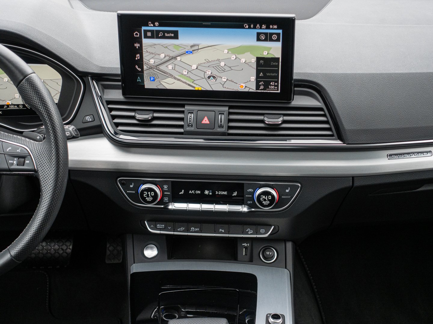4GF Frontscheibe in Wärmeschutz- und Akustikverglasung, Q1D Sportsitze vorn, 6E3 Komfortmittelarmlehne vorn, 7P1 4-Wege-Lendenwirbelstütze für die Vordersitze, L0L Linkslenker, 4L6 Innenspiegel automatisch abblendend, 9AQ 3-Zonen-Komfortklimaautomatik, QQ1 Ambiente-Lichtpaket, VL1 Fußgängerschutzmaßnahmen erweitert, WQS Interieur S line, 8IT LED-Scheinwerfer, 3L4 Vordersitze elektrisch einstellbar mit Memory-Funktion für den Fahrersitz, 3CX Trennnetz, 1XP Lederlenkrad im 3-Speichen-Design mit Multifunktion plus und Lenkradheizung, PV3 Vordersitze elektrisch einstellbar mit Memory-Funktion für den Fahrersitz und die Außenspiegel, N7V Stoff Sequenz/Leder-Kombination, 3U4 Gepäckraumabdeckung