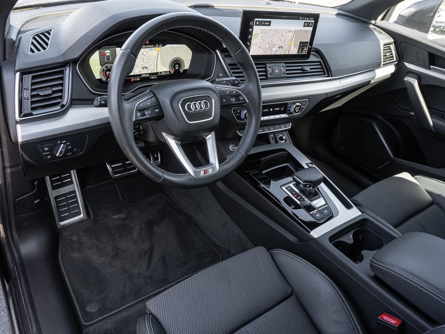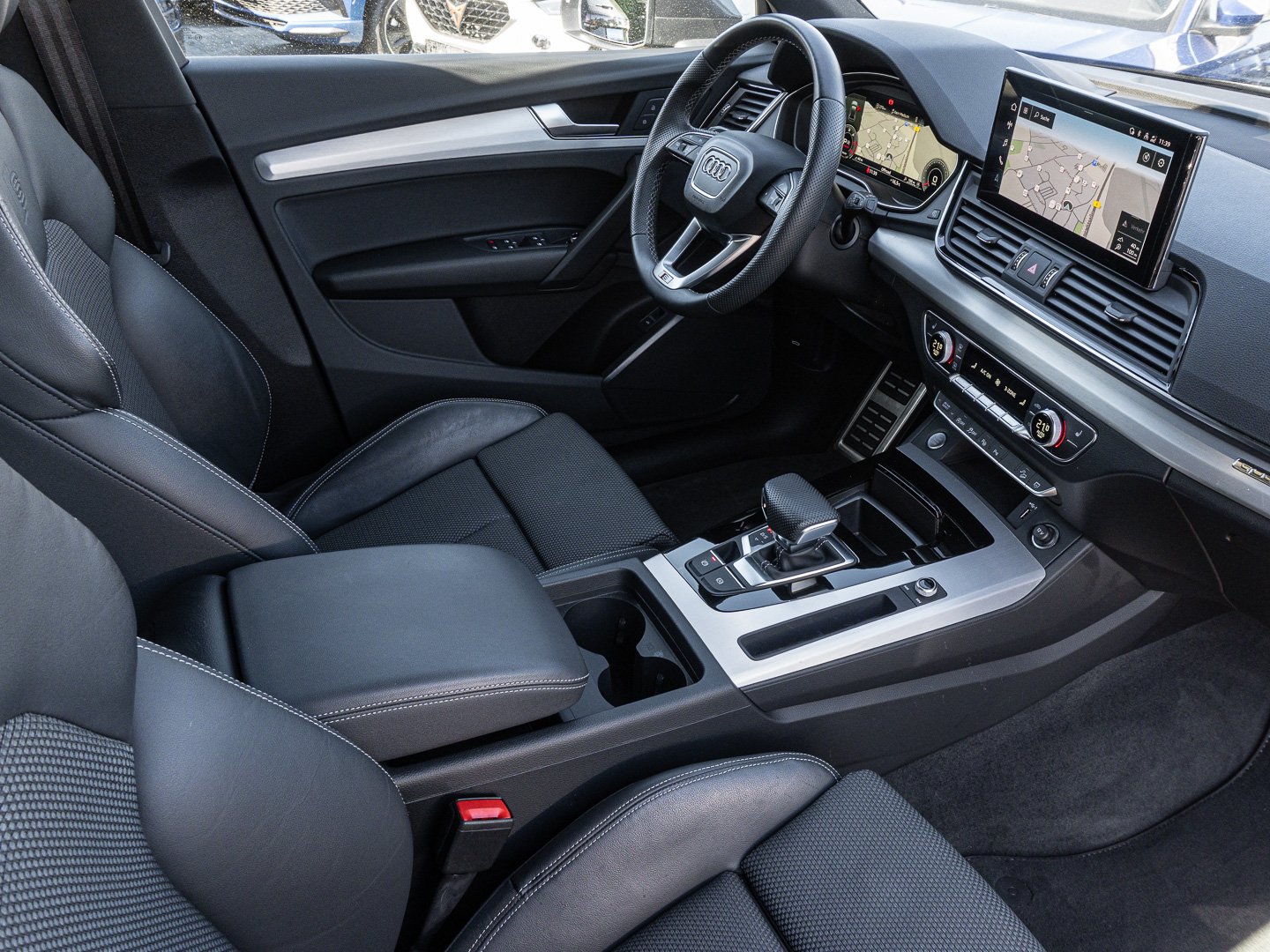 L0L Linkslenker, 9AQ 3-Zonen-Komfortklimaautomatik, 9S9 Audi virtual cockpit plus, Q1D Sportsitze vorn, VL1 Fußgängerschutzmaßnahmen erweitert, 4L6 Innenspiegel automatisch abblendend rahmenlos, 3CX Trennnetz, 3L3 Vordersitze manuell einstellbar, 3NT Rücksitzlehne geteilt umklappbar, WQS Interieur S line, 4GF Frontscheibe in Wärmeschutz- und Akustikverglasung, 6E1 Mittelarmlehne vorn, 4KC Wärmeschutzverglasung, N7V Stoff Sequenz/Leder-Kombination, 1XW Lederlenkrad 3-Speichen-Design mit Multifunktion plus, PAO Abwahlpaket Audi phone box