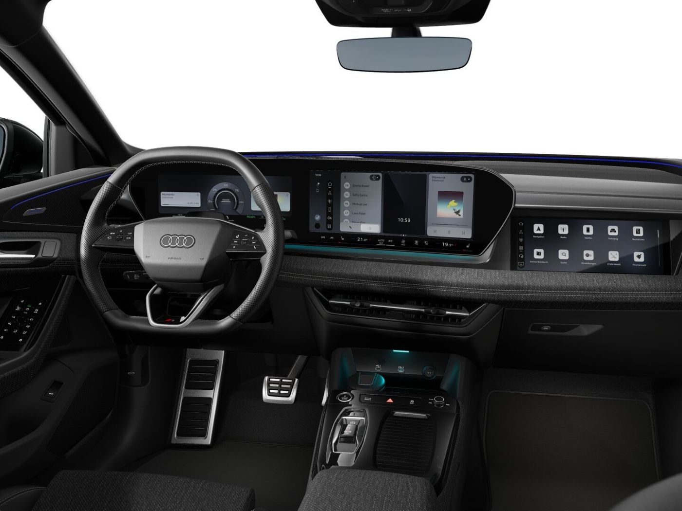 Stoff, L0L Linkslenker, 4L6 Innenspiegel automatisch abblendend, 3L5 Vordersitze elektrisch einstellbar, 9S9 Audi virtual cockpit plus, Q1D Sportsitze vorn, 6E3 Komfortmittelarmlehne vorn, 7P1 4-Wege-Lendenwirbelstütze für die Vordersitze, IU6 Audi Application Store und Smartphone-Interface, QJ1 Interieurapplikationen Aluminiumoptik, AI9 Lenkradheizung, 9AU 3-Zonen-Komfortklimaautomatik, PV3 Vordersitze elektrisch einstellbar mit Memory-Funktion für den Fahrersitz und die Außenspiegel, QQ4 Ambiente-Lichtpaket plus, 3NT Rücksitzbank ungeteilt Lehne geteilt umlegbar (dreiteilig) mit Mittelarmlehne, 4UI Airbags vorn Beifahrerairbag deaktivierbar