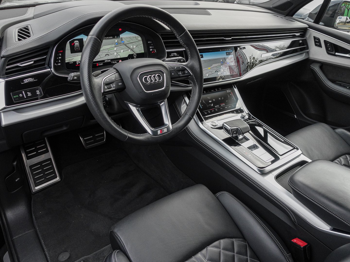 9S9 Audi virtual cockpit plus, 4L6 Innenspiegel automatisch abblendend rahmenlos, 7P1 4-Wege-Lendenwirbelstütze für die Vordersitze, L0L Linkslenker, QQ2 Ambiente-Lichtpaket plus, VL1 Fußgängerschutzmaßnahmen erweitert, N0Q Leder Valcona mit S-Prägung und Rautensteppung, 4D8 Sitzbelüftung und Massagefunktion vorn, 9AE 4-Zonen-Komfortklimaautomatik, Q4Q Sportsitze plus vorn, WQS S line Sportpaket, 3CX Trennnetz, 6E6 Komfortmittelarmlehne vorn, 3PN Vordersitze elektrisch einstellbar mit Memory-Funktion, 1XP Lederlenkrad im 3-Speichen-Design mit Multifunktion plus und Lenkradheizung, PV6 Vordersitze elektrisch einstellbar inklusive Memory-Funktion für beide Vordersitze, QL5 Privacy Verglasung (Scheiben abgedunkelt), 4GL Frontscheibe in Klimakomfort- und Akustikverglasung