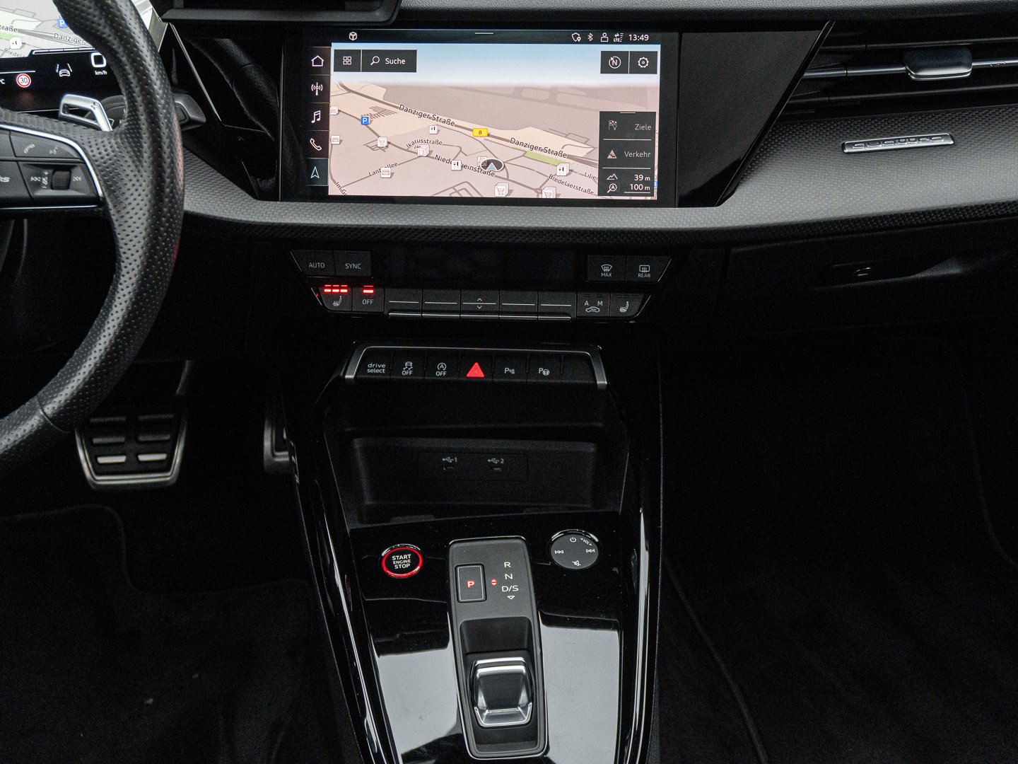 Traktionskontrolle, 6C2 Seitenairbags vorn mit Kopfairbagsystem und Interaktionsairbag vorn, 3A5 Kindersitzbefestigung ISOFIX vorn Top Tether und i-Size für die äußeren Fondsitze, 4K6 Komfortschlüssel mit Safelock, PG3 Komfortschlüssel in Verbindung mit Diebstahlwarnanlage, 7AL Diebstahlwarnanlage, Elektronische Wegfahrsperre, 2F1 Audi connect Schlüssel, ASR (Antriebsschlupfregelung), PCE Assistenzpaket mit MMI Navigation plus mit MMI touch, UB9 Dämpfung hinten Sportausführung