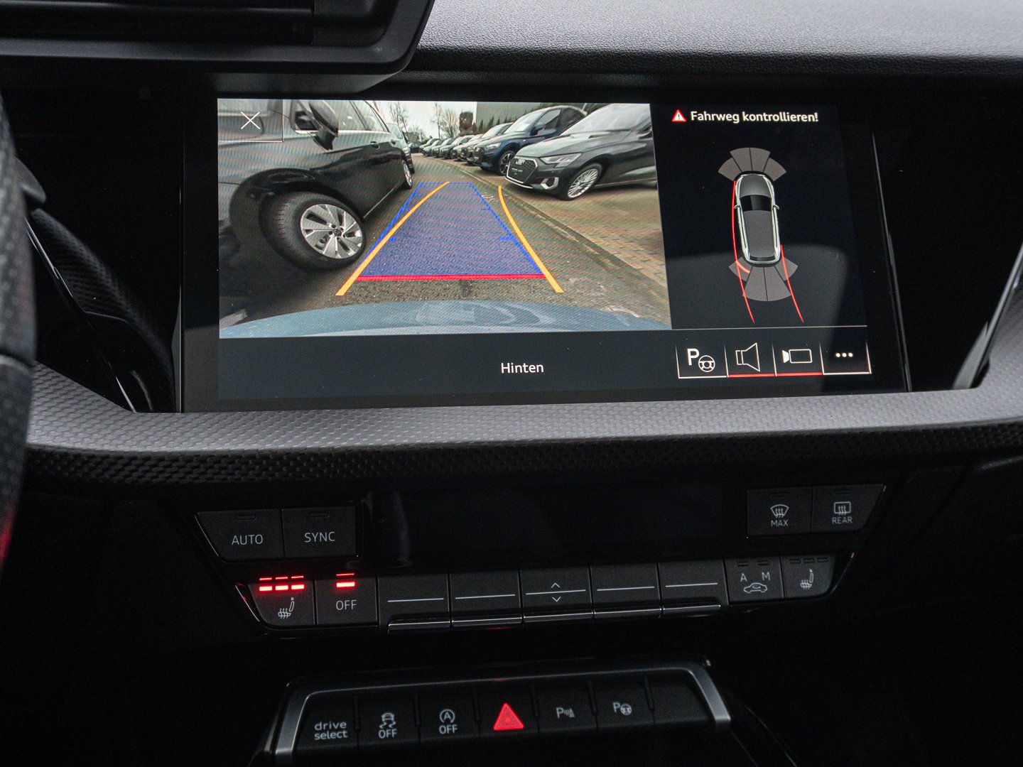 Klimaautomatik, KA2 Rückfahrkamera, 7K1 Reifendruck-Kontrollanzeige, 6I6 Adaptiver Fahrassistent mit Notfallassistent, 8T8 Adaptiver Geschwindigkeitsassistent, UH2 Halteassistent, 7W1 Audi pre sense basic, 7X5 Parkassistent mit Einparkhilfe plus, 79H Spurwechselwarnung mit Ausstiegswarnung und Querverkehrassistent hinten, QR9 kamerabasierende Verkehrszeichenerkennung, 8JT abgedunkelte Matrix-LED-Scheinwerfer mit dynamischer Lichtinszenierung und dynamischem Blinklicht
