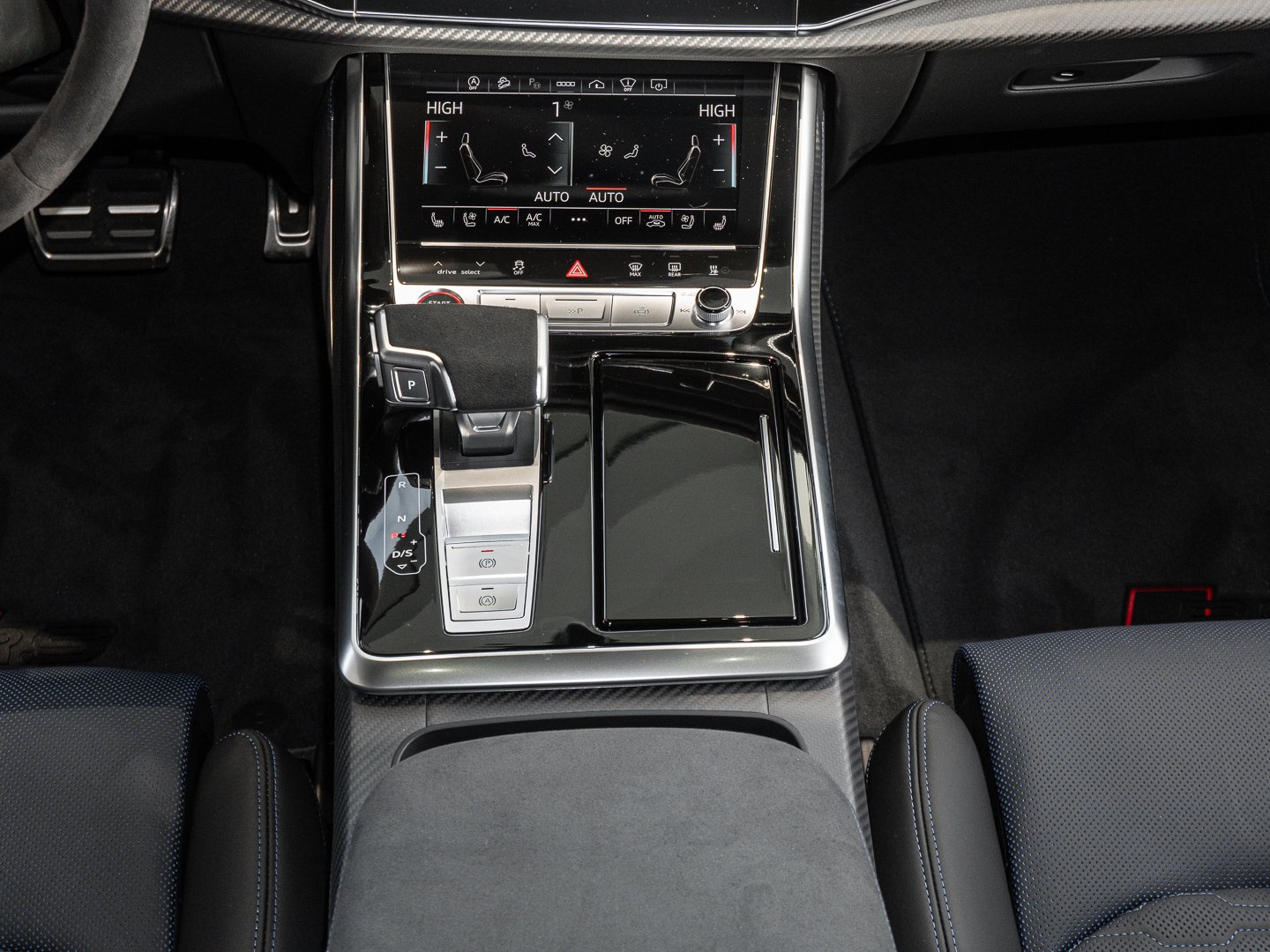 1A2 Kraftstoffsystem Otto-Direkteinspritzung (FSI), UE8 USB-Anschlüsse mit Ladefunktion in erster und zweiter Sitzreihe, GP1 Fahrzeuge mit besonderen Produktaufwertungsmaßnahmen, 8G5 HD-Matrix-Funktion, 8SC Digitale OLED-Heckleuchten, FT1 Remote Parkassistent plus, GZ2 Elektrische Zuziehhilfe für Türen, 5XF Sonnenblenden vorn verschiebbar, GB1 Mobilfunk-Signalverstärker Typ 1, VW0 Akustikverglasung Tür- und Seitenscheiben, PC8 RS-Keramikbremsanlage mit Bremssätteln blau, 0JN Gewichtsklasse Vorderachse Gewichtsbereich 13, 1ZH RS-Keramikbremse vorn mit Bremssätteln blau, 2EG RS-Keramikbremse hinten mit Bremssätteln blau, 3B3 Kindersitzbefestigung ISOFIX-konform Top Tether für Rücksitzbank, 3G4 Kindersitzbefestigung ISOFIX-konform für den Beifahrersitz, 3Y6 Sonnenschutzrollo elektrisch für die hinteren Seitenscheiben manuell für die Heckscheibe, 6NS Dachhimmel Mikrofaser Dinamica schwarz, 7HN Instrumententafel-Oberseite Leder und Interieurelemente unten mit Bedienelementen Microfaser Dinamica, 9TD Warnleuchten Türen vorn und Rückstrahler Türen hinten, FZ6 N.N.N. Ausführung 6, N5M Lederausstattung Valcona perforiert mit Wabensteppung, PEI RS-Designpaket blau plus, 64J Räder 5-Y-Speichen kontrastschwarz matt 105Jx23 Reifen 295/35 R23, 6FI Außenspiegelgehäuse Carbon matt, 6Y7 Anhebung der Höchstgeschwindigkeit bis zu 305 km/h, DS6 8-Zylinder-Ottomotor 40L/471 KW FSI Grundmotor ist: T1M, FY7 Singleframe-Maske Carbon matt, PQA Optikpaket Carbon matt/ schwarz, T1M 8 Zyl.Ottomotor 40L Aggr. 0P2.A