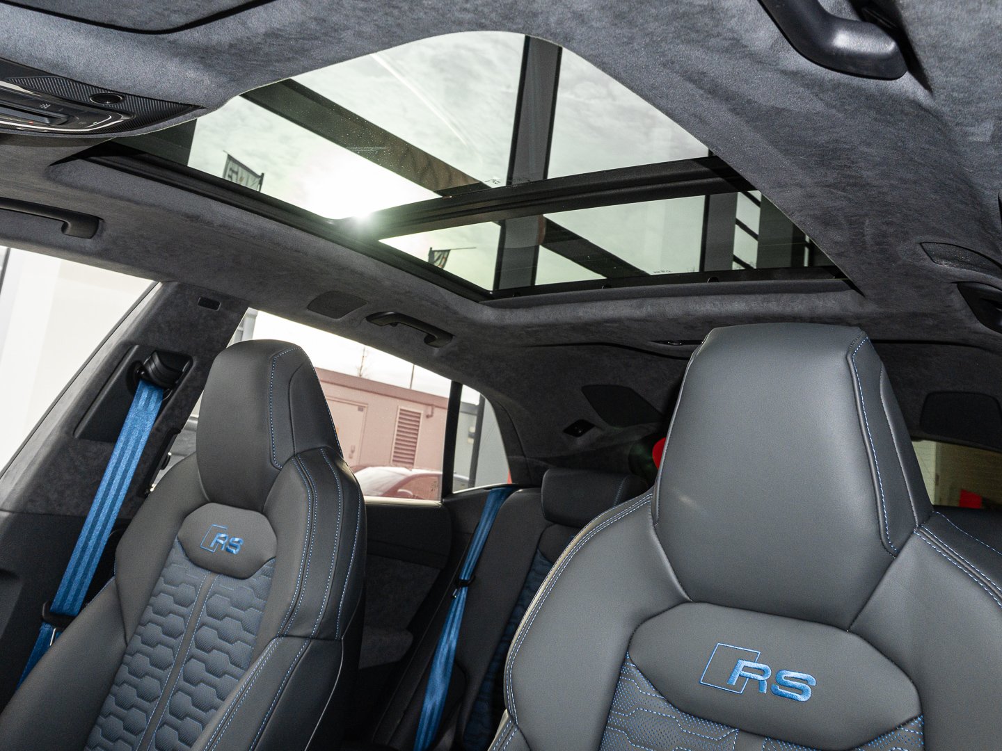 Stoff, L0L Linkslenker, 4UF Airbags vorn Beifahrerairbag deaktivierbar, 7P1 4-Wege-Lendenwirbelstütze für die Vordersitze, QQ2 Ambiente-Lichtpaket plus, 4L6 Innenspiegel automatisch abblendend rahmenlos, 4D8 Sitzbelüftung und Massagefunktion vorn, 9AE 4-Zonen-Komfortklimaautomatik, Q4Q Sportsitze plus vorn, 1XP Lederlenkrad 3-Speichen mit Multifunktion Schaltwippen und Lenkradheizung, 3CX Trennnetz, 6E6 Komfortmittelarmlehne vorn, IU4 Audi Application Store und Smartphone-Interface, 7J3 Audi virtual cockpit plus mit zusätzlichem RS-Layout, 4GF Wärmeschutzverglasung Frontscheibe, 3PN Vordersitze elektrisch einstellbar mit Memory-Funktion, 0P6 RS-Sportabgasanlage, 0TP Fußmatten mit RS-Schriftzug