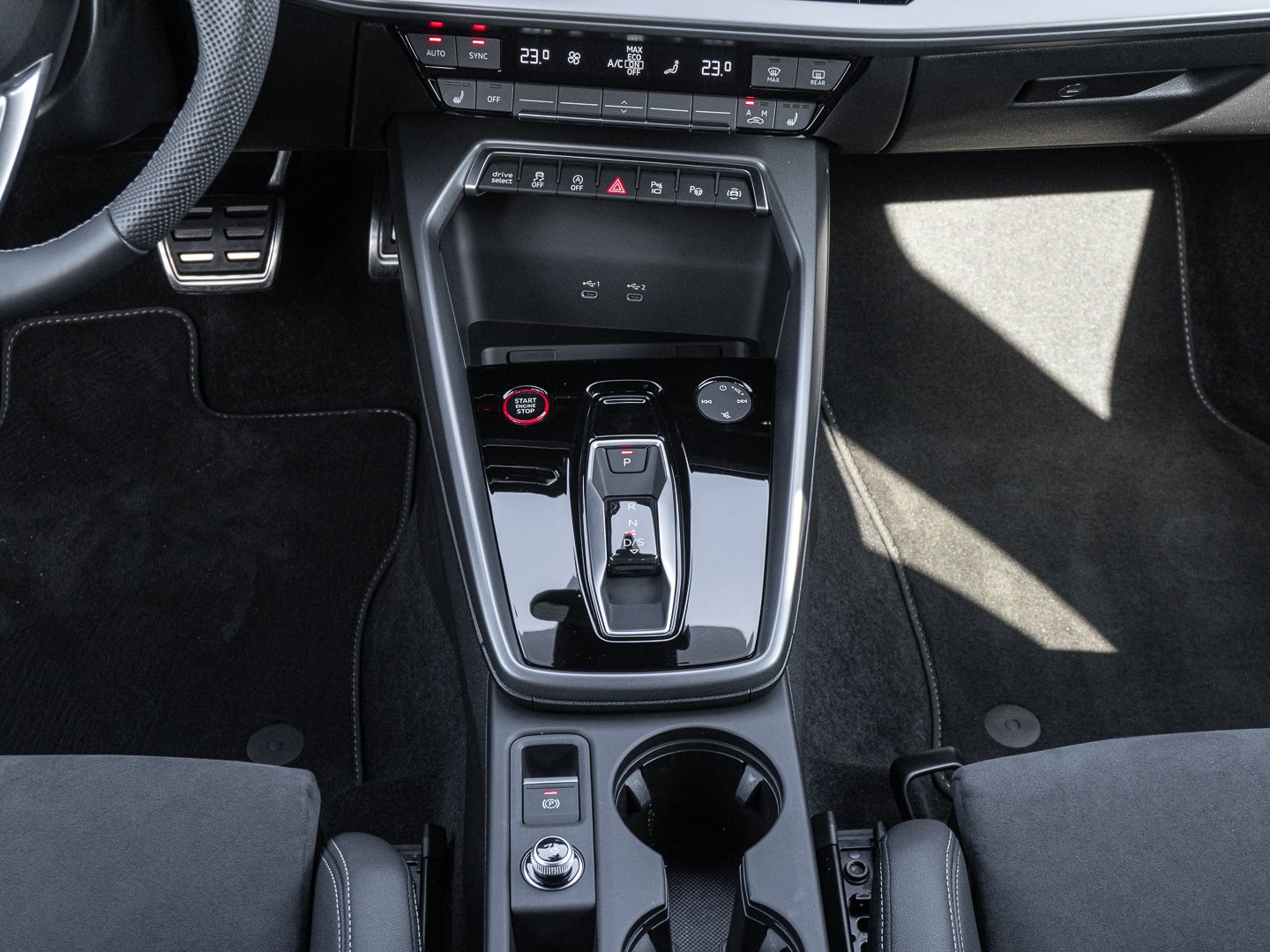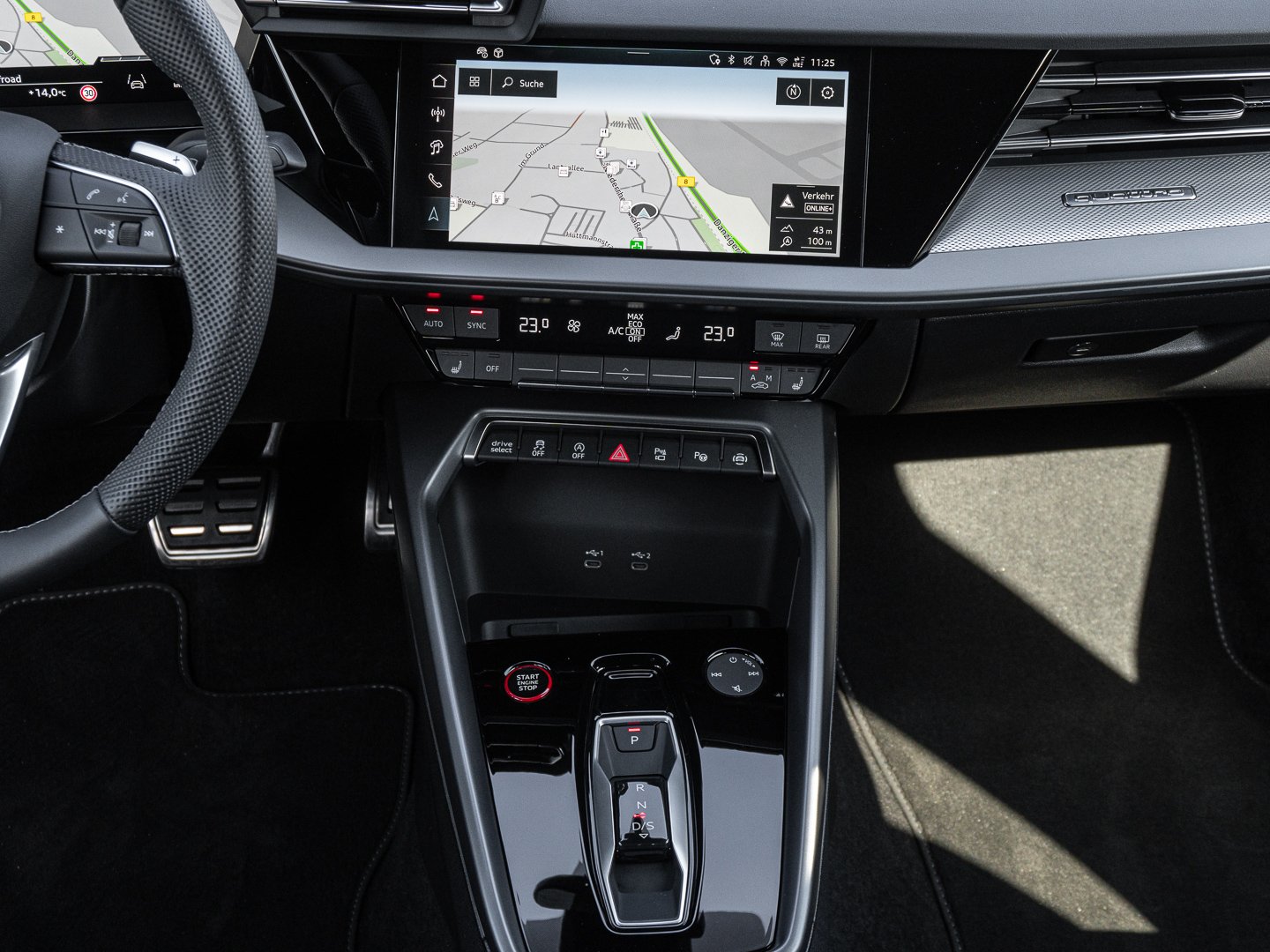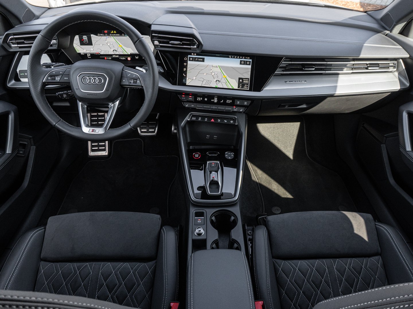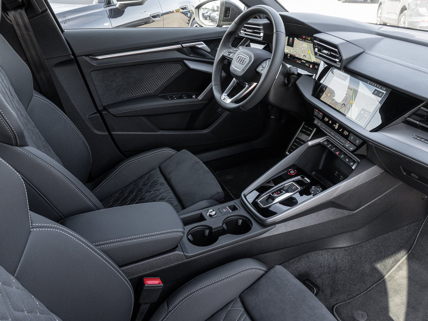 L0L Linkslenker, 9S9 Audi virtual cockpit plus, Q1D Sportsitze vorn, 4UF Airbags vorn Beifahrerairbag deaktivierbar, 7P1 4-Wege-Lendenwirbelstütze für die Vordersitze, QJ1 Interieurapplikationen Aluminiumoptik, IU4 Audi Application Store und Smartphone-Interface, 6E3 Mittelarmlehne vorn, A8F Sport-Ausstattung, KH5 3-Zonen-Komfortklimaautomatik, 3NT Rücksitzlehne geteilt umklappbar, 3PB Fahrersitz elektrisch einstellbar, 1XX Lederlenkrad 3-Speichen mit Multifunktion plus und Schaltwippen, N5J Mikrofaser Dinamica/Kunstleder mono.pur 550-Kombination