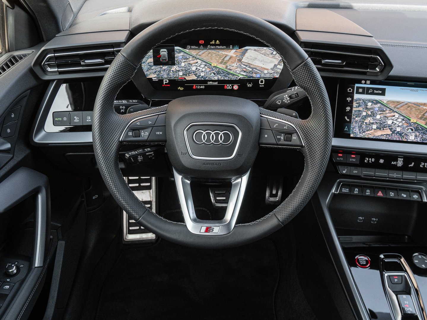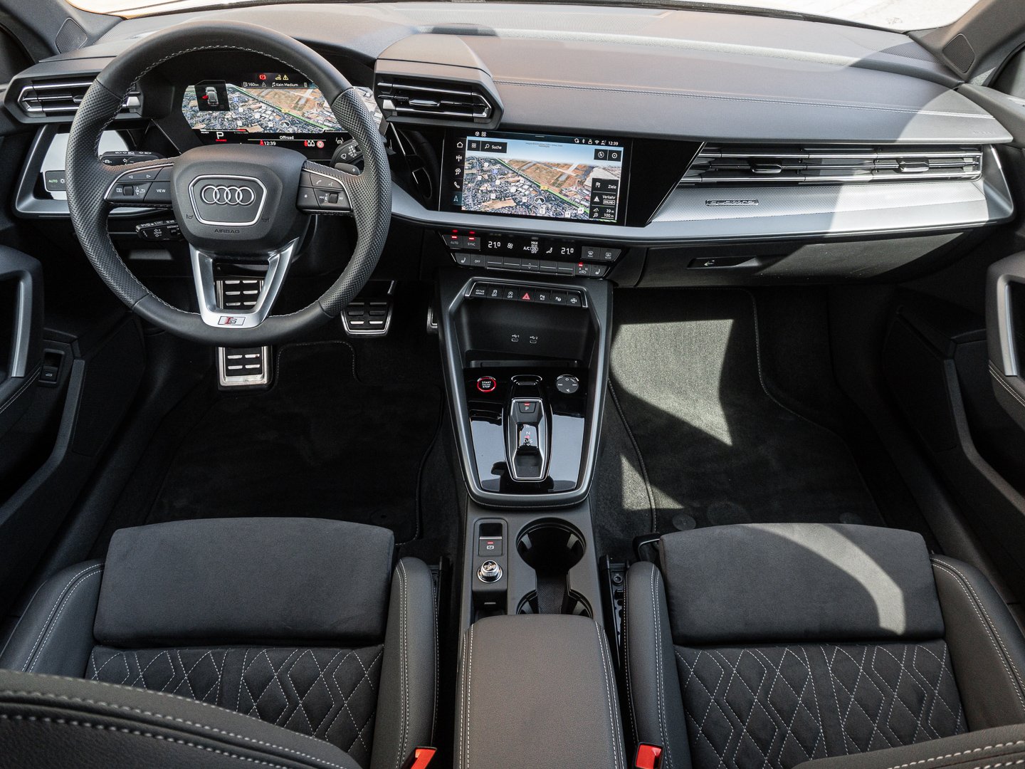 L0L Linkslenker, 9S9 Audi virtual cockpit plus, Q1D Sportsitze vorn, 4UF Airbags vorn Beifahrerairbag deaktivierbar, 7P1 4-Wege-Lendenwirbelstütze für die Vordersitze, QJ1 Interieurapplikationen Aluminiumoptik, IU4 Audi Application Store und Smartphone-Interface, 6E3 Mittelarmlehne vorn, A8F Sport-Ausstattung, KH5 3-Zonen-Komfortklimaautomatik, 3NT Rücksitzlehne geteilt umklappbar, 3PB Fahrersitz elektrisch einstellbar, 1XX Lederlenkrad 3-Speichen mit Multifunktion plus und Schaltwippen, N5J Mikrofaser Dinamica/Kunstleder mono.pur 550-Kombination