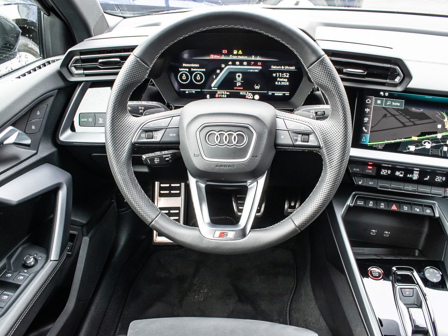 L0L Linkslenker, 9S9 Audi virtual cockpit plus, Q1D Sportsitze vorn, 4UF Airbags vorn Beifahrerairbag deaktivierbar, 7P1 4-Wege-Lendenwirbelstütze für die Vordersitze, QJ1 Interieurapplikationen Aluminiumoptik, IU4 Audi Application Store und Smartphone-Interface, 6E3 Mittelarmlehne vorn, A8F Sport-Ausstattung, KH5 3-Zonen-Komfortklimaautomatik, 3NT Rücksitzlehne geteilt umklappbar, 3PB Fahrersitz elektrisch einstellbar, 1XX Lederlenkrad 3-Speichen mit Multifunktion plus und Schaltwippen, N5J Mikrofaser Dinamica/Kunstleder mono.pur 550-Kombination