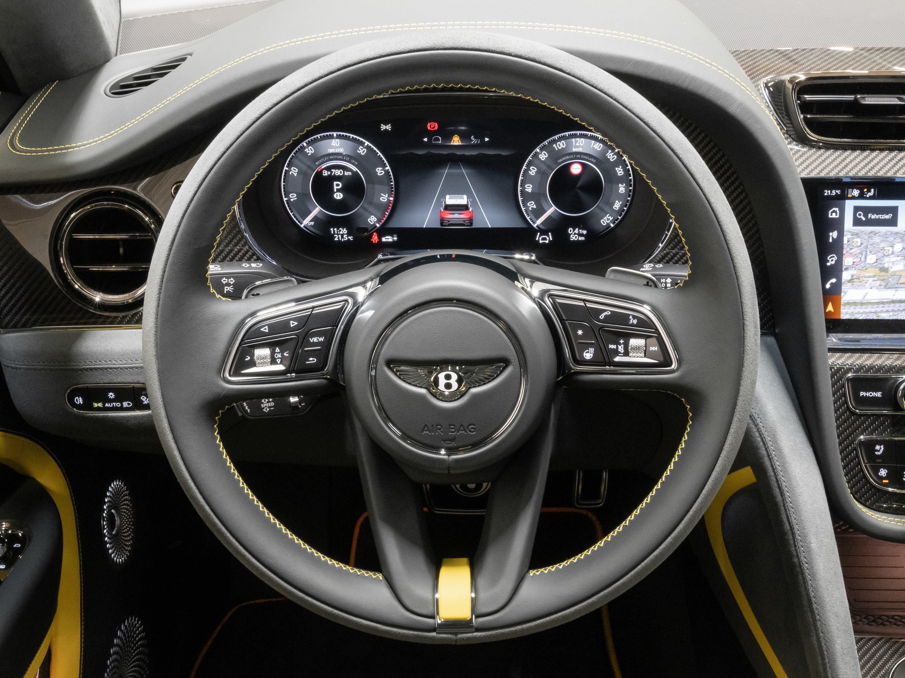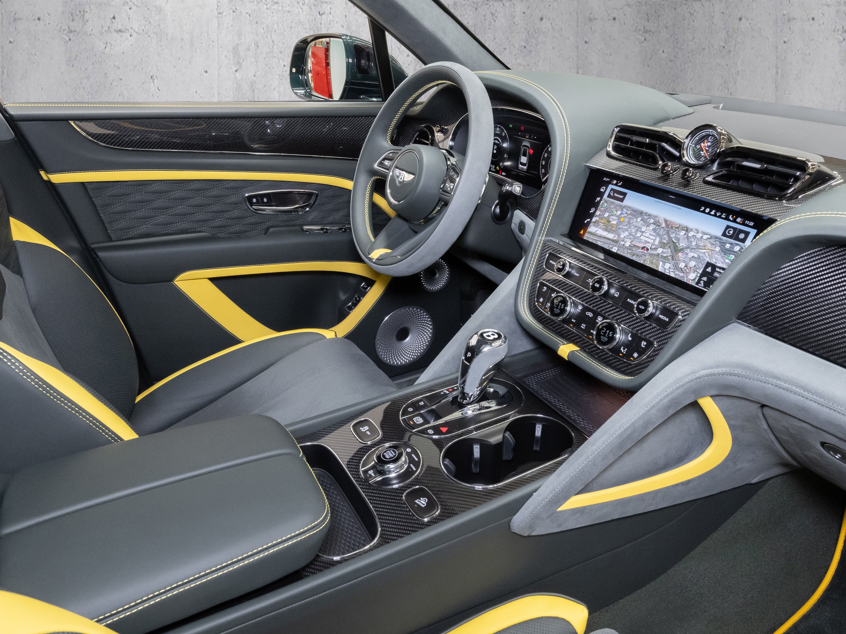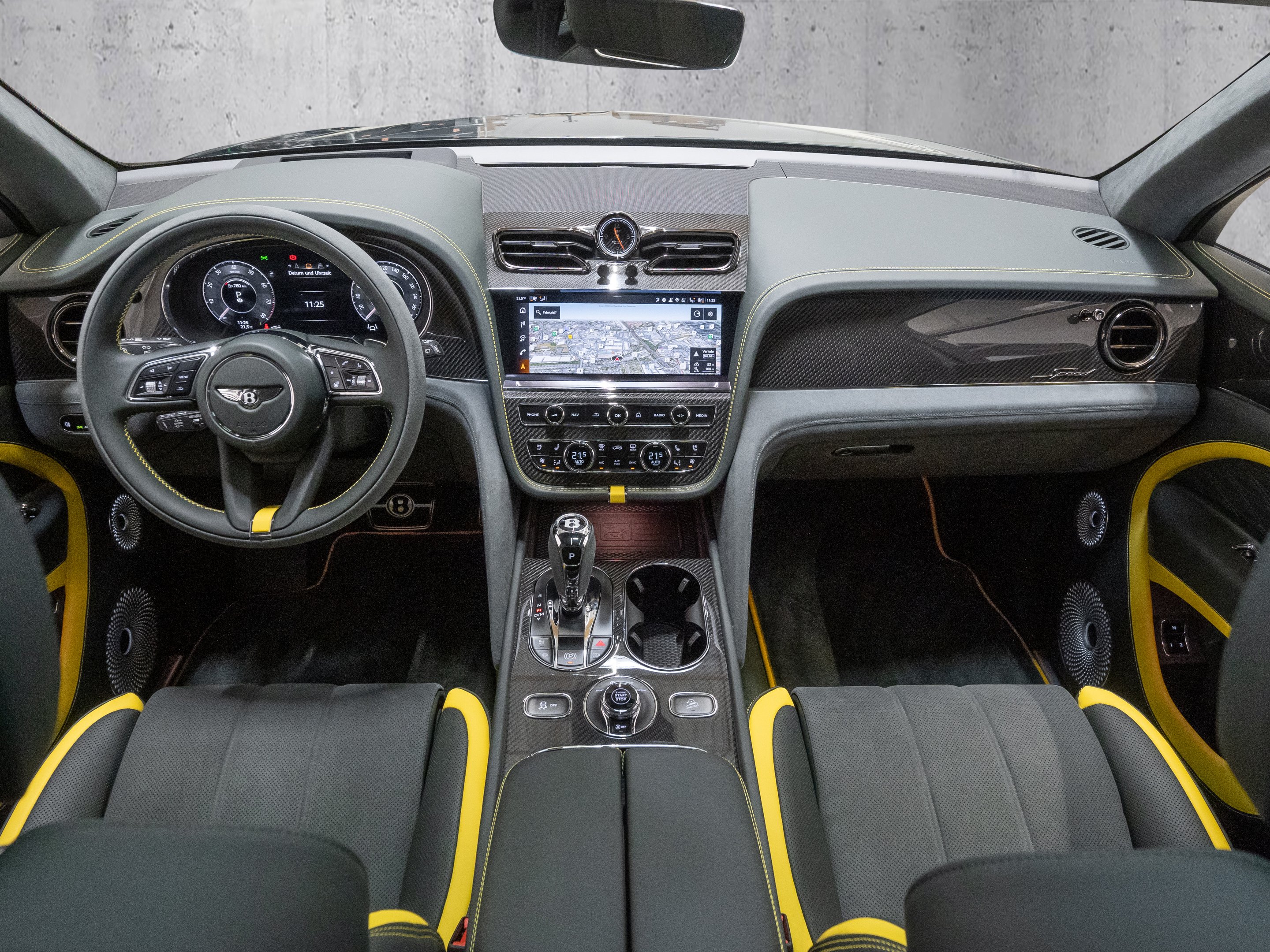 Aussenspiegel el. verstellbar und beheizbar, 360 Grad Kamera, Memorysitze (Fahrer+Beifahrer), Contrast Binding to Carpet Overmats, Mulliner Range - Solid and Metallic, LED Welcome Lamps, Touring Specification, Rear Acoustic Privacy Glass, Deep Pile Overmats to Front and Rear, Mood Lighting, Parking Heater, Mulliner Colour Specification, Main Hide: Beluga, Dark Chrome Interior Specification, Accent Colour: Cyber Yellow, Bang & Olufsen for Bentley, 4 + 1 Seat Configuration, Model Year 2026, Titanium Sports Exhaust, Paint: Viridian, Bentayga Blackline Specification, Bentayga Styling Specification with Accent, Carbon Fibre Fascia to Centre Console and Door Waistrails, Dynamic Specification with 23'' Black Painted and Bright Machiened Wheels, Self Levelling Wheel Badgee - by Mulliner