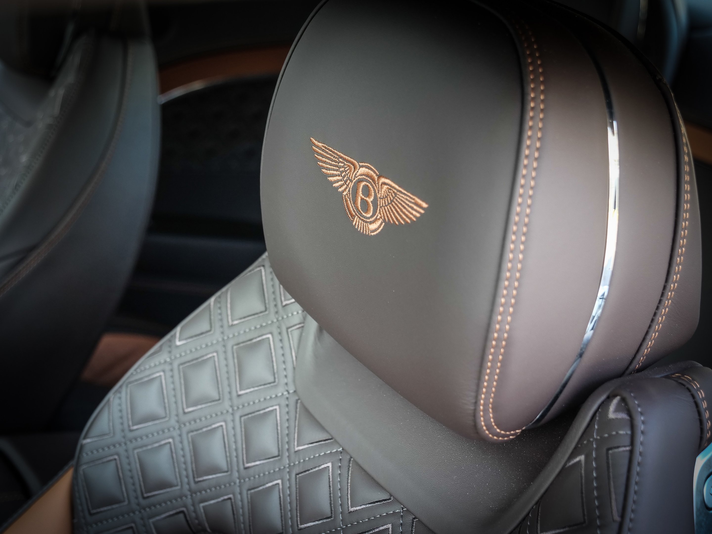 LED Welcome Lamps, Touring Specification, Parking Heater, Front Seat Comfort Specification, Panoramic Glass Roof, Bang & Olufsen for Bentley, Bentley Rotating Display, Sports Pedals, Model Year 2023, Chrome Pinstripe to Fascia and Door Waistrails, Colour Specification, Deep Pile Overmats - Front, Diamond Knurling, Main Paint - Titan Grey, Main Trim - SaddleLeather Specification with Diamond Quilting, Heated Duo-Tone 3 Spoke Hide Trimmed Steering Wheel, Styling Specification, 22\\" Ten Spoke Sports Wheel - Black Painted