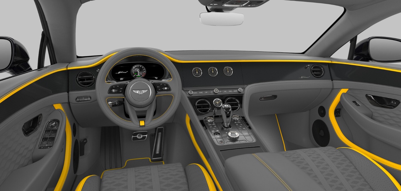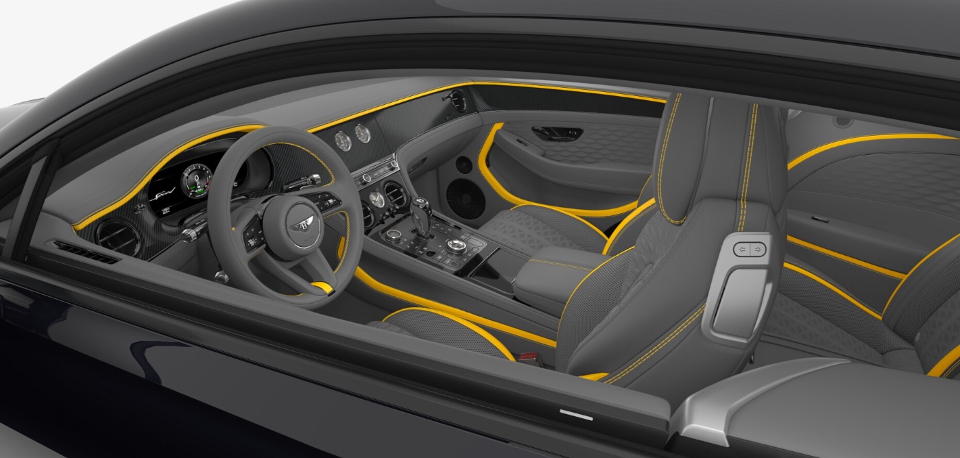 Aussenspiegel el. verstellbar und beheizbar, 360 Grad Kamera, Memorysitze (Fahrer+Beifahrer), Touring Specification, Mulliner Colour Specification, Bentley Self Levelling Wheel Badge, Bentley Wings Welcome Lamps, Front Seat Comfort Specification, Continental Blackline Specification, Bang & Olufsen for Bentley, Bentley Rotating Display, 22'' Ten Swept Spoke Wheel - Black Painted, Single Finish - High Gloss Carbon Fibre, Carbon Ceramic Brakes with Black Painted Calipers, Contrast Binding to Carpet Overmats - Contrast, Mood Lighting Specification, Model Year 2026, Deep Pile Overmats - Front, Secondary Hide: Gravity Grey, Titanium Sports Exhaust, Paint: Onyx, Main Hide: Cyber Yellow