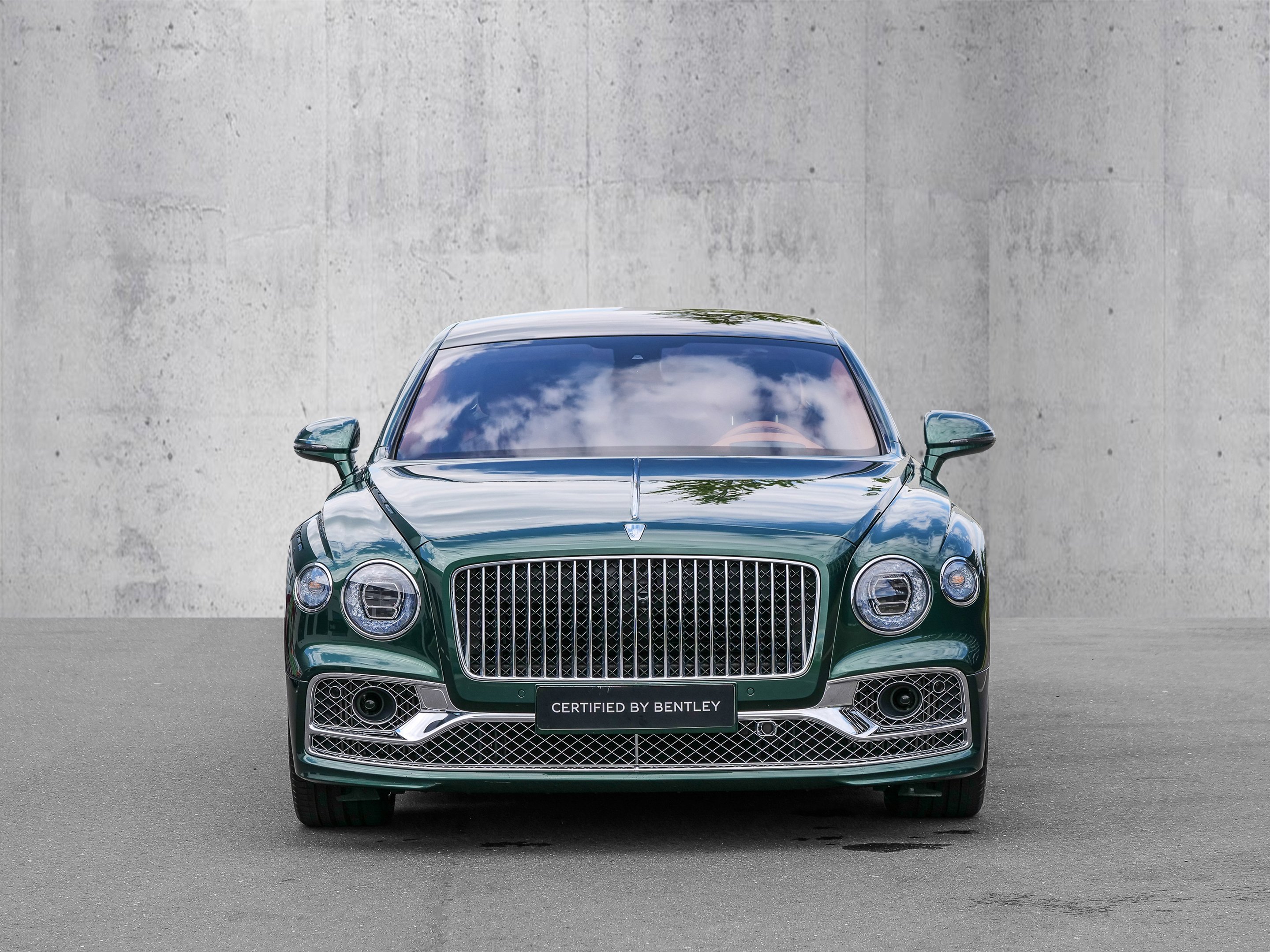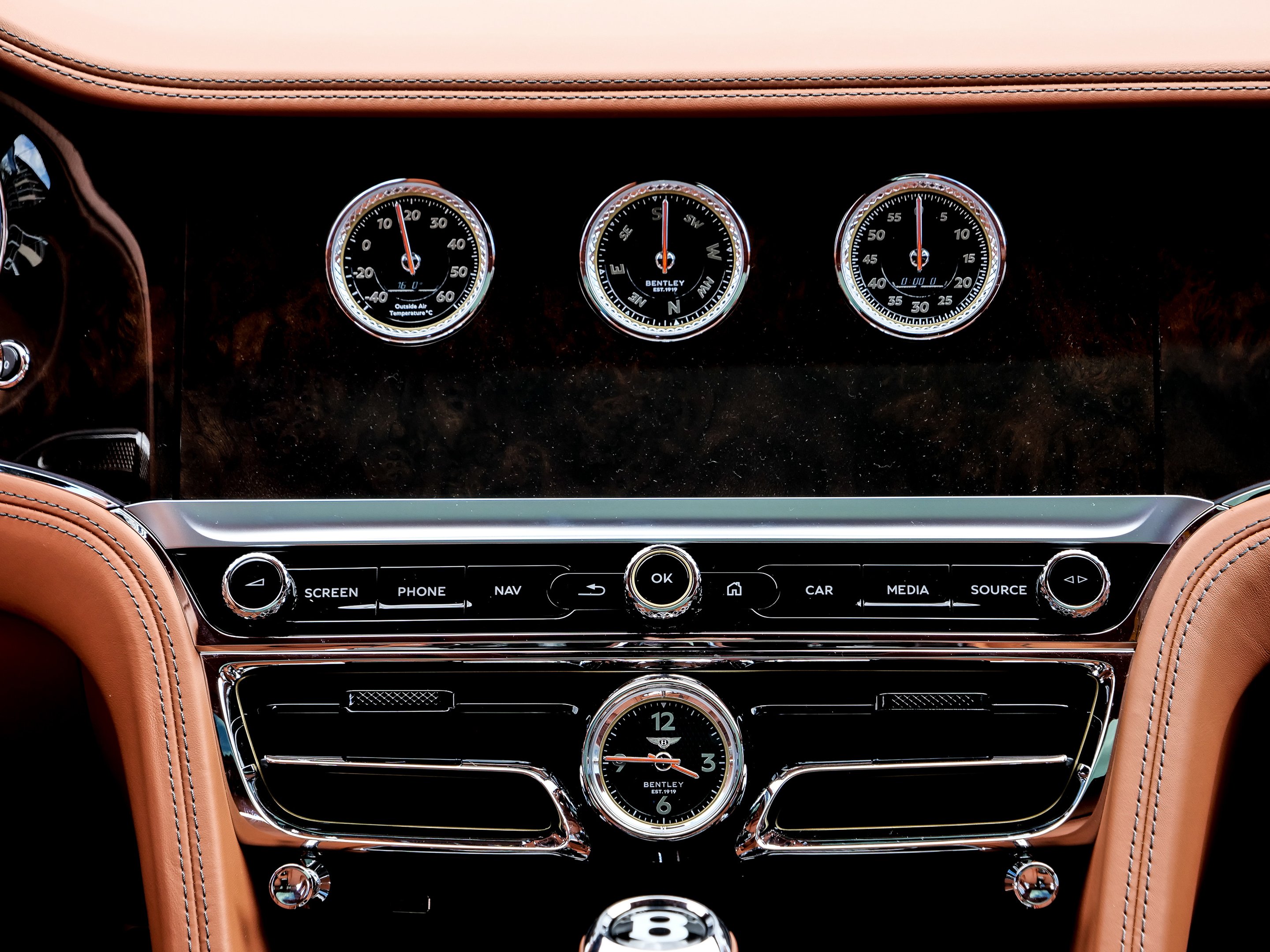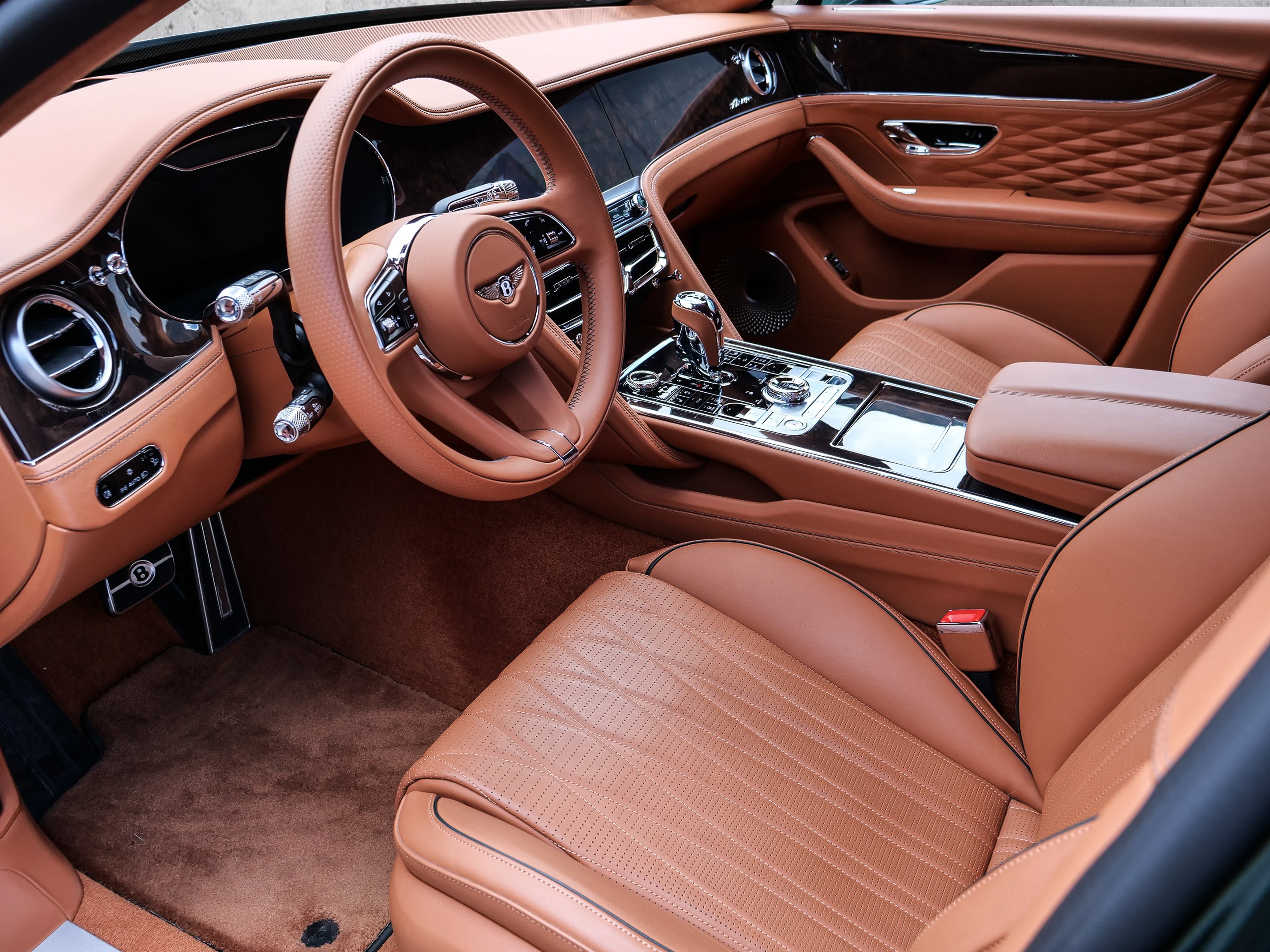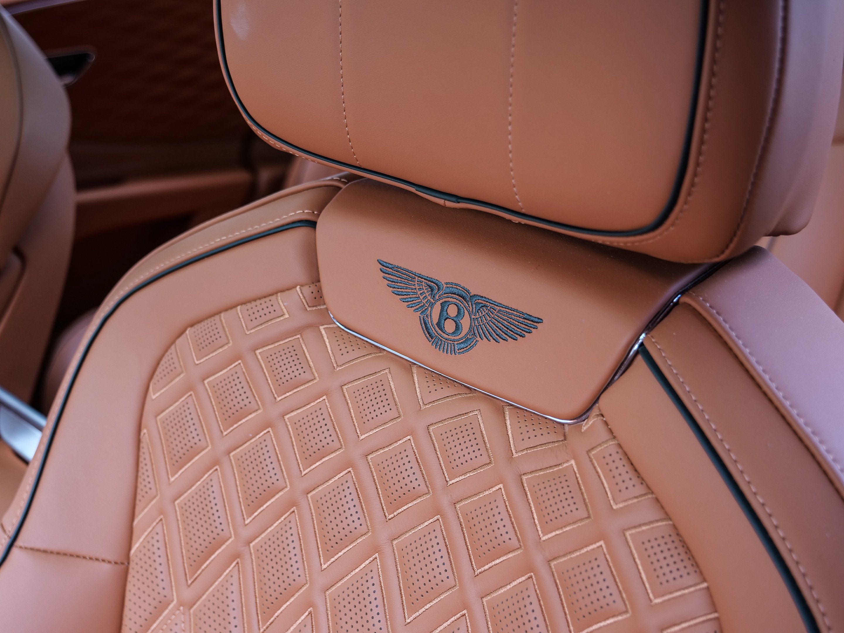 LED Welcome Lamps, Heated Windshield, Bang & Olufsen for Bentley, Bentley Rotating Display, Model Year 2024, Single Tone, Indented Hide Trimmed Steering Wheel, Self Levelling Wheel Badge - by Mulliner, Single Finish - Dark Stained Burr Walnut, Main Paint: Verdant, Main Hide: Newmarket Tan, Illuminated Flying B Radiator Mascot - Bright Polished Stainless Steel
