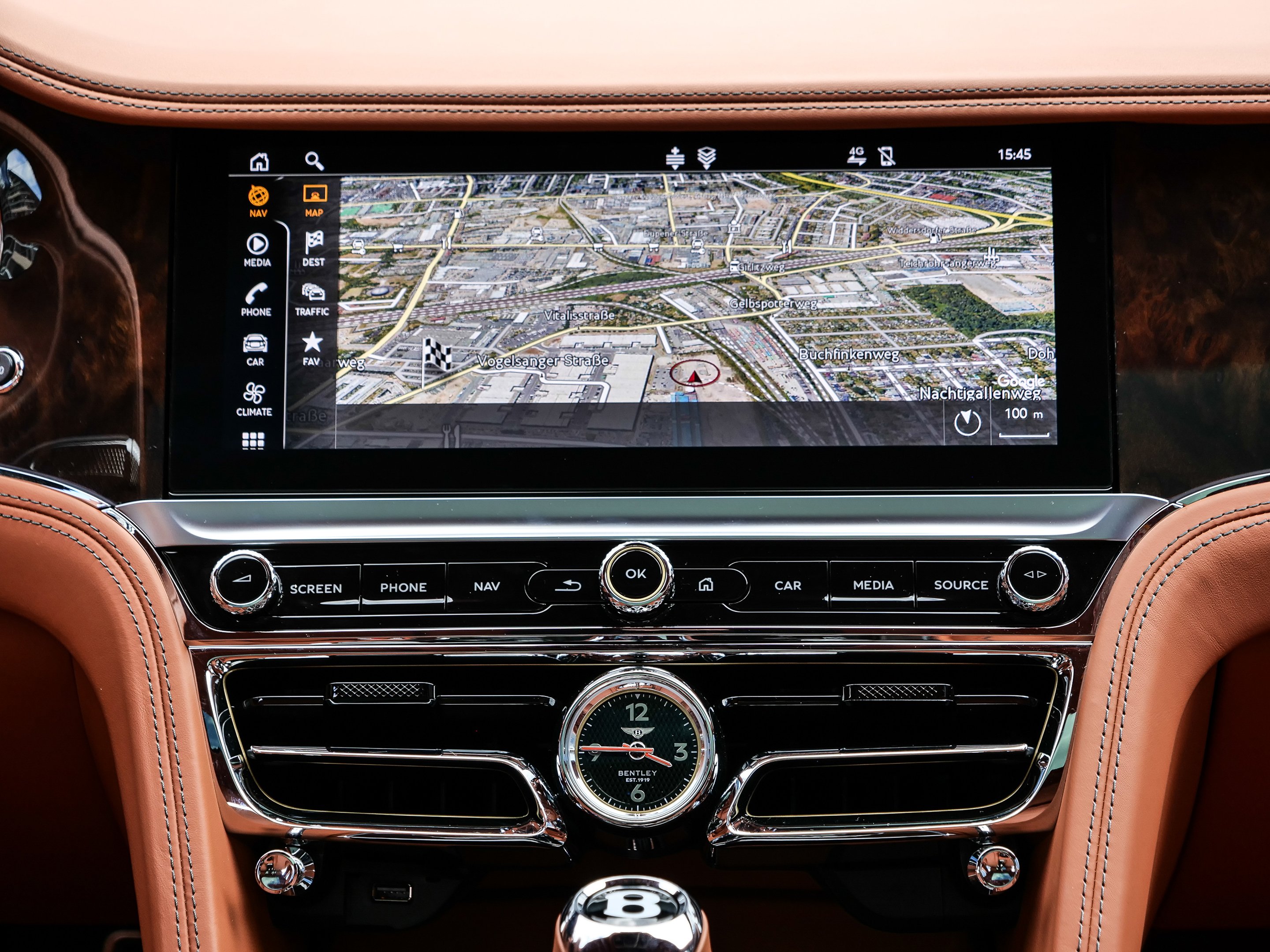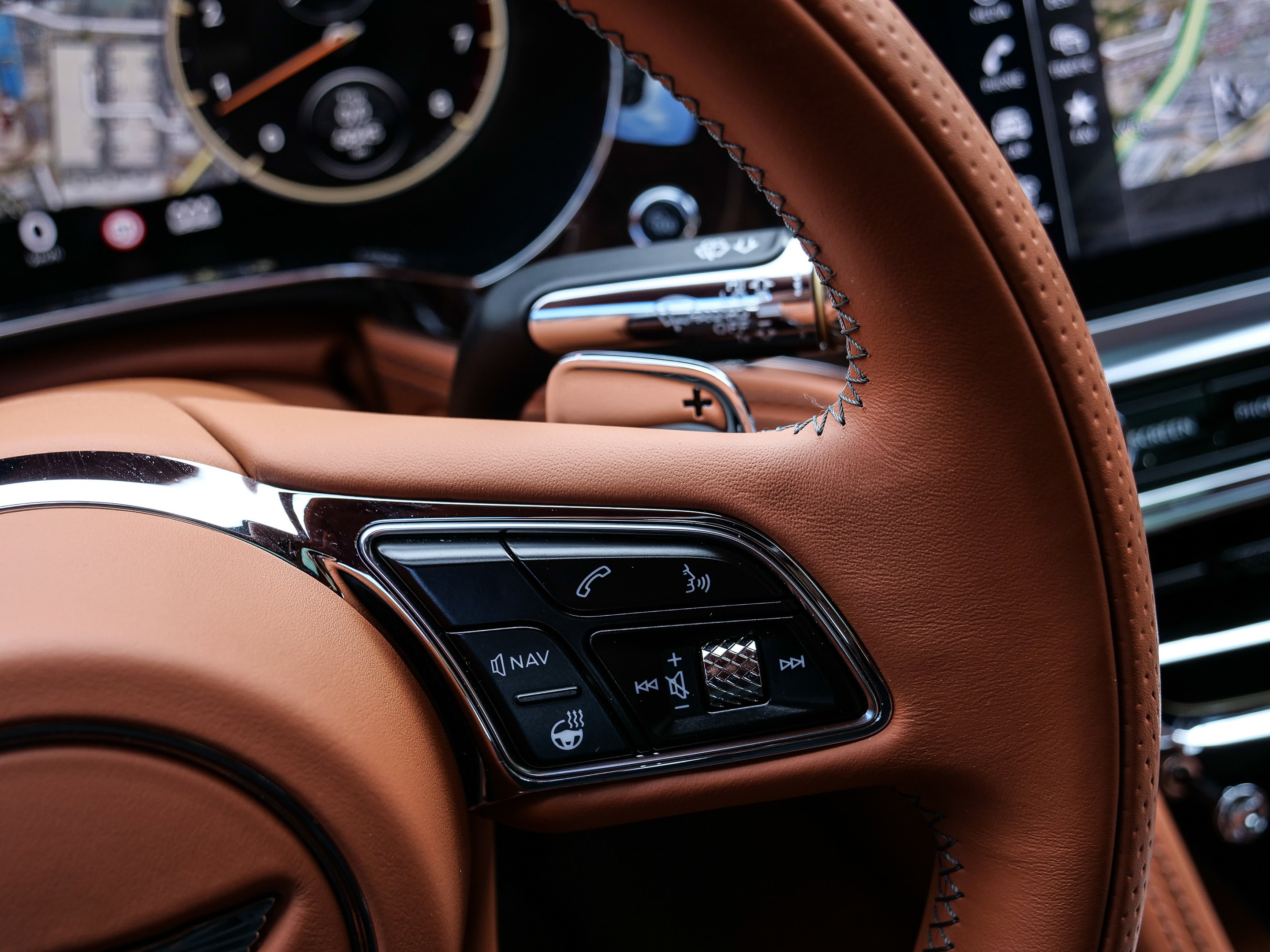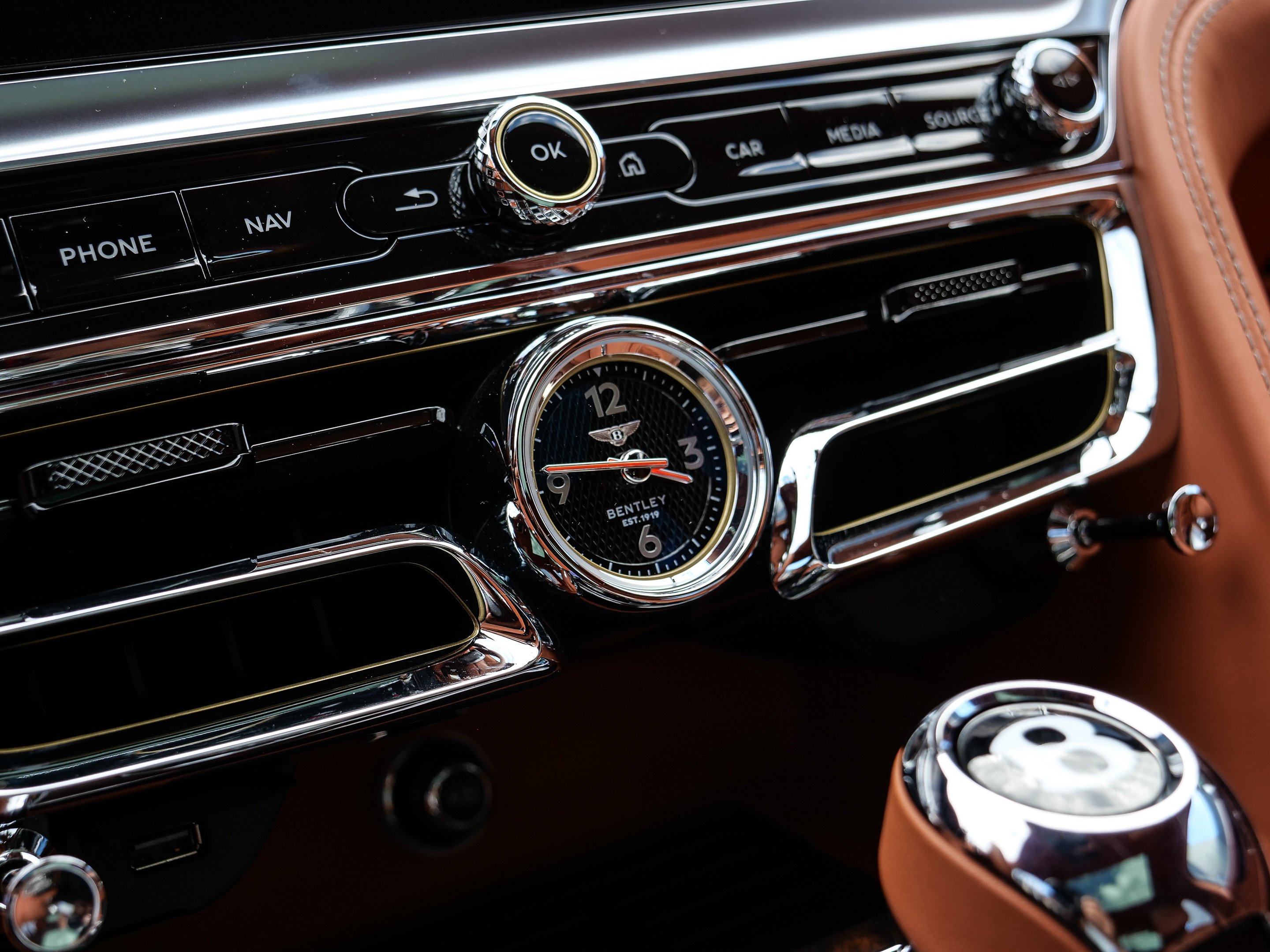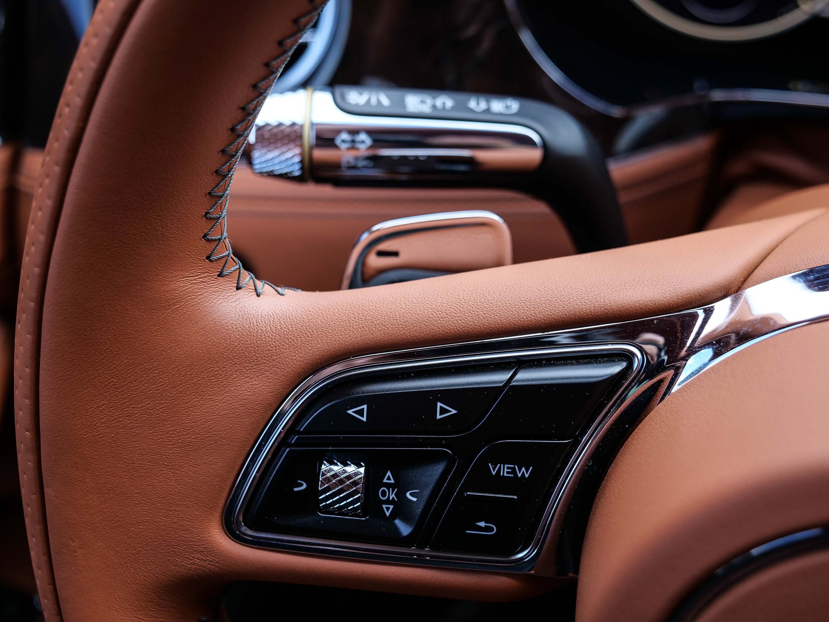 LED Welcome Lamps, Heated Windshield, Bang & Olufsen for Bentley, Bentley Rotating Display, Model Year 2024, Single Tone, Indented Hide Trimmed Steering Wheel, Self Levelling Wheel Badge - by Mulliner, Single Finish - Dark Stained Burr Walnut, Main Paint: Verdant, Main Hide: Newmarket Tan, Illuminated Flying B Radiator Mascot - Bright Polished Stainless Steel