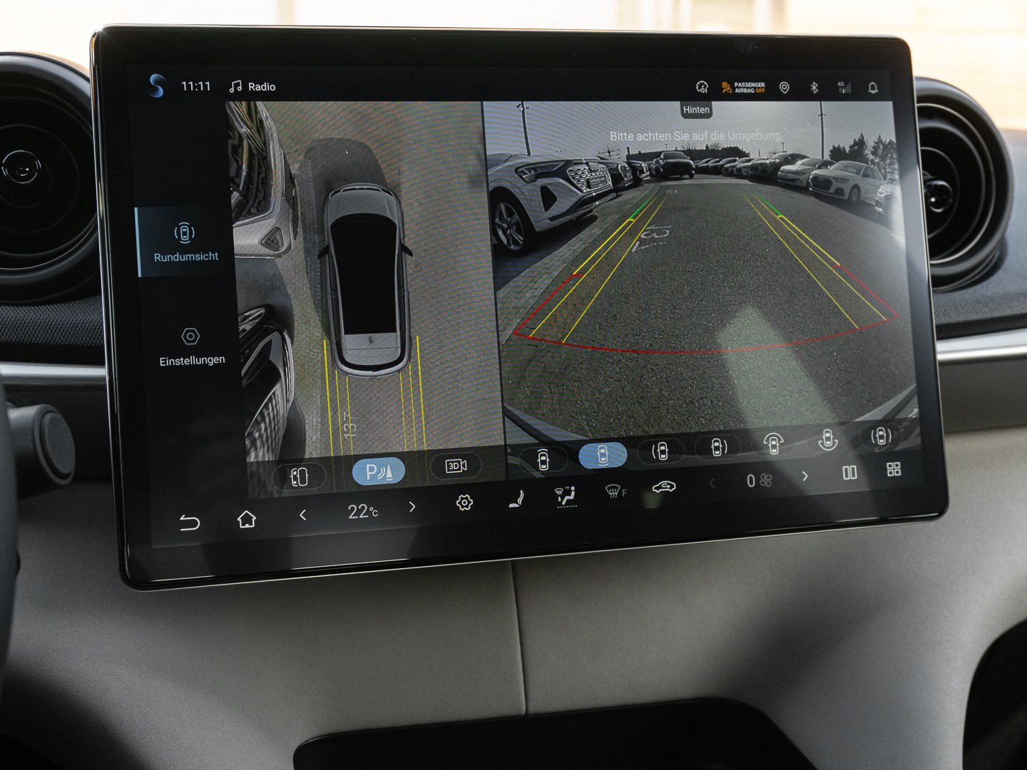 Müdigkeitserkennung, Autonomer Notbrems-Assistent (AEB), Verkehrszeichenerkennung (TSR), Außenspiegel mit Totwinkel-Assistent, Frontkollisionswarnung (FCW), Parkbremse elektrisch (EPB), Warnsystem Totwinkel bei Türöffnung hinten