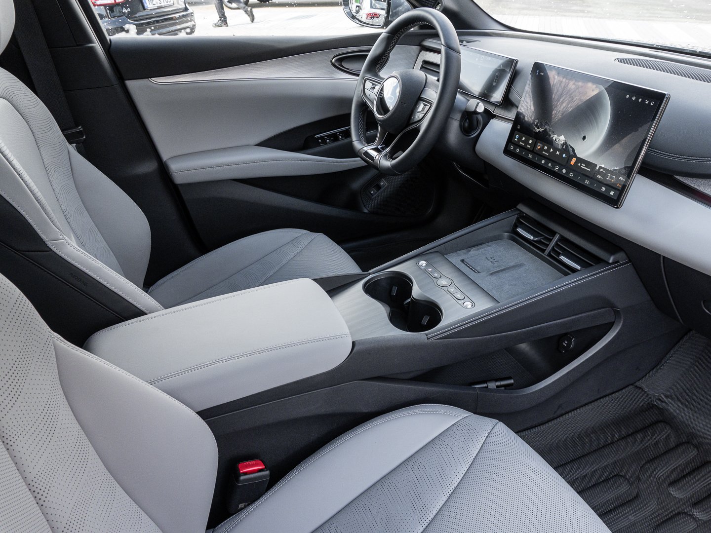 Klimaautomatik 2-Zonen, Innenspiegel mit Abblendautomatik, Ambiente-Beleuchtung, Induktionsladeschale für Smartphone, Mittelarmlehne vorn mit Getränkehalter, Lenkrad heizbar, Mittelarmlehne hinten mit Getränkehalter, Rücksitzlehne geteilt/klappbar (60:40), Sitzbelüftung vorn, Verglasung hinten abgedunkelt (Privacy Glass), Sitze vorn elektr. verstellbar (links mit Memory)