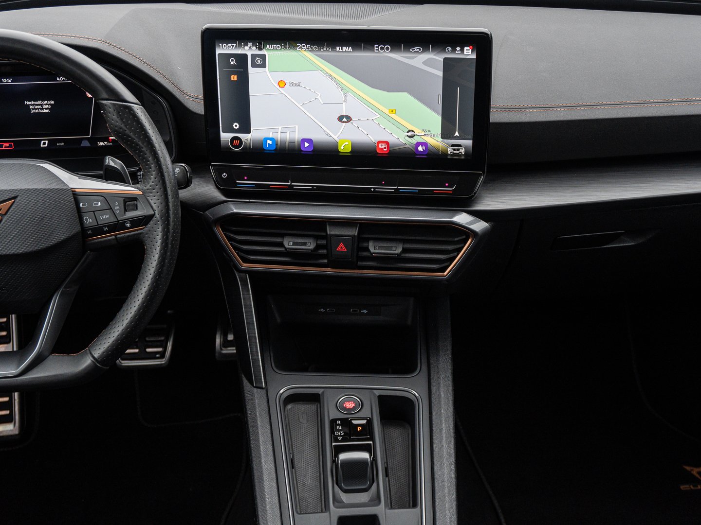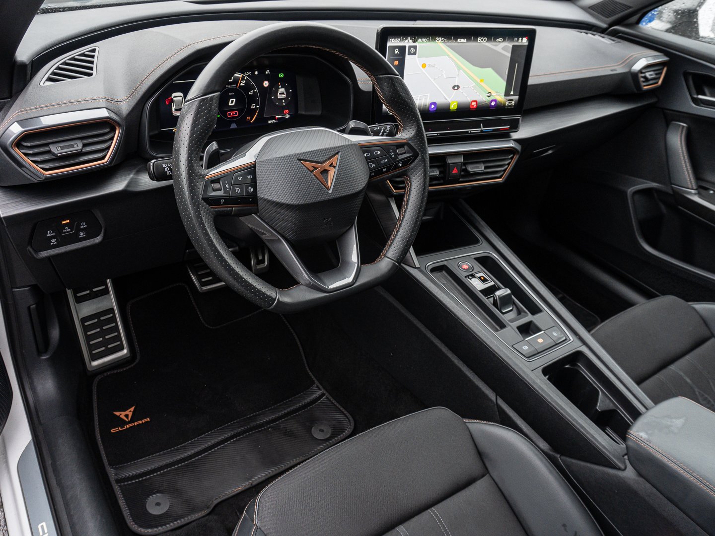 Einbau Differenzierung für Getriebe DQ400, Fahrprofilauswahl (CUPRA Drive Profile), Ladekabel Mode 2 Typ2 / E+F (10A), Mit erweitertem Sicherheitssystem (PreCrash Basic und Front), Navigationsgerät-High Optionsinfotainment (MIB3) (Ausführung2), Radstand 2680 mm, Sitzeinstellung links elektrisch mit Memory rechts mechan. höheneinstellbar Elektrisch einstellbare Motorsport- Schalensitze in Stoff Schwarz mit Memory-Funktion (inklusive Winterpaket)