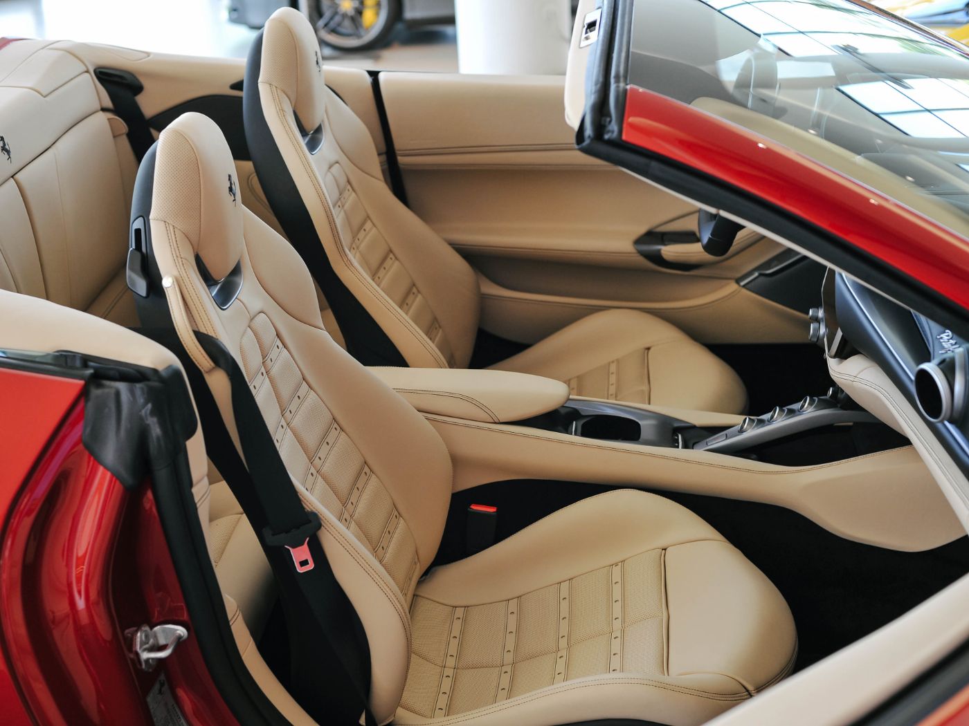Vollleder, - HAW1 Wärmeschutzverglasung für die Frontscheibe, - DAYT Sitzdesign Daytona ( Sitzmittelbahnen mit Leder-Lochstreifen), - RSFE Voll-Elektrische Sitze, - CTU4 Farbe des Mitteltunnels in Lederfarbe Sabbia, - LERZ Oberer Bereich der hinteren Seitenverkleidungen in Lederfarbe, - LTDP Mittlere Türverkleidungen (Türgriff und Lautsprecher) in Lederfarbe Sabbia, - LEDP Oberer Teil der Türverkleidung in Lederfarbe Sabbia, - RPMY Drehzahlmesser in Giallo (gelb)
