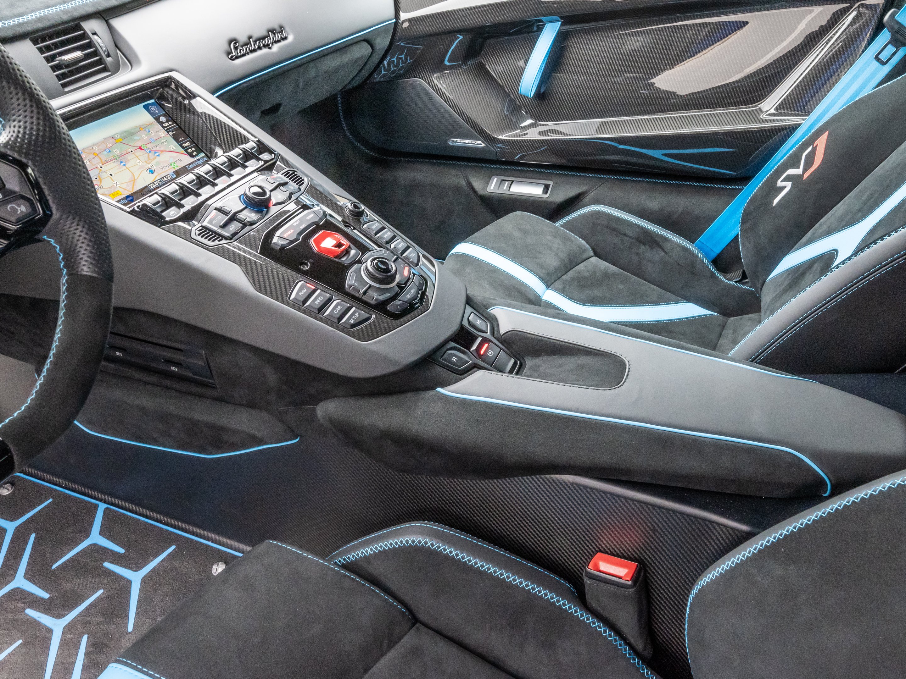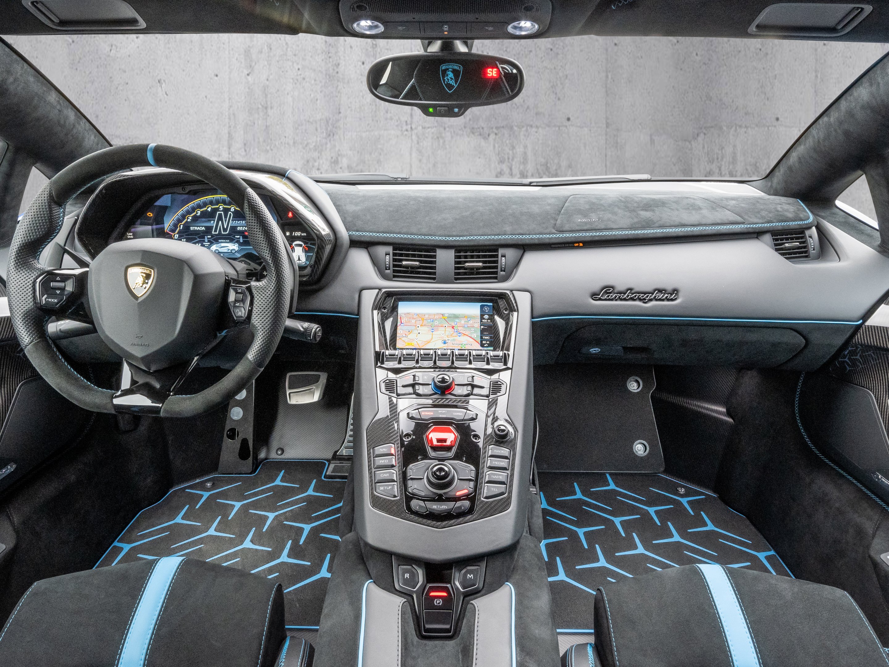 Model Year 2021, Main Trim: Nero Ade, Main Paint - Blu Nethuns, Contrast Stitching: Blu CepheusMultifunction steering wheel in Alcantara with perforated leather insert, SVJ interior - Ad Personam Color Selection, Seat Belts in Blu Cepheus, Non-smokers version, Rocker cover in shiny black, Full PPF
