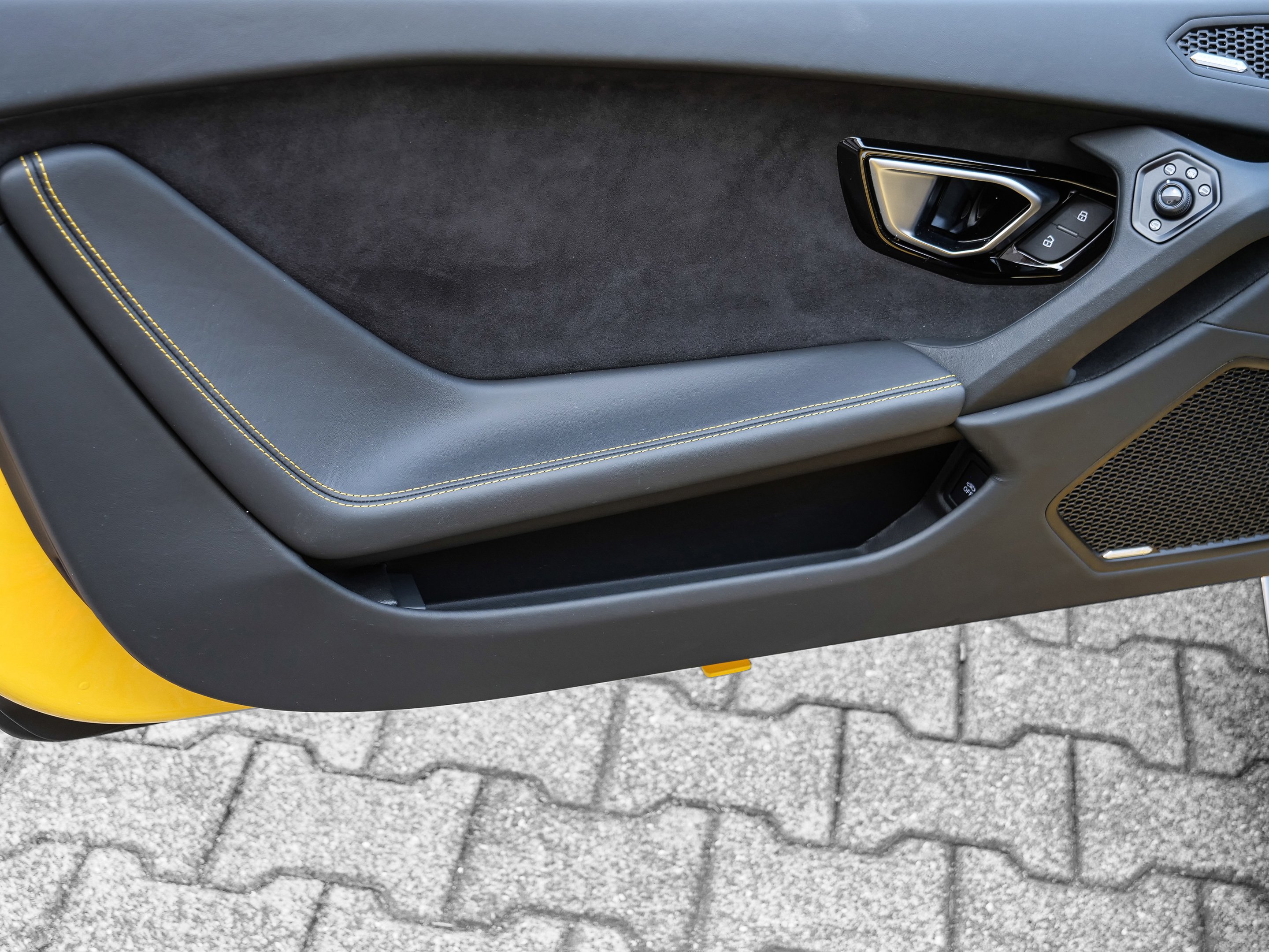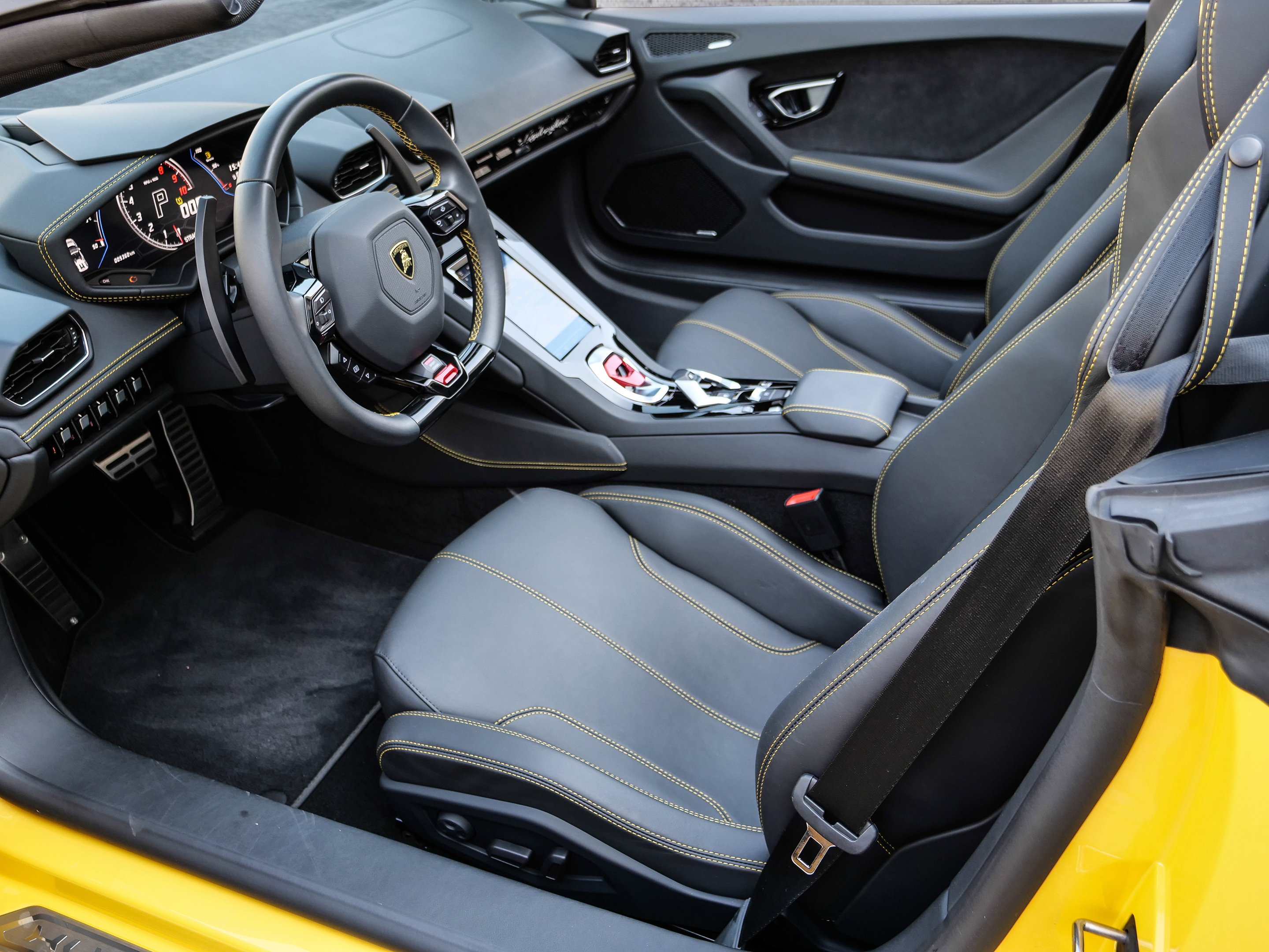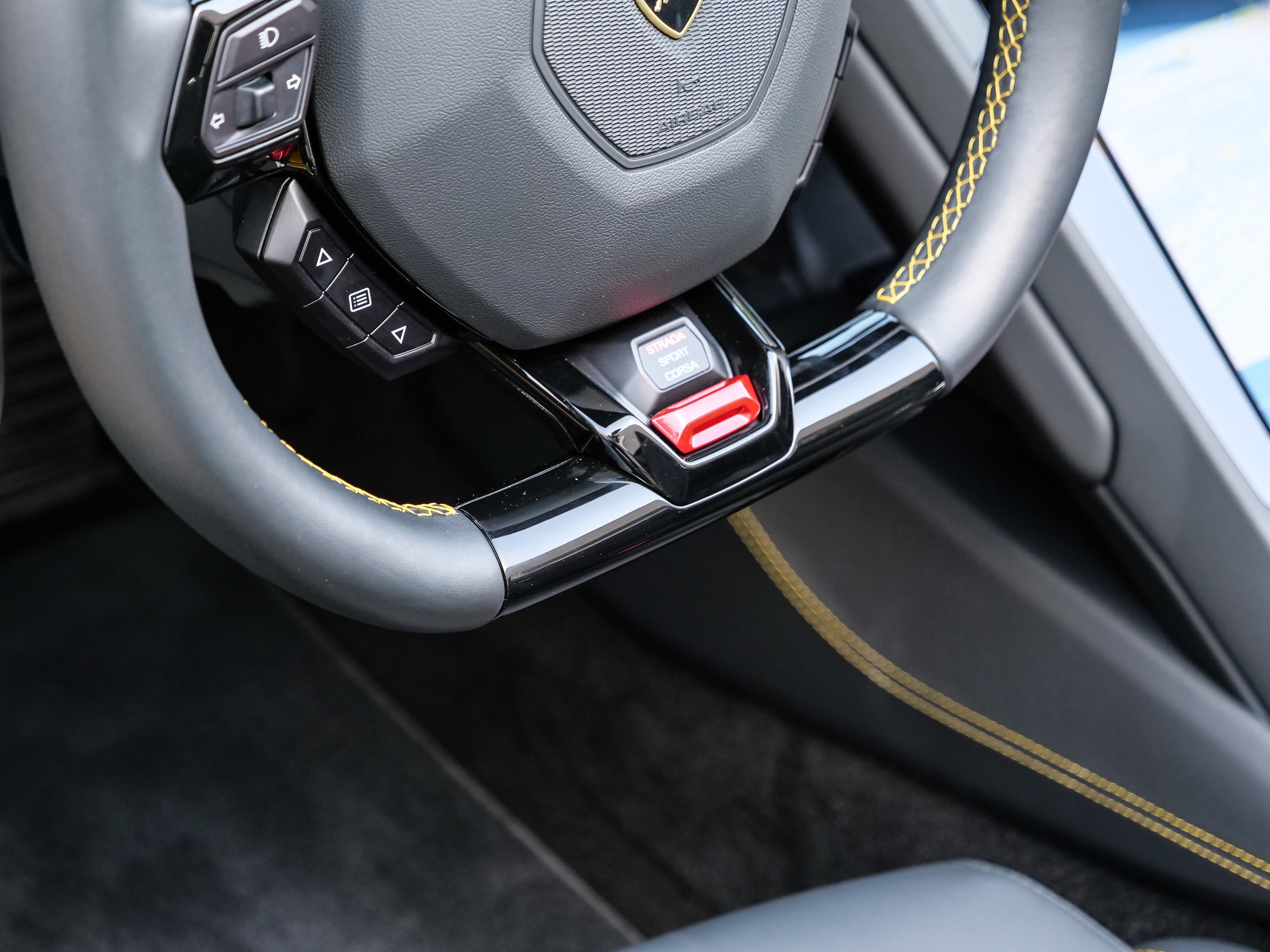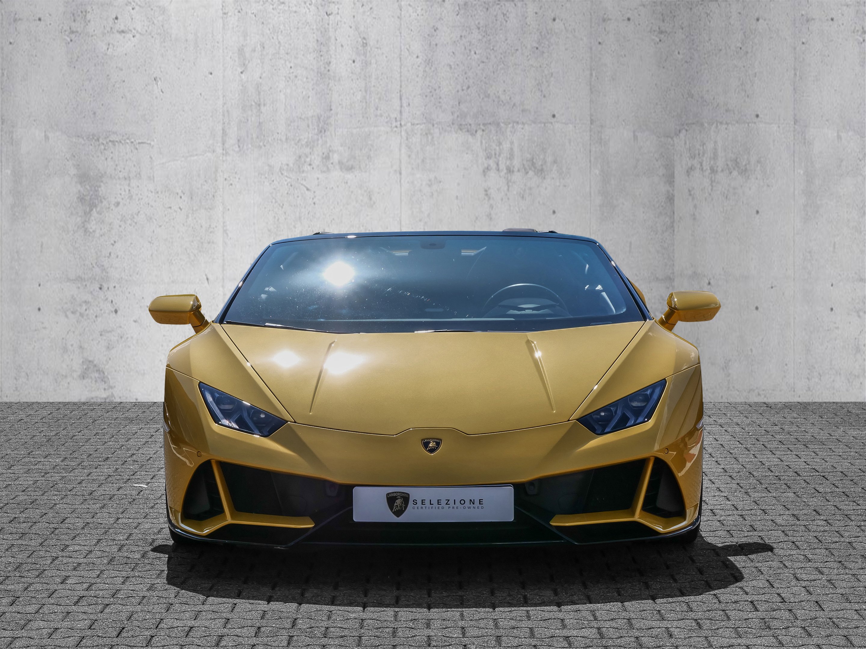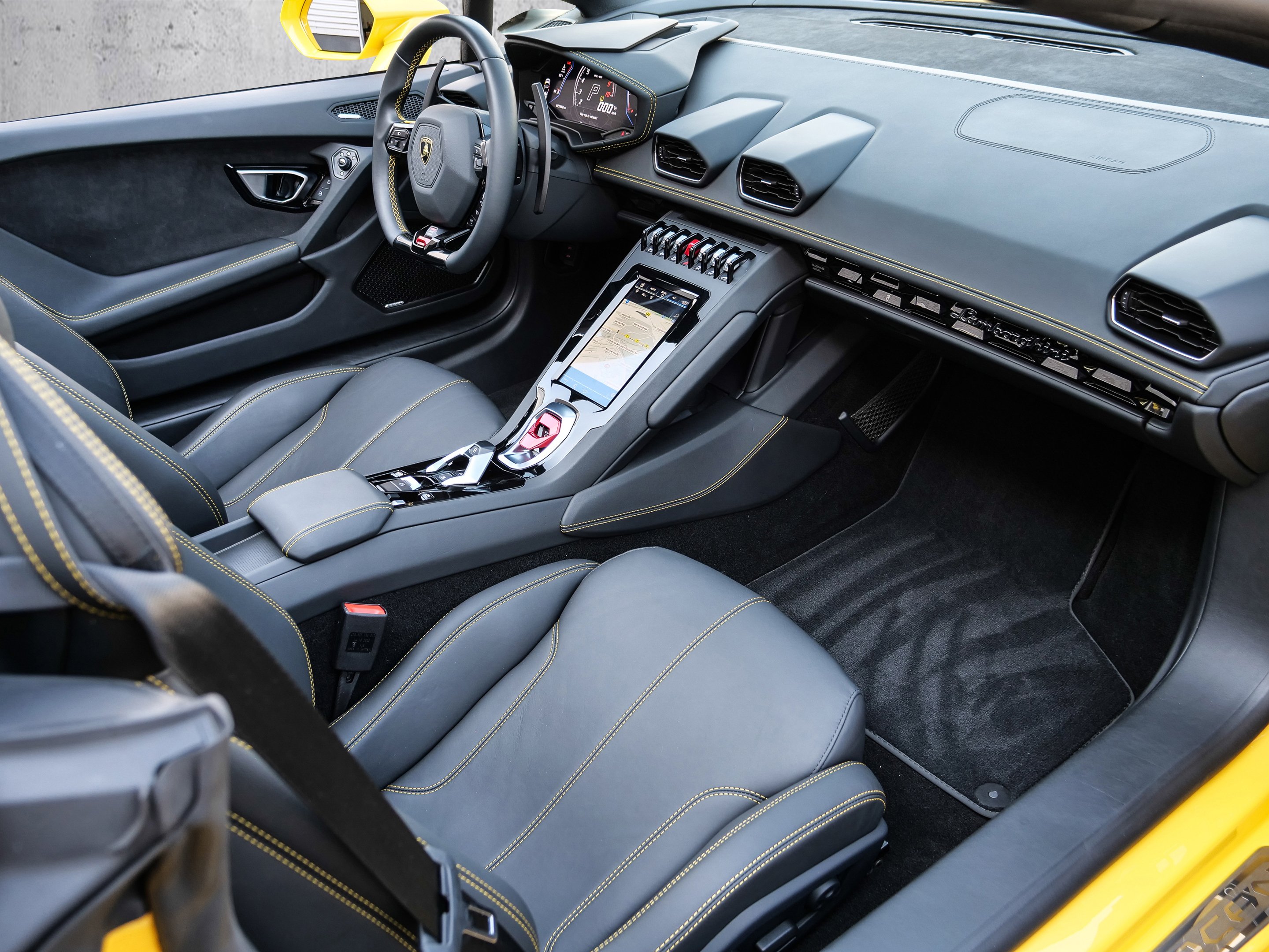 Model Year 2021, Main Paint - Giallo Inti, Stitching Optional, Multifunctional Steering Wheel in Smooth Leather, Lamborghini Sensonum Sound System, Rims Aesir Diamond 20 Zoll
