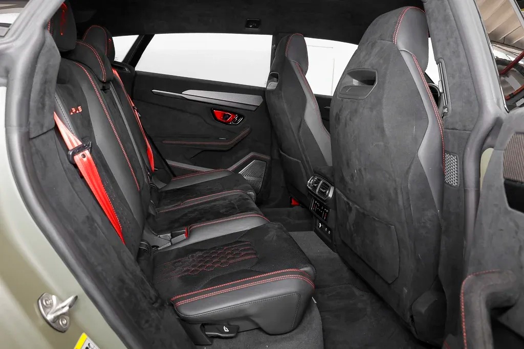 Optional Stitching, Rear Lamborghini Logo in High Gloss Black, Interior Door Handles Rosso Efesto, Premium Air Quality System, Tempered side and rear glasses, Wiper blades with integrated nozzles, Model Year 2023, Unicolor Alcantara with Performante Trim, Seats in Full Alcantara with Performante Trim, Full Exterior Carbon Fiber Package Matt, Roof in Matt Carbon, Big Interior Carbon Package Matt, Main Paint - Verde Turbine, Steering Wheel in with Dark Chrome Bezel and Red Marker, Dark Package on Alcantara, Kick Plates in Matt Carbon