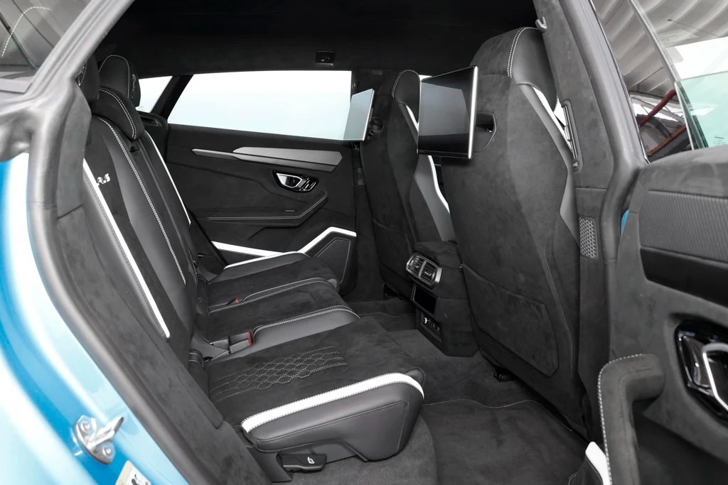 Premium Air Quality System, Lamborghini Connect Vehicle Tracking System, Model Year 2023, Lamborghini Sensonum Premium Sound System, Main Paint: Blu Aegir, Main Trim: Nero Cosmus, Seats in Full Alcantara mit Performante Trim, Sport Steering Wheel Full Leather, Stitching auf Steering Wheel Bianco Leda (White), Seat Belts Nero Ade (Black), Floor Mats mit Leather Piping und Double Stitching, Carpets und Floor Mats Nero Ade (Black), Stitching auf Floor Mats Bianco Leda (White), Tempered Side und Rear Glasses, Bonnet Air Vents in Matt Carbon Fiber, Roof in Matt Carbon, Front und Rear Seat Heating, Kick-Plates in Matt Carbon, Rims Sirenis 22 Zoll Lightweight Aluminium Bronze with Titanium Wheel Bolts