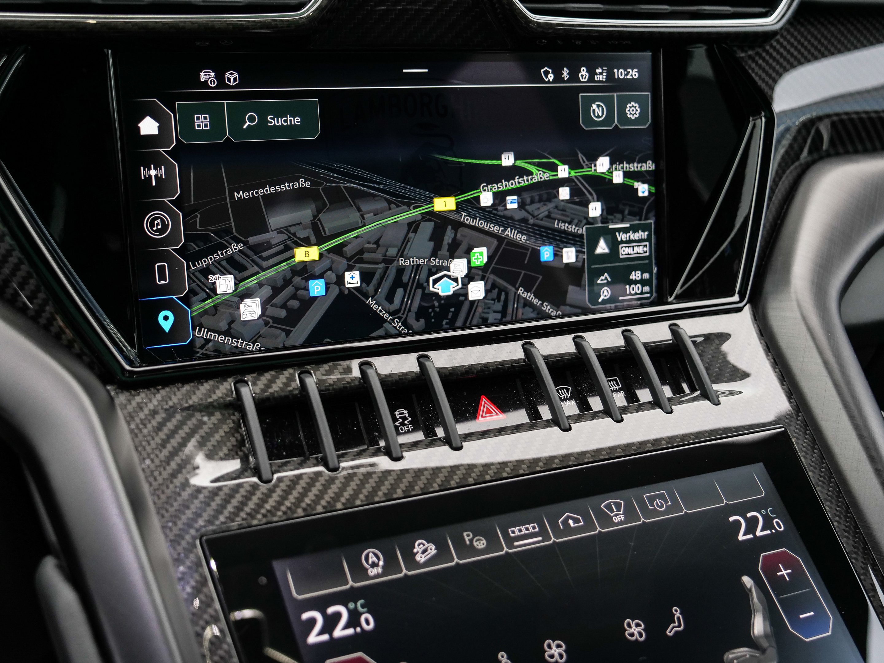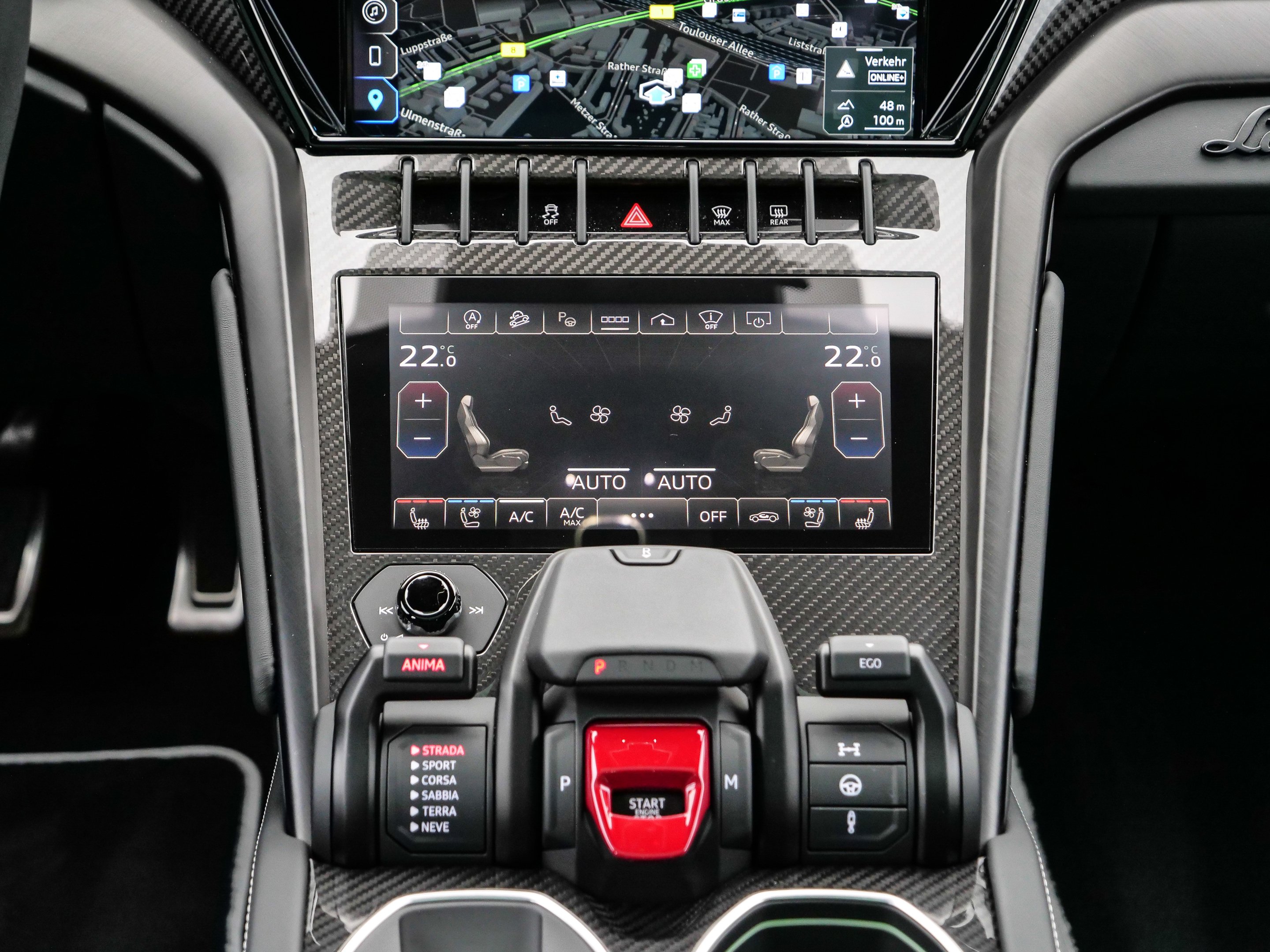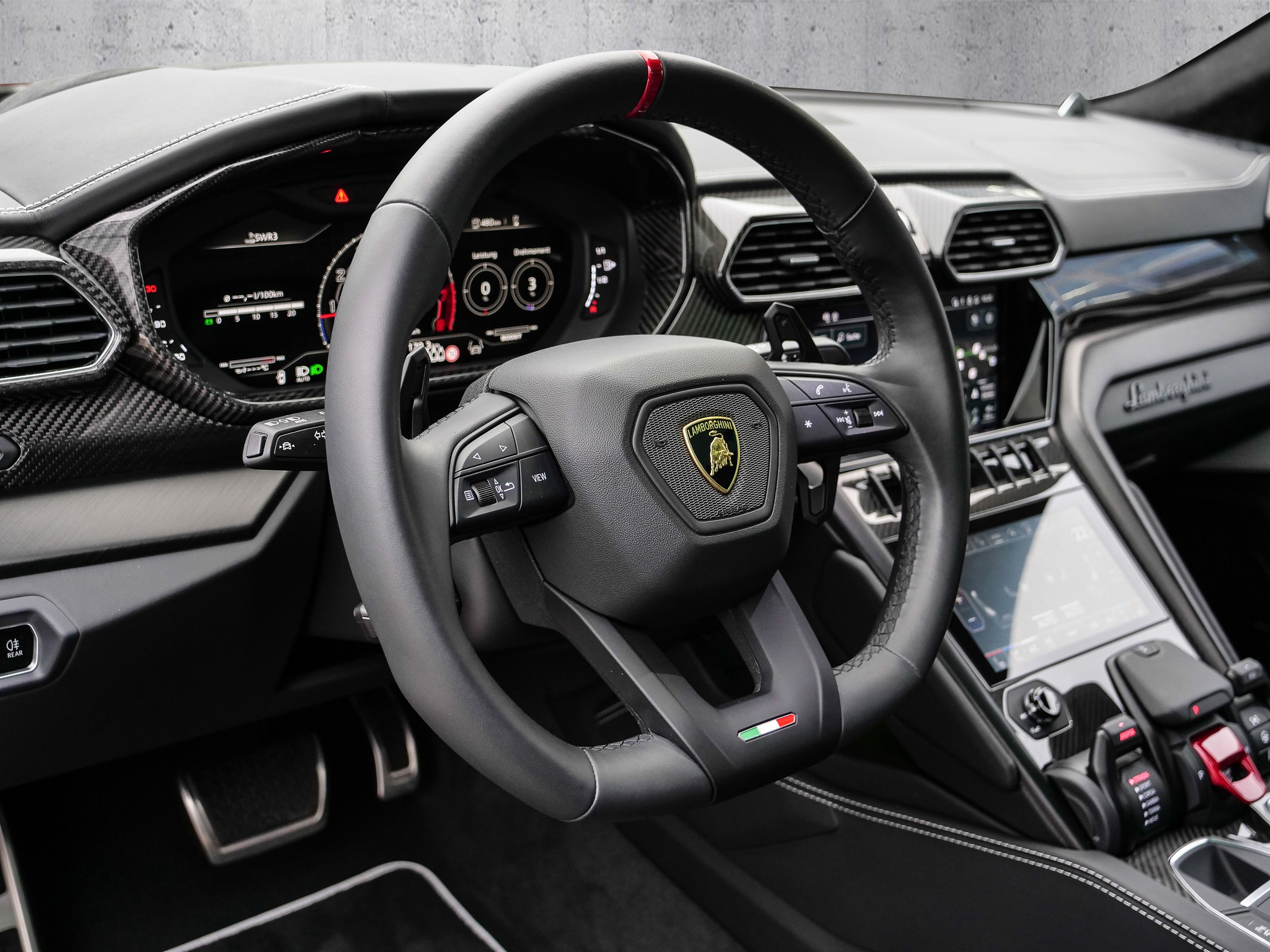 Model Year 2024, Optional Stitching, Rear Lamborghini Logo in High Gloss Black, Premium Air Quality System, Big Interior Carbon Package Shiny, Interior Dark Package, Hands Free Tailgate, Park Assistance Package with Remote Park Assist, Kick Plates in Carbon Fiber, Body Color Style Package with Front Splitter, Bicolor Sportivo Leather with Performante Trim, AdPersonam Interior Lower and Upper Dashboard, Electrical Trailer Towing