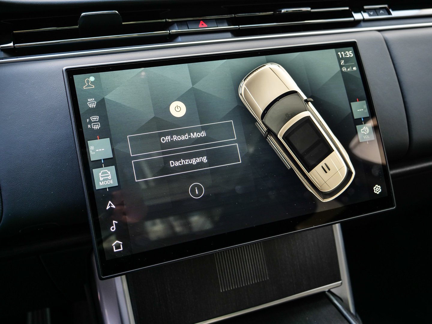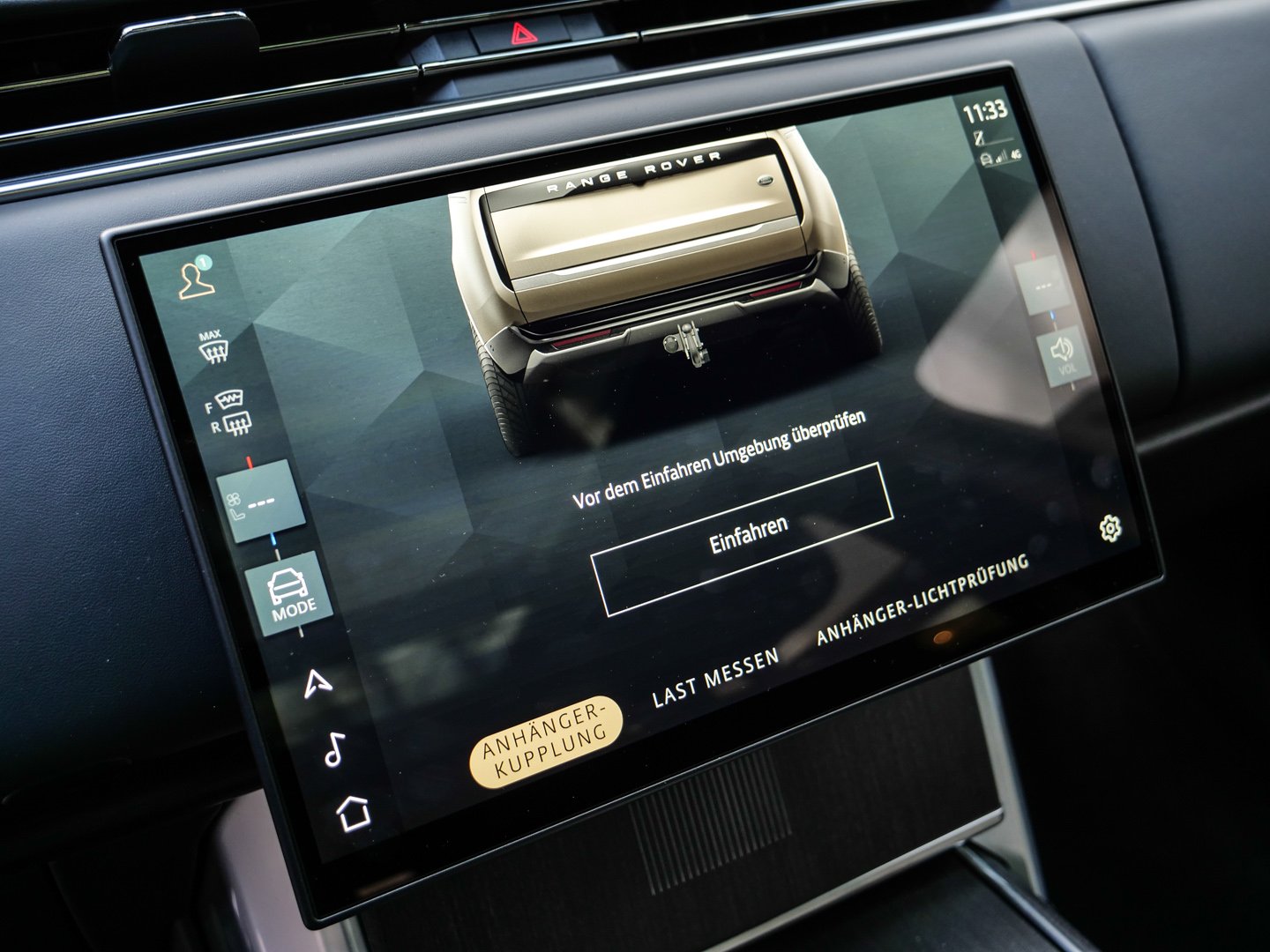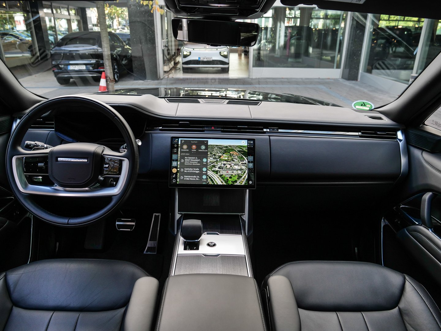 Vollleder, Verglasung hinten abgedunkelt (Privacy Glass), All-Terrain Progress Control (ATPC), Lenkrad heizbar, Frontscheibe wärmeabweisend, Klimaautomatik 4-Zonen, Dynamic-Response-System (Aktive Fahrwerks-Stabilisierung), Lenkrad mit Schaltwippen/-tasten, Ambiente-Beleuchtung, Off-Road-Fahrprogramm, Interieur Ebony, Türverkleidung (Mittelteil) in Windsor-Leder, Kühlbox in Mittelkonsole integriert - vorn